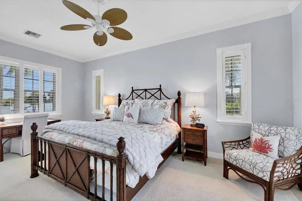 Discover the unparalleled elegance of Flamingo Ranch, a sprawling estate offering over 5,000 sq. ft. of thoughtfully designed living space. This exceptional residence features 5 bedrooms and 4.5 bathrooms, seamlessly blending luxury, comfort, and coastal charm. Set on nearly 3 acres with almost 300 feet of pristine Lemon Bay shoreline, the property offers deep-water dockage including a covered 16,000lb. boat lift, along with a second dock capable of accommodating a vessel up to 55 feet. Additional highlights include a convenient kayak launch directly from Lemon Bay and a dedicated boat launch from one of the docks, providing effortless access to the Intracoastal Waterway and the Gulf, a true haven for boating and waterfront enthusiasts. The interior exudes comfort and functionality, with the master suite conveniently located on the ground floor for privacy and ease, while four additional bedrooms upstairs provide ample space for family or guests. The open-concept layout effortlessly connects living, dining, and entertainment areas, making it ideal for gatherings and socializing. A classic wraparound porch invites you to relax and take in sweeping views of the surrounding waterfront and natural landscape, perfect for morning coffee, sunset evenings, or entertaining guests. Step outside to enjoy a heated saltwater pool, a private pond, and a landscaped paradise enhanced by the home’s efficient irrigation system. A detached 3-car garage with workshop and a 44 x 12 ft storage area offers abundant space for vehicles, tools, and recreational equipment. Built for both beauty and resilience, Flamingo Ranch features solid block construction, foam insulation, hurricane-rated windows and shutters, a full backup generator, and a self-sufficient irrigation system with its own water source, keeping landscaping costs remarkably low while maintaining lush grounds year-round. The property also offers flexible opportunities, with the option to subdivide off the front one acre, ideal for additional building, agricultural use, horses, or recreational purposes, and is just minutes from Coral Creek Airport, perfect for private aviation enthusiasts. Flamingo Ranch combines architectural excellence, coastal elegance, and unrivaled waterfront access, offering a lifestyle defined by luxury, serenity, and the very best of Palm Island living.