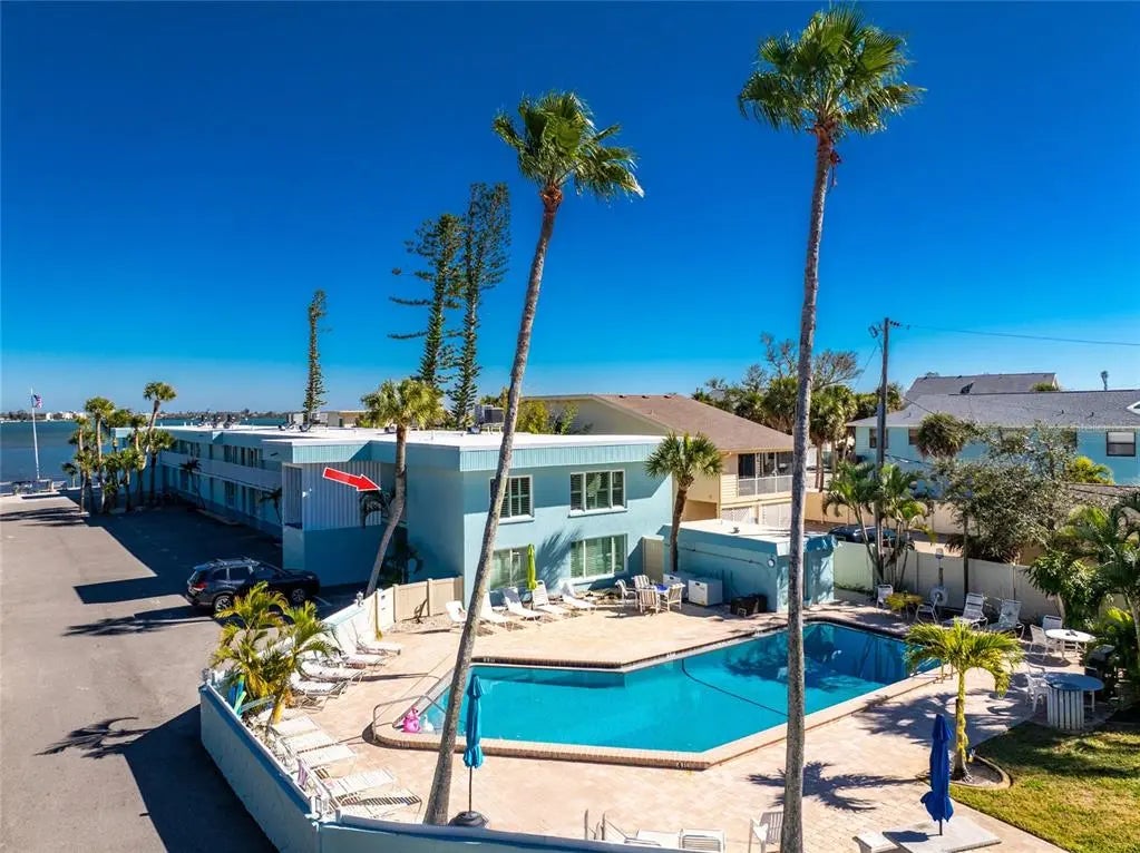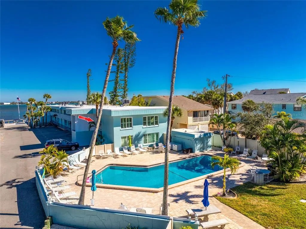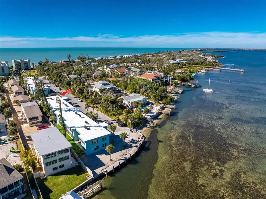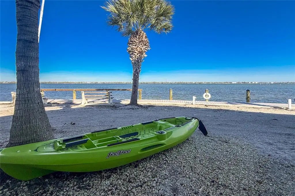 Imagine starting your mornings on Manasota Key, where salty breezes drift through your windows, the pace is unhurried, and each day revolves around sunshine, water, and relaxation. This coastal inspired end unit condo is located in the popular Tiki Bayfront community and offers an easygoing lifestyle from the moment you arrive. Offered turnkey furnished, this two bedroom, one bathroom residence features impact windows for peace of mind and a bright, open layout designed for comfortable coastal living. Ceramic tile and wood look laminate flooring flow throughout the main living areas and bathroom, while natural light fills the space through oversized windows in both the living room and kitchen. Plantation shutters add coastal charm and allow you to control the light while enjoying beautiful views of the community pool. The kitchen offers generous counter space and a cozy breakfast nook that opens to the living area, making it ideal for casual meals. Both bedrooms feature large reach in closets and provide inviting spaces to unwind at the end of the day. Whether you are looking for a full time residence, a weekend retreat, or an income producing property, this condo offers flexibility with no rental restrictions in place. Community amenities include a heated pool with lounge chairs, shaded seating areas, a BBQ grill area for outdoor dining, community laundry facilities, and an all new community dock along the seawall on Lemon Bay, perfect for tying up your boat and enjoying the waterfront setting. At this condo, you can easily enjoy the best of island living! Englewood Beach, waterfront dining, and fun tiki bars are just 1.5 miles away. Historic Dearborn Street is five miles from home, and Wellen Park, home of Atlanta Braves spring training plus plenty of shopping and dining options, is an easy drive. This is a place where life slows down, sunsets become part of your routine, and coastal living feels effortless. Experience it for yourself at 5055 N. Beach Road on Manasota Key.