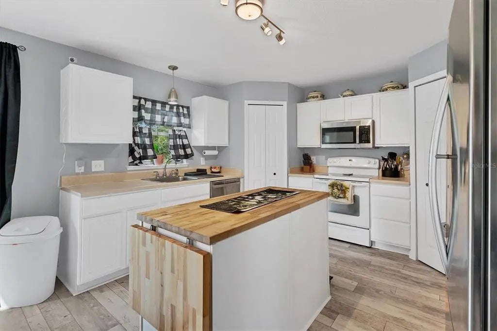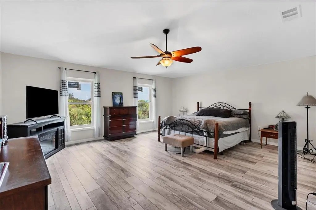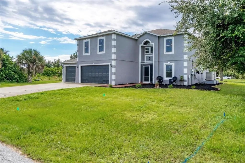 IMPACT WINDOWS | FULLY UPDATED | DOUBLE LOT OPPORTUNITY Welcome to this impressively updated 4-bedroom, 2.5-bath home offering nearly 3,000 sq ft of beautifully designed living space and a 3-car garage. From the moment you arrive, you’ll notice the freshly painted exterior, new impact-rated windows, doors, and sliders, along with a new 2022 roof—providing both style and peace of mind. Situated on an expansive street-to-street lot, this property offers endless possibilities with room to store your RV or boat, add a pool, create a fire pit, or design your dream outdoor oasis. A detached storage shed and a dedicated 50-amp RV hookup add even more functionality. Inside, enjoy a bright, modern interior featuring laminate flooring throughout and dual-zone A/C for comfort. The spacious kitchen is the heart of the home, showcasing a butcher block island with extension, dual corner pantries, and seamless flow into the family room and eat-in area—perfect for entertaining. Additional main-level highlights include a formal dining room, flexible bonus space ideal for a home office or playroom, and a convenient powder room. Upstairs, all four bedrooms offer generous closet space, including the luxurious primary suite with dual walk-in closets and a spa-inspired bath featuring marble tile, dual vanities, and a frameless glass shower. A large loft provides extra versatility for a media room, gym, or hangout space. Located on a quiet street, the neighboring lot is also available for purchase ($27,000 – MLS C7505721), creating a rare triple-lot opportunity with room for all your toys and future expansion. Schedule your private tour today!