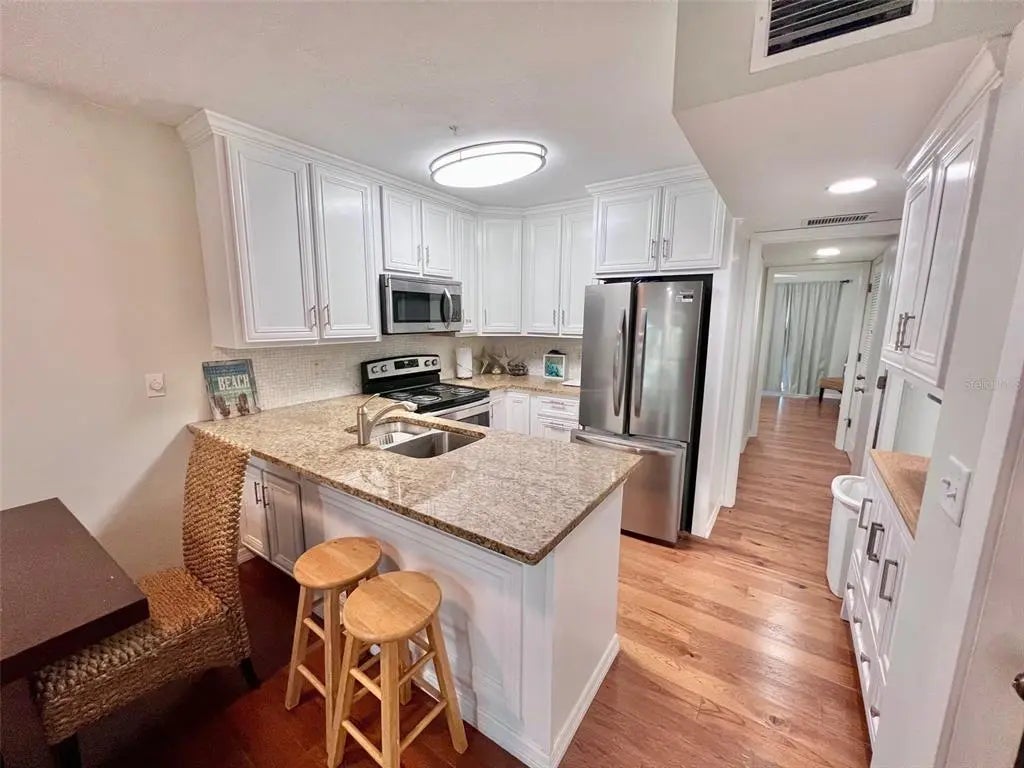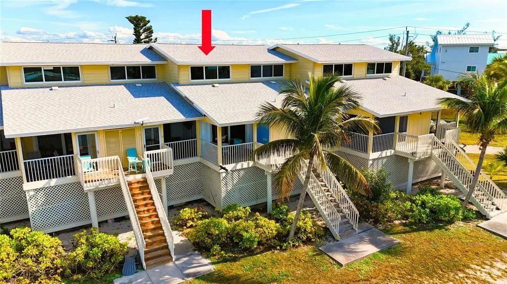 This Hideaway Bay Beach Club condo offers stunning gulf views on Little Gasparilla Island, a unique bridgeless barrier island providing the perfect retreat from the hustle and bustle of mainland life. Located just off the Cape Haze peninsula, Little Gasparilla Island is accessible by a 10-minute ride across the bay, offering a true sense of seclusion. The HBBC complex is designed for relaxation where residents can truly unwind. Exclusive amenities include a private ferry service that ensures convenient transportation to and from the island, several dock slips for boat owners, a designated mainland parking area for vehicles, deeded beach access, and a heated swimming pool for year-round enjoyment. This condo is one of the few with a 3 bedroom layout, a rare and sought-after feature. The primary bedroom and bathroom are located on the first level. The upstairs bedroom has been thoughtfully converted into two separate rooms, providing extra flexibility and space. Each floor is equipped with a full bathroom, both updated with modern vanities for enhanced comfort and style. The kitchen has been renovated with a modern design, including solid wood cabinets, granite countertops, and stainless-steel appliances. The first level boasts wood flooring for warmth and durability, while the second level features luxury vinyl plank flooring for a contemporary look and easy maintenance. The lanai, situated just off the living room, showcases breathtaking views of the pond and gulf, offering a perfect spot to unwind and take in the evening sunsets. Typically, the laundry closet is located in the lanai, but in this unit, it has been relocated underneath, creating an opportunity for expanded outdoor living space ideal for entertaining or relaxing. Underneath the unit, the owner’s storage space includes built-in storage closets for tools, fishing gear, and a washer and dryer. There is ample room to store beach gear and a golf cart, catering to the needs of island living. A short walk leads to 3.5 miles of unspoiled beach, perfect for strolling, shell collecting, and searching for shark teeth. For fishing enthusiasts, the surrounding waters offer plentiful opportunities to catch snook, snapper, redfish, trout, and more. Little Gasparilla Island is known for its peaceful and welcoming atmosphere. With no shops, restaurants, or car traffic, residents enjoy sandy trails, lush tropical foliage, and the serenity that comes from living in a true island paradise. Come and see this Hideaway Bay Beach Club condo and experience island living at its finest, and soon you may find yourself wanting to make this tranquil retreat your home.