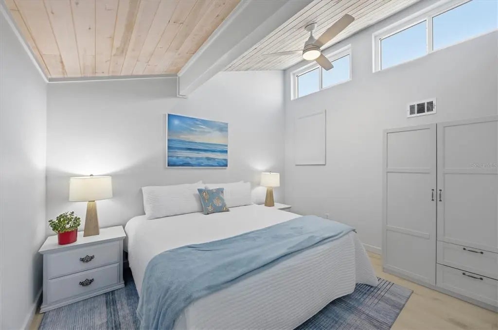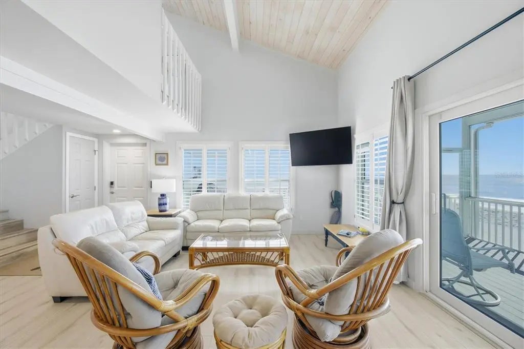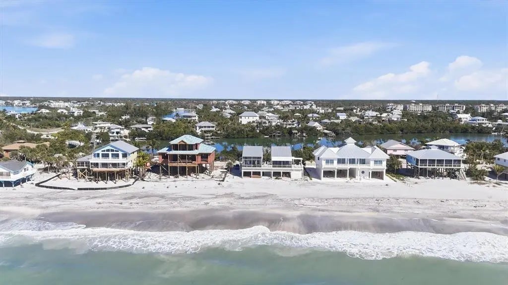 This very updated and move in ready beachfront 3-bedroom 3 bath home located on Palm Island offers your dock with a boat slip just approximately 50 feet from your backdoor on Bocilla Lagoon. The exterior of the home is hardy board siding, composite decking and metal roof. All impact windows and doors, turtle compliant. There is a 10 x 23 beachfront screened lanai as well as a 1,000# cargo lift along with a 13 x 23 open sun deck. In addition, there is an eastern facing screened lanai that is 5 x 23 that is accessible by two of the bedrooms with partial views of Bocilla Lagoon. Under the home as well as the driveway and staircase areas are finished with over 2,000 square feet of pavers. The ground level of the home consists of a shady space for relaxing and dining, hammocks, outdoor shower, bar refrigerator and future outdoor kitchen. The landscaping has been recently updated and the driveway area has been shelled with 89 stone, making a beautiful approach to your beach home. When entering the home, you'll notice the magnificent views of the Gulf from the large 23 x 23-foot living area consisting of the living room, dining area and updated kitchen which includes wooden cabinets and quartz countertops. The home has vaulted white washed tongue and groove ceilings and luxury vinyl flooring throughout. This level has a full bath with beautiful subway tile walls and decor. The second floor consists of two bedrooms and a full bath. The third floor is exclusively the primary bedroom with large beautifully decorated bath. If you're looking for a beach getaway, you must come see this home.