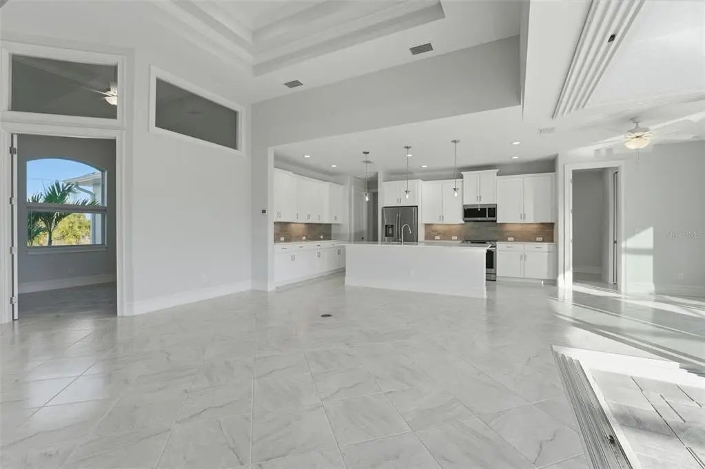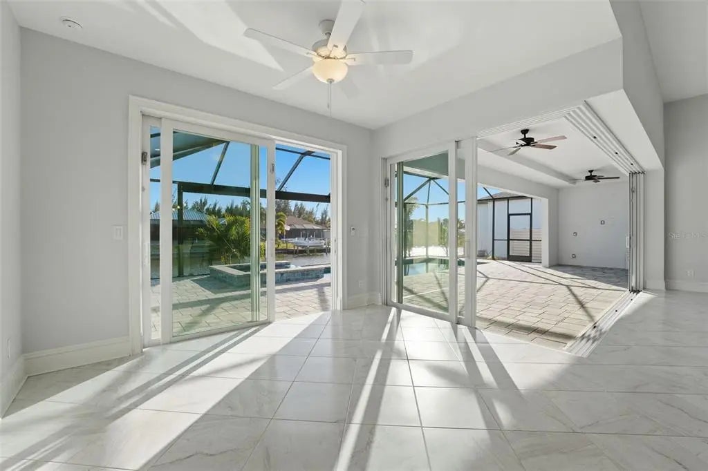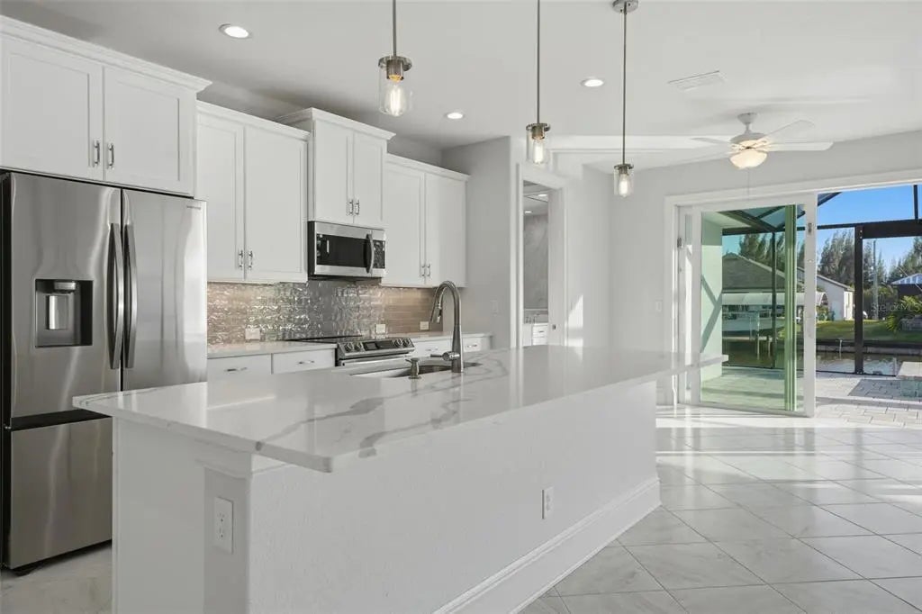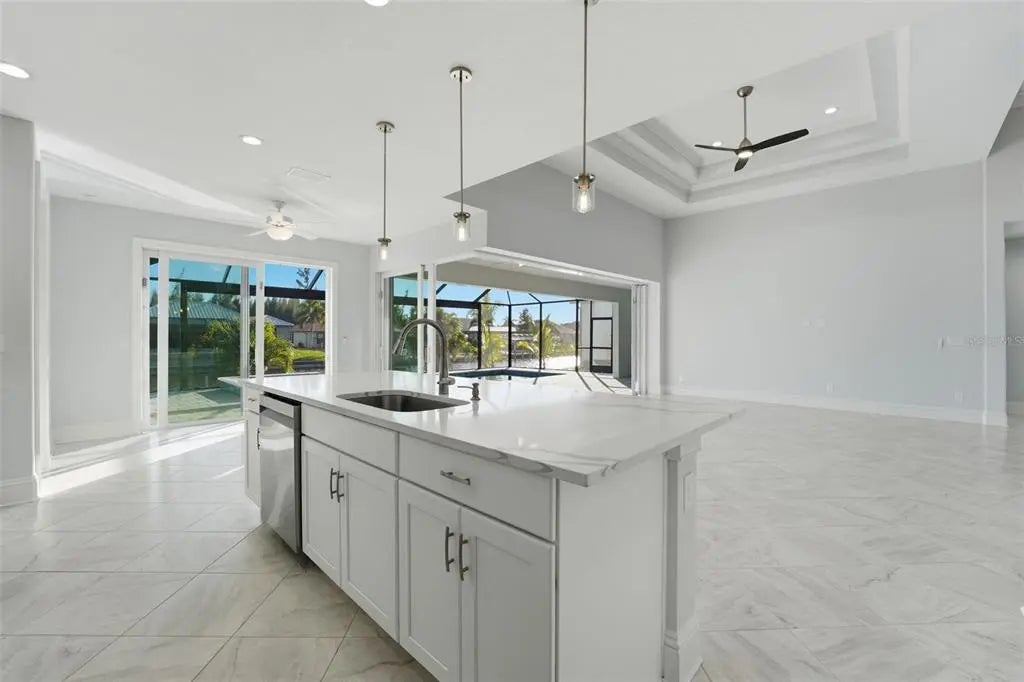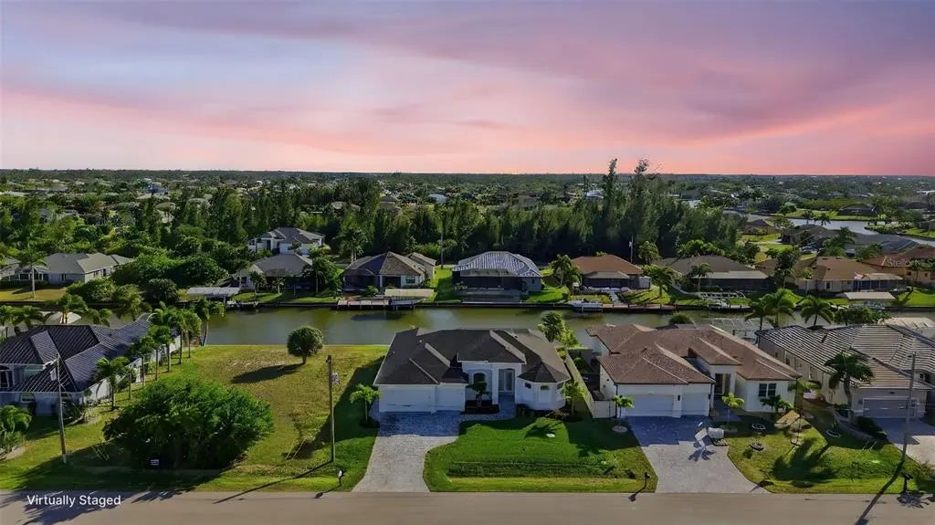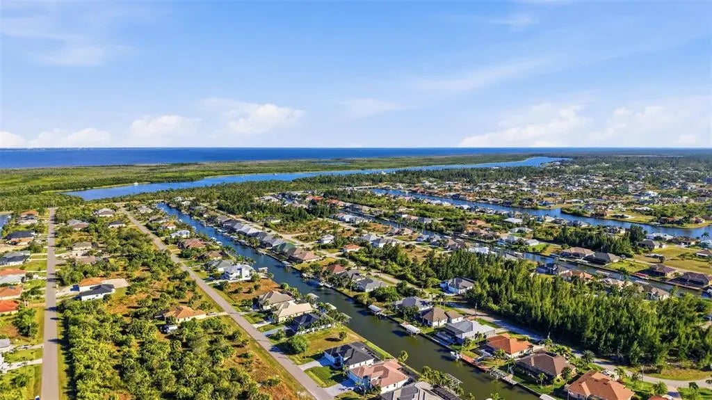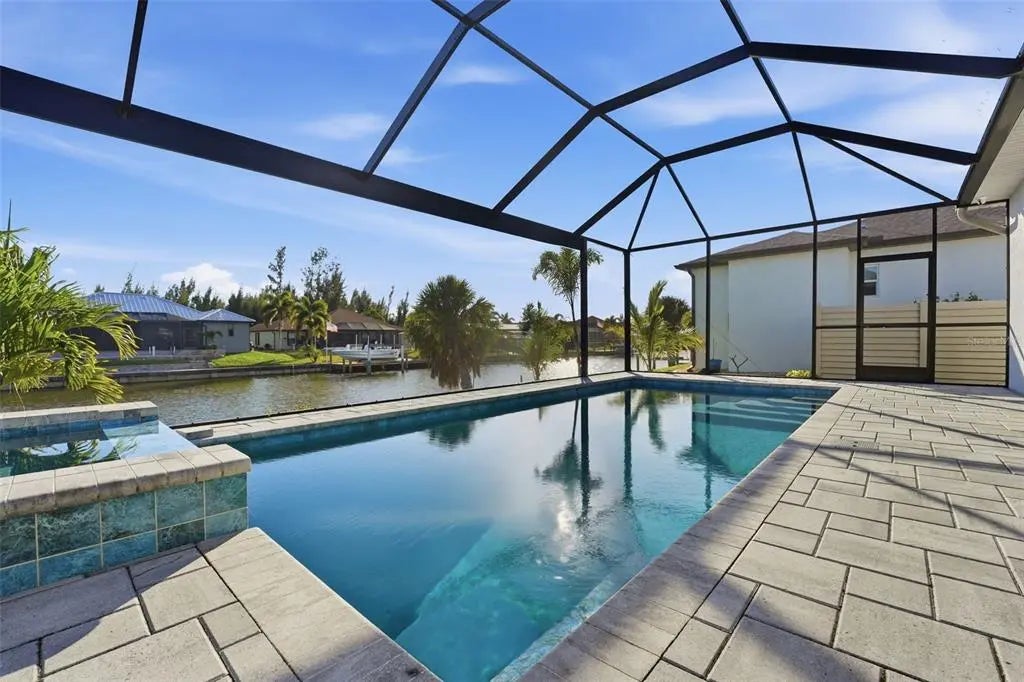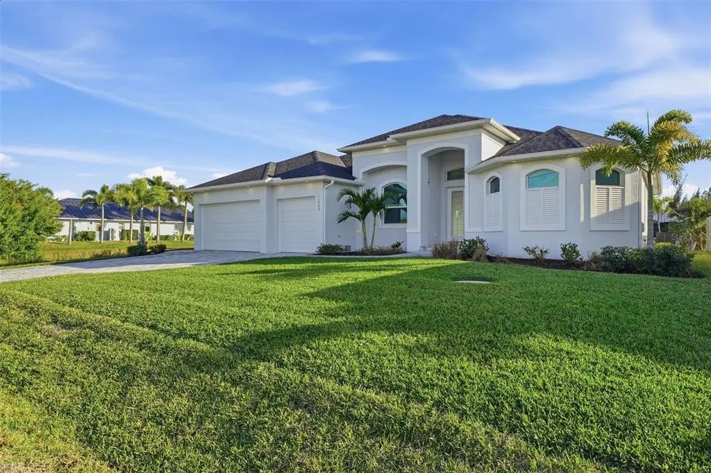 Under contract-accepting backup offers. Experience elevated coastal living in this 2024 custom-built waterfront residence by one of the area’s premier builders, ideally located in the sought-after South Gulf Cove boating community. Positioned on a Gulf-access, sea-walled lot with desirable Southern exposure, this luxury home offers sun-filled living, effortless boating, refined design, and an exceptional location just 13 miles from the pristine beaches of Manasota Key and Boca Grande. Thoughtfully designed for both everyday comfort and entertaining, the home features an open-concept living area enhanced by zero-degree impact sliders that create a seamless indoor-outdoor connection. Impact-rated windows and doors provide peace of mind, superior storm protection, and energy efficiency, while a multi-zone A/C system ensures personalized comfort throughout. The layout includes 3 bedrooms, 3 bathrooms, a private den, and a 3-car garage, offering flexibility and space for guests or a home office. Completing this living space, the luxurious owner’s suite serves as a serene retreat, featuring tranquil water views, expansive walk-in closets, and a spa-inspired en-suite bath—perfect for unwinding in comfort and style. The chef-inspired kitchen showcases Calacatta Laza quartz countertops, custom slow-close cabinetry, under-cabinet lighting, and stainless steel appliances—blending timeless elegance with everyday functionality. The adjacent dining area is ideal for gatherings, with beautiful views and easy access to the outdoor living space. Designed for the ultimate Florida lifestyle, the outdoor living area features a saltwater pool and spa, enclosed by a picture-frame pool cage for unobstructed canal views and maximum sun exposure—ideal for entertaining or enjoying peaceful sunset evenings. Additional upgrades include a built-out laundry room, irrigation system, upgraded St. Augustine sod, and thoughtfully curated landscaping that enhances curb appeal. Located just minutes from world-class boating, championship golf courses, upscale shopping, dining, and marinas, this South Gulf Cove residence presents a rare opportunity to own a move-in-ready luxury waterfront home in one of Southwest Florida’s most desirable communities.