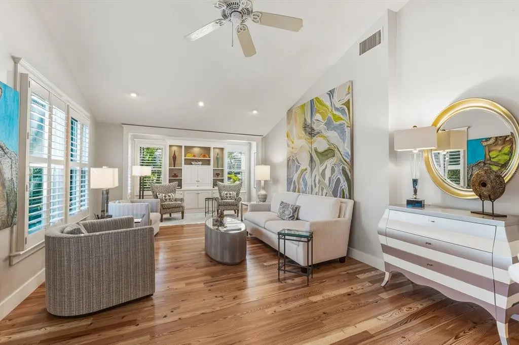 Nestled on one of the most iconic streets in Boca Grande’s historic village, this newly renovated and thoughtfully maintained two-bedroom, two-bath cottage offers an inviting coastal retreat where village life unfolds at an easy pace. The neighborhood is a defining feature of the property. Tree-lined streets encourage leisurely walks to the Gulf beaches, The Gasparilla Inn, or the Pink Pony for ice cream. Here, daily life feels connected and unhurried, with a strong sense of community that has long defined the island. Inside, approximately 1,561 square feet of thoughtfully designed living space blends original character with modern comfort, with careful attention to detail throughout. Vaulted ceilings enhance the open feel, while plantation shutters filter natural light across heart pine wood floors. The kitchen is well appointed with custom wood cabinetry with glass-front details, quartz countertops, a Sub-Zero refrigerator, and a Thermador dual-fuel gas range. A charming screened porch offers a comfortable setting for reading, relaxing, or casual entertaining. Outdoor spaces further enhance the property’s appeal. A brick pathway winds through landscaped grounds to a private courtyard surrounded by mature plantings. The rear yard includes an outdoor kitchen and brick patio, creating a natural setting for dining and entertaining. A detached office with custom built-in cabinetry provides a quiet and flexible workspace just steps from the main home. Off-street parking adds convenience in this highly walkable village location. This charming cottage presents a rare opportunity to enjoy the authentic Boca Grande lifestyle in the heart of the historic village. Private showings available by appointment.