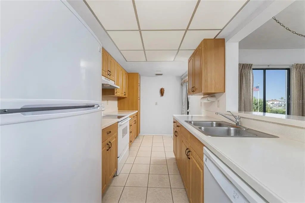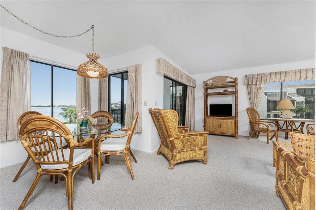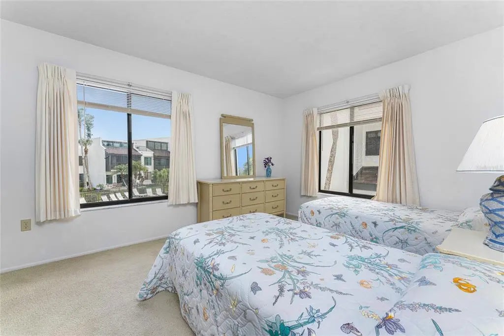 Expansive bay views invite you to watch boats go by, across one of the widest points of Lemon Bay, with salty breezes setting the tone for relaxed coastal living. This original-owner two-bedroom, two-bathroom condo at Tamarind Gulf & Bay offers beautiful Lemon Bay views from the living and dining rooms, complemented by peaceful pool views from both the living room and guest bedroom. Located in one of the few buildings in the complex with elevator access, this residence enjoys one of the most desirable locations and floor plans in the community. The living room features a bay window, and sliding glass doors that open to a screened east-facing lanai overlooking the bay and boat docks. The kitchen is equipped with wood cabinetry, Corian countertops, and a comfortable dining area ideal for everyday meals or casual entertaining. The ensuite primary bedroom is generously sized and includes a walk-in closet, a shower/tub combination, and an oversized vanity designed for ease and comfort. The guest bedroom offers a reach-in closet, while the guest bathroom also features a shower/tub combination, providing a welcoming space for visitors. Additional highlights include a December 2025 A/C system and Hot Water Heater. Convenient in-building storage area across from unit entrance. This true Gulf-to-Bay community offers a resort-style setting with many amenities, including one assigned covered parking space, guest parking, first-come first-served boat docks, deeded beach access, large heated pool, clubhouse, boat ramp, kayak racks, outdoor grills, fish-cleaning station, and approximately 450 feet of Gulf frontage. An onsite manager and one of the strongest associations in the area provide added peace of mind, with association fees covering water, sewer, basic cable, internet, pest control, and exterior maintenance. The community allows a two-week minimum rental and up to two pets. Set on the southwest Florida barrier island of Manasota Key, this unit at 2955 N. Beach Road is surrounded by lush tropical landscaping and charming cobblestone paths, offering effortless access to both the Gulf of Mexico beach and tranquil Lemon Bay. Scenic overlooks create perfect spots to enjoy wildlife, passing boats, and the relaxed waterfront lifestyle that defines life on Manasota Key.