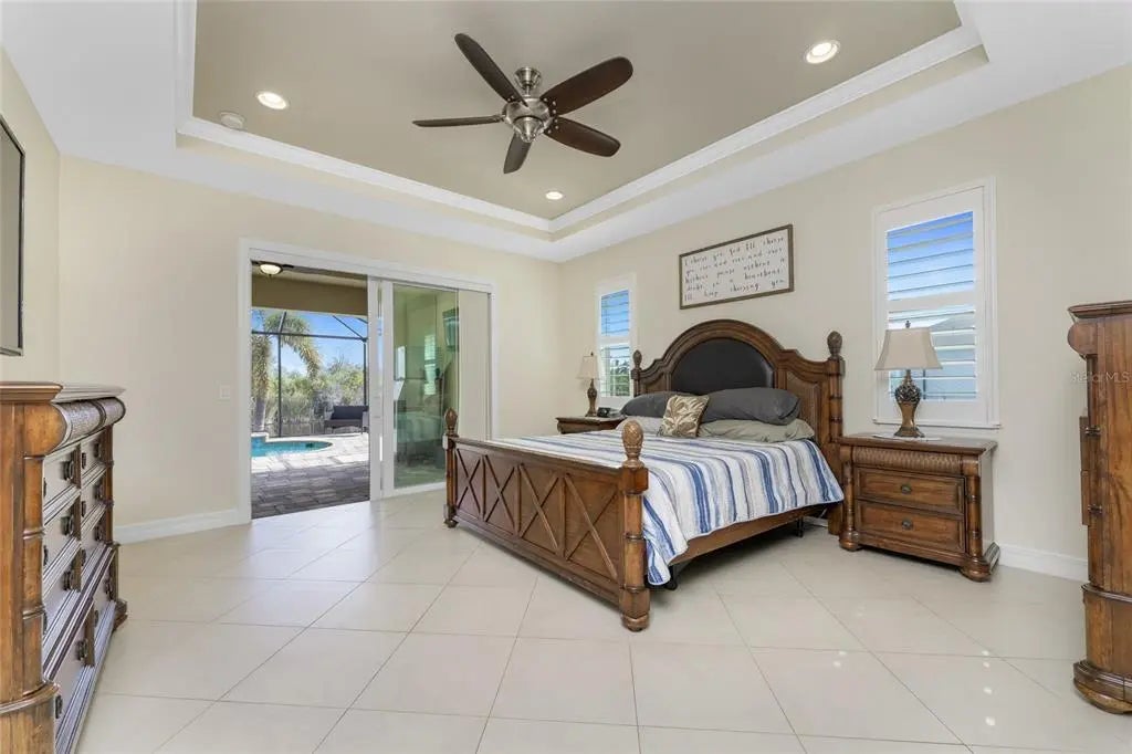 - Interior FeaturesCeiling Fan(s), Coffered Ceiling(s), Crown Molding, Eating Space In Kitchen, High Ceilings, Open Floorplan, Solid Wood Cabinets, Split Bedroom, Stone Counters, Thermostat, Tray Ceiling(s), Walk-In Closet(s), Window Treatments