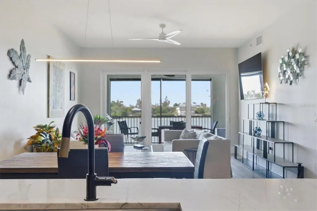Prime waterfront living on the Intracoastal Waterway. This beautifully upgraded 2-bedroom, 2.5-bath Spanish-style residence offers breathtaking water views and rare coastal luxury. Built with sturdy concrete pilings and poured beam construction, the home features impact-resistant elite Andersen windows and sliders, along with a Thermatru stained front door for added security and style. Inside, enjoy soaring 10’ ceilings, 8’ solid-core interior doors, and a spacious open-concept floor plan designed for both comfort and entertaining. The newer, updated kitchen showcases fresh custom cabinetry, quartz countertops, and stainless-steel appliances. Exceptional outdoor living awaits on the lanai, complete with a fully equipped outdoor kitchen—perfect for relaxing or hosting while overlooking the water. Residents of Hacienda enjoy endless first-class amenities, including two resort-style pools, a waterfront clubhouse, fitness center, day boat slips, tennis and pickleball courts, and 23 acres of beautifully maintained tropical landscaping. Ideally located next door to Palm Harbour Marina with ferry access to Palm Island, miles of pristine sandy beaches, nearby dining, essential shopping, numerous golf courses, historic Boca Grande, and world-class fishing and boating.
