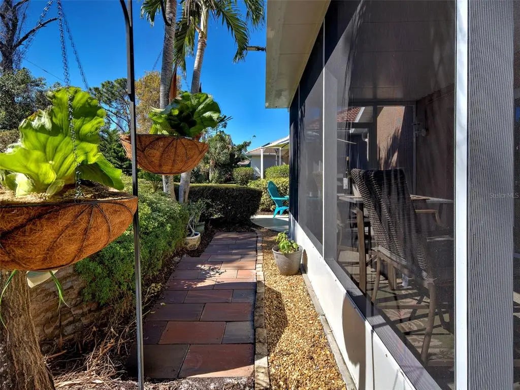 Under contract-accepting backup offers. You won’t believe this beautiful home – PRICED TO SELL. Located in the Coveted Southwood neighborhood, a gated and well managed community that has NO CDD and a LOW HOA! This beautifully maintained 2 bedroom plus flex/den, 2 bath home is nested amongst palm trees, lush landscaping and preserves in the backyard. This home shows larger that you would expect with the soaring vaulted ceilings in the Living Room a BRIGHT, SUNNY HOME. Impact Sliders lead to the huge screened lanai and backyard Paradise Oasis. Enjoy your privacy of the preserve and fenced area as you sit in your patio soaking up the sun and enjoying your morning java or afternoon spirits – a Gardner’s Delight that provides a private, and entertaining environment. Or relax and enjoy the scenery in your OVERSIZED, SCREENED, LANAI with Tropical plants that adorn the backyard landscape. You'll have Peace of Mind for years with your NEW ROOF (2025), NEWER AC, HOT WATER HEATER & HURRICANE IMPACT WINDOWS (2023). The Kitchen boasts solid surface counters, stone backsplash, plenty of cabinets, stainless steel appliances, touchless faucet and a Dinette. Gleaming Engineered Hardwood flooring thrughout provides easy maintenance with carpet only in the bedrooms. Both bedrooms are extremely GENEROUS IN SIZE, with the Primary Bedroom having an en-sute and large WALK IN CLOSET. An oversized 2 car garage has plenty of room for a workshop, has epoxy flooring, and hurricane rated garage door. Whitestone is a maintenance free, deed restricted community, pet friendly with sidewalks. We have our very own heated Community Pool and a very active clubhouse where residents meet regularly for social gatherings and events. In addition this home is located in Flood Zone X – NO FLOOD INSURANCE REQUIRED. Added Plus we are offering a HOME WARRANTY. Make this your Dream Paradise place to live. You are only minutes to the up and coming Wellen Park and the Cool Today Stadium where the Braves hold their spring training. Concerts, symphonies, fireworks and special activities are held year round at Wellen Park. Wellen’s Large Lake hosts walking trails, water events and sports. Costco, major highways, medical facilities, Sharkeys, historic downtown Venice with its boutique shops, gourmet restaurants, in addition multiple beaches are all nearby. Call today and start enjoying your “SLICE OF PARADISE” and begin enjoying the Good Life in Florida, LIFE AS IT SHOULD BE!