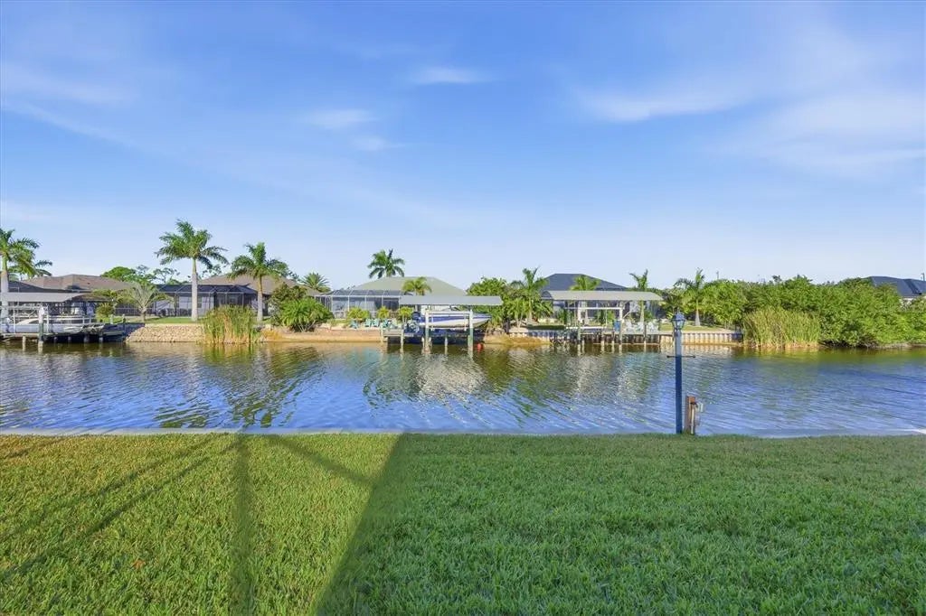 Welcome to an exceptional DM Dean custom built, canal front residence located on the Santa Cruz Waterway in the highly sought after South Gulf Cove community. Perfectly positioned on an oversized lot, this 3 bedroom home with a versatile flex room and 3 full bathrooms offers refined Florida living with premium craftsmanship, thoughtful design, and true waterfront functionality. From the moment you arrive, the double front entry doors and elegant architectural details set the tone. Inside, the open-concept layout is enhanced by 8-foot interior doors, abundant natural light, and plantation shutters on every window. The entire home is insulated with spray foam, delivering superior energy efficiency and comfort year-round, while upgraded designer faucet fixtures throughout add a refined finishing touch. The gourmet kitchen is a true centerpiece, featuring GE Profile appliances, a striking custom designed hood, drawer microwave, and seamless flow into the main living area, ideal for both entertaining and everyday luxury. The primary suite is a peaceful retreat with spacious walk-in closets and a spa-inspired bath with built in vanity. Step outside to your private outdoor oasis. The oversized lanai is fully kitchen ready with plumbing and electrical in place, overlooking a heated saltwater pool and spa designed for year round enjoyment. The upgraded ProVista hybrid grass, complemented by a full irrigation system, adds beauty and low maintenance convenience to the expansive yard. Boating enthusiasts will appreciate the concrete seawall already installed, with electric and plumbing available for a future dock and lift. Enjoy Gulf access via the lock system, opening the door to exceptional boating and fishing adventures. The 4-car garage offers outstanding versatility, featuring a premium Swisstrax maintenance free flooring system, a workshop area with a mini-split A/C unit, full insulation, and ample space for vehicles, hobbies, or storage. A handicap accessible ramp is currently installed, providing enhanced accessibility. The well appointed laundry room includes a convenient washtub and custom cabinetry above the washer and dryer, offering both functionality and additional storage. Additional highlights include hurricane impact windows and doors throughout, quality finishes, and meticulous attention to detail at every turn. This is more than a home it’s a statement of luxury, lifestyle, and waterfront living in one of the area’s most desirable communities. A rare opportunity to own a beautifully crafted canal front residence ready for its next chapter. Perfectly positioned between Sarasota and Fort Myers, this home places you minutes from world class fishing, championship golf, vibrant dining and shopping, and the pristine beauty of Southwest Florida’s beaches. Paradise awaits you.
