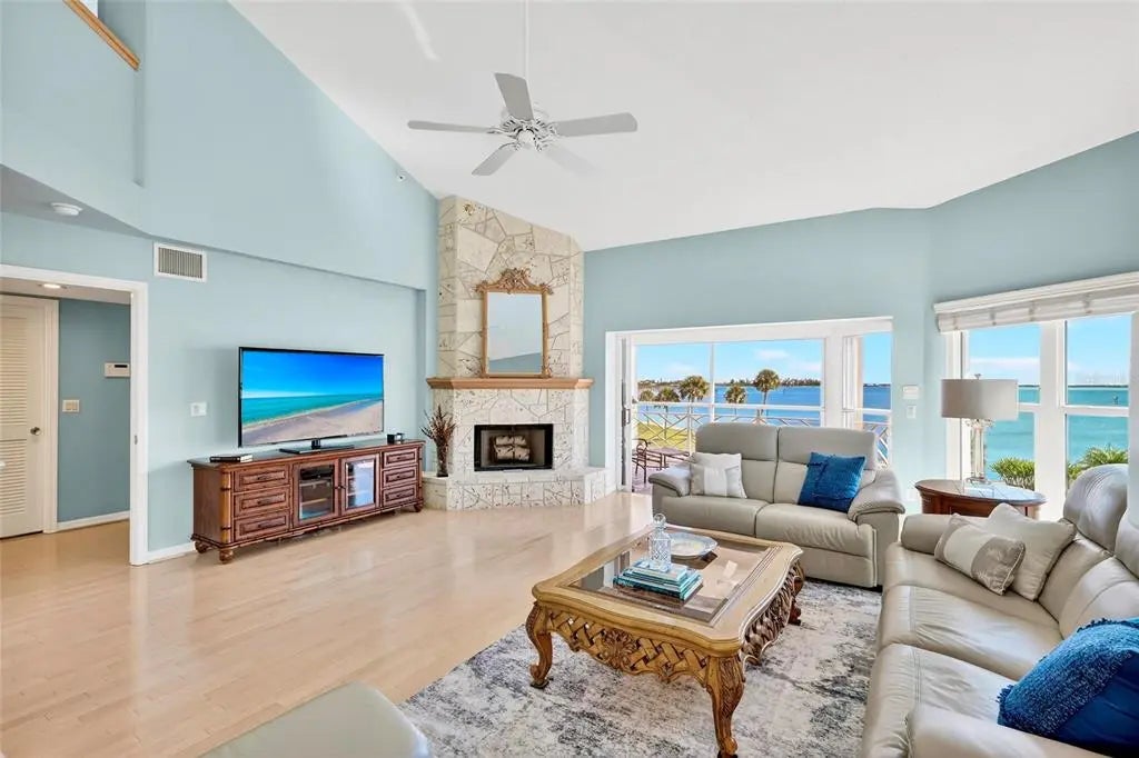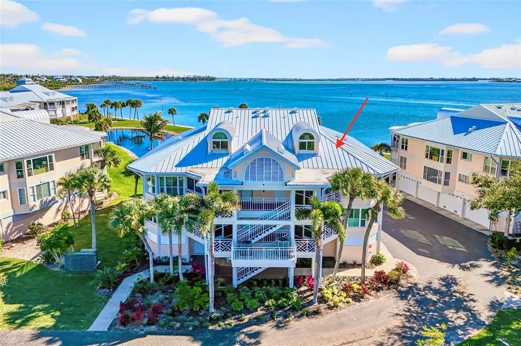 Welcome to Placida Harbour Club Unit 2804, a premier top-floor residence offering one of the most commanding waterfront vantage points in this exceptional community. With its elevated position and unobstructed sightlines, this residence delivers panoramic views across Placida Harbor, the Intracoastal Waterway, and toward the Boca Grande Causeway—a visual experience that truly sets it apart. Here, location isn’t just important; it’s everything. This expansive 3-bedroom plus den, 3½-bath condominium spans 2,865 square feet and is defined by its dramatic ceiling volume and abundant natural light, a benefit unique to top-floor living. The home’s ideal orientation, combined with expansive impact-resistant glass, fills the living spaces with sunlight while framing ever changing water views of passing boats, playful dolphins and manatees below, and vibrant coastal skies stretching across the horizon. The open living and dining areas are designed for both everyday comfort and effortless entertaining, flowing seamlessly to the screened lanai. Outfitted with roll-down shutters, the lanai becomes an extension of the interior living space, offering year-round enjoyment of the coastal breeze and sweeping water vistas. The kitchen opens to a welcoming breakfast nook, while providing ample cabinetry, generous counter space, and a functional layout for everyday living. The primary suite serves as a private retreat, featuring a spacious bath with dual vanities, soaking tub, and separate shower. Guest suites and the flexible den provide ideal accommodations for visitors or a home office, all thoughtfully arranged to balance privacy and openness. Additional upgrades and amenities include elevator access, a new standing seam metal roof (2023), and a two-car tandem garage with a generously sized private storage room, offering exceptional convenience and storage rarely found in condominium living. Beyond the residence, Placida Harbour Club offers a truly elevated coastal lifestyle. Residents enjoy access to three waterfront clubhouses, three heated pools, a fitness center, tennis and pickleball courts, a deep-water marina with kayak launch, waterside walking paths, and private ferry service to the pristine beaches of Little Gasparilla Island. With extensive community enhancements recently completed the lifestyle here is better than ever. Unit 2804 represents a rare opportunity to own a residence where elevation, light, and location converge—a home that shares the scale and layout of other premier residences yet delivers a markedly superior setting and view experience. This is Placida Harbour Club living at its finest.