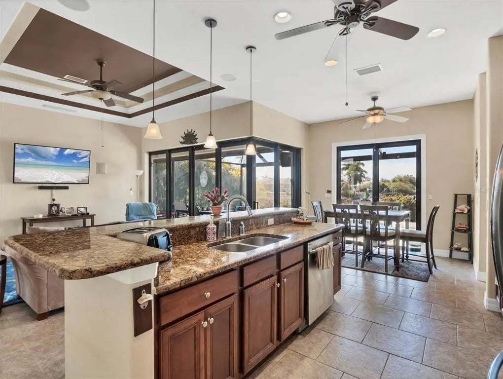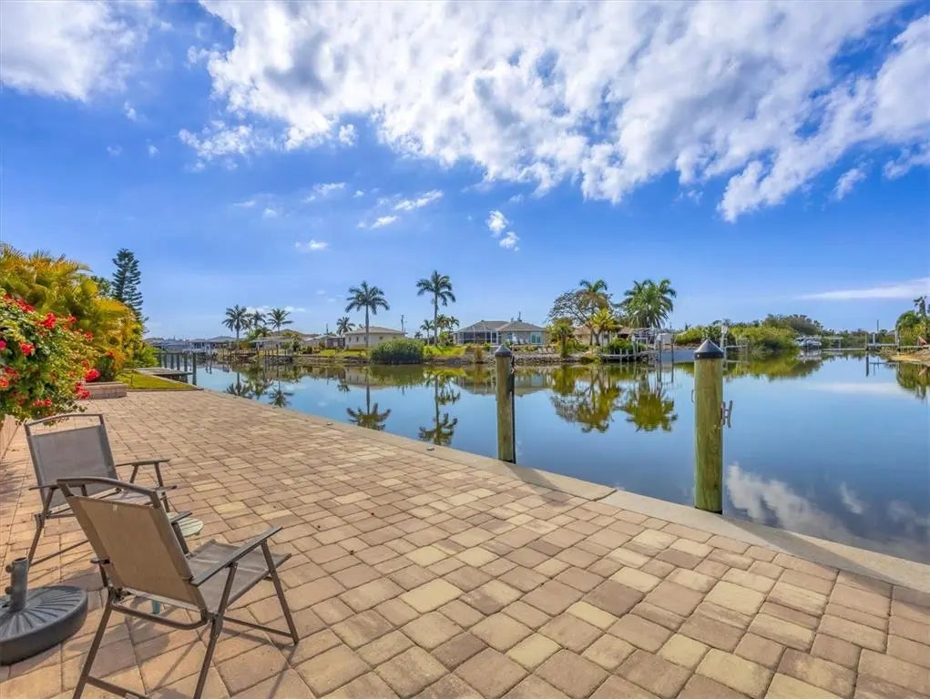 Welcome to Paradise! This home features expansive water view from almost every room in the home. With open floor plan, split bedroom you will enjoy open space, plus open up “zero corner” sliders that allows you even more space with covered lanai/pool area. The kitchen features breakfast bar, with granite counter tops, solid wood cabinets, and stainless appliances. Large primary bedroom also has slider that opens to the pool area, walk in closets and tray ceiling. Primary bathroom has walk in tiled shower with bench, dual vanities and private toilet closet. Third bedroom has its own patio thru sliding glass doors. Second bathroom also serves as the cabana bath. Outside features are paver driveway and walk ways to front of home and out of the pool area down to terrace down by the dock and water way. All of this located in water front community of South Gulf Cove! Close to restaurants, our beautiful beaches and sever golf courses. Don’t wait call to day to come see this beautiful home and make it your own piece of paradise!