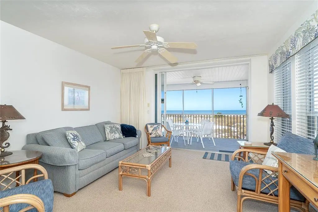 Experience beachfront living in this beautiful Gulf front 2-bedroom, 2 bath condo! Enjoy breathtaking, unobstructed Gulf views from your screened in balcony, where white sand dunes meet the blue waters of the Gulf. This inviting retreat features a light and airy open living and dining area, perfect for relaxing or entertaining, and a fully equipped kitchen with charming coastal decor. Ideal for a serene getaway or enjoying island life. This condo offers the ultimate in coast living, with direct access to the beach and all the benefits of island life. Located between Ft. Myers and Sarasota getaway to Palm Island accessible only by car ferry or boat. The resort style amenities are plenty; tennis, pickleball, fitness classes and work out room, participate in the calendar of activities or start your seashell collection. You must see the view from this one, it is amazing!