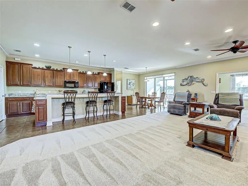 4 bedroom, 3 bathroom home featuring TWO full en suite bedrooms plus a den, offering nearly 2,700 square feet of spacious, well designed living space. This home feels massive from the moment you walk in. Priced to sell and move in ready, this beautifully maintained 2016 built home includes a 3 car garage and sits on an oversized corner lot along a freshwater canal in highly sought after South Gulf Cove. Inside, the open layout is bright and inviting with volume ceilings, crown molding, and seamless flow from the kitchen through the dining area and expansive family room. Large 8 foot sliders frame tranquil pool views and flood the home with natural light, making everyday living and entertaining effortless. The kitchen is both functional and stylish, featuring new granite countertops, staggered cabinetry, a raised breakfast bar, a generous pantry, and plenty of space to gather whether hosting friends or enjoying a quiet morning coffee. The family room remains connected to the outdoor living space, perfectly suited for Florida’s indoor outdoor lifestyle. The primary suite is spacious and inviting with a tray ceiling and multiple windows that allow natural light to pour in. The en suite bath offers dual vanities, a garden tub, a glass enclosed shower, and a large walk in closet. Two guest bedrooms share a hallway bath for added privacy, while the second en suite bedroom provides an ideal setup for guests or an in law suite. Step outside and enjoy a private outdoor retreat. The covered, pavered lanai offers plenty of room for dining, entertaining, or relaxing out of the sun. The sparkling Pebble Tec pool features a sundeck and bubbler, along with a dedicated sunbathing area, making it perfect for hot Florida days. Additional highlights include a new pool pump in 2022, storm shutters, an oversized lot, and a prime location close to beaches, golf courses, and local dining. This home truly checks every box and is a must see. Schedule your showing today.