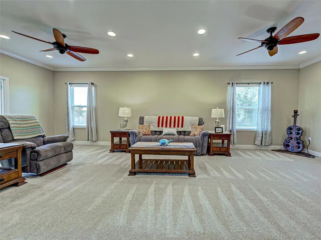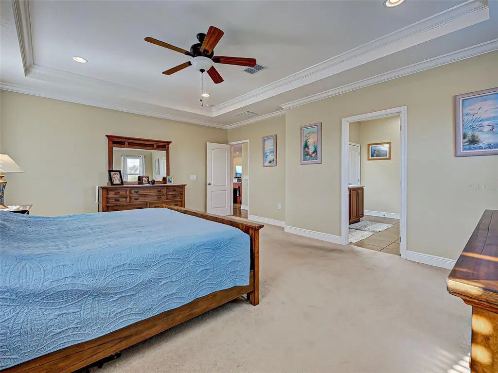 - Interior FeaturesCeiling Fan(s), Crown Molding, Eating Space In Kitchen, High Ceilings, Kitchen/Family Room Combo, Open Floorplan, Primary Bedroom Main Floor, Split Bedroom, Tray Ceiling(s), Walk-In Closet(s)