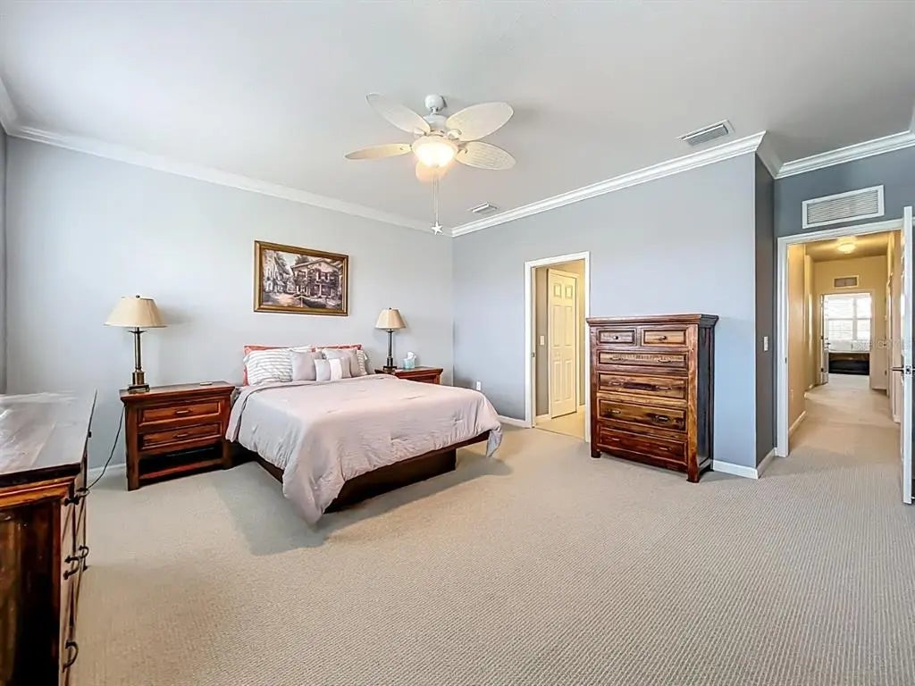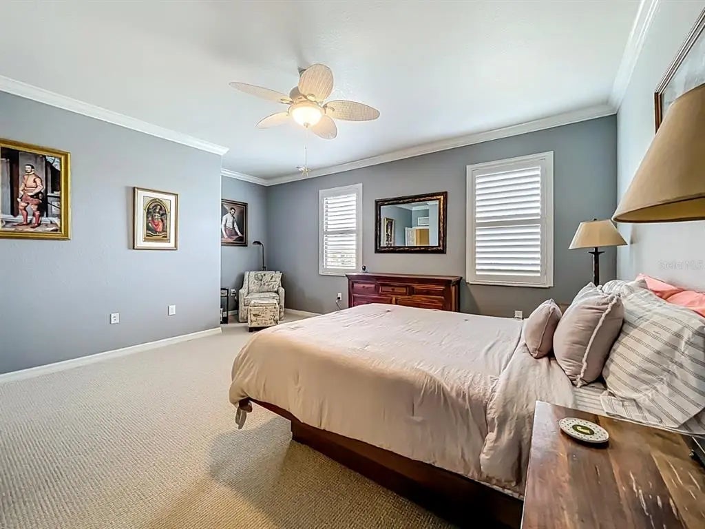 - Interior FeaturesCeiling Fan(s), Crown Molding, High Ceilings, In Wall Pest System, Open Floorplan, Thermostat, Walk-In Closet(s), Window Treatments