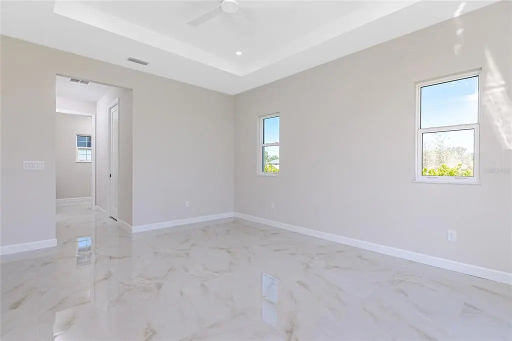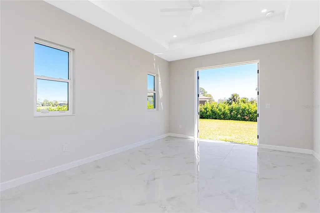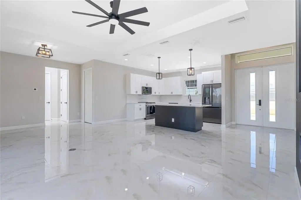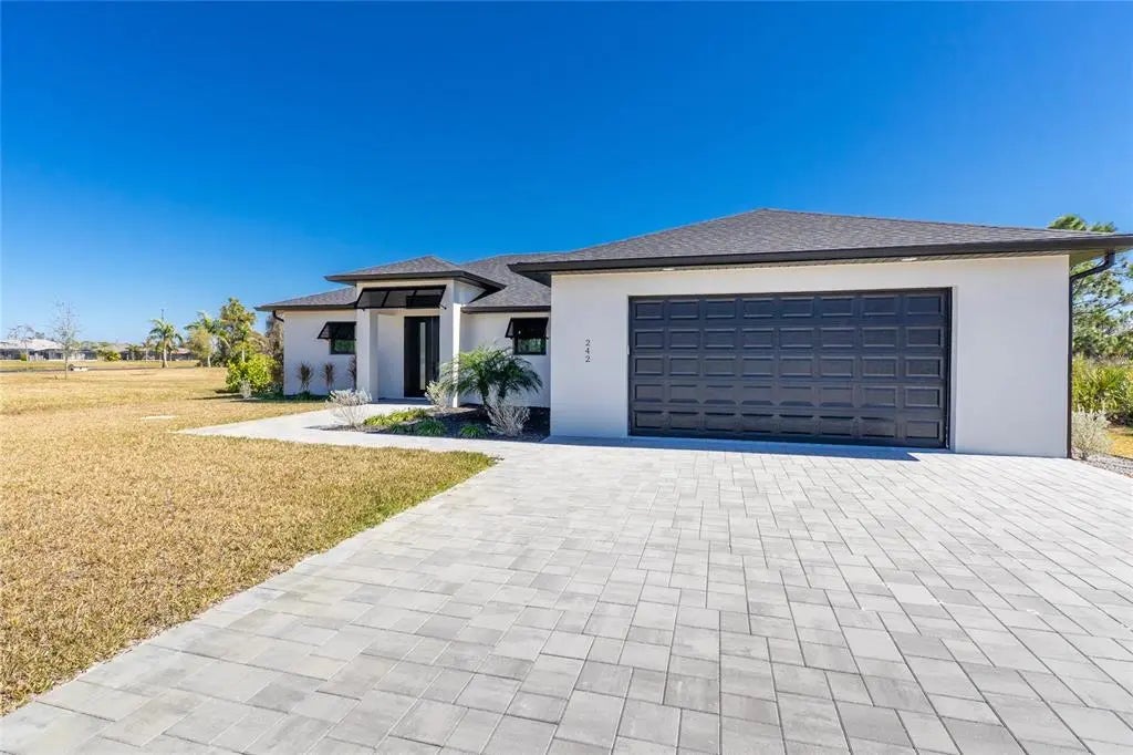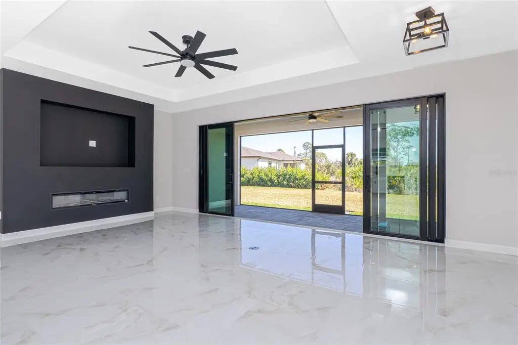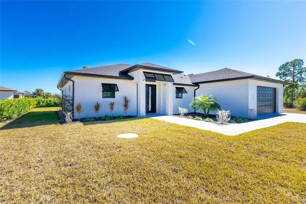 Available NOW — Brand-new 2024 construction available for annual lease in Placida. This 3-bedroom, 2-bath, 1,668 sq ft, carpet-free home offers an open floor plan with high ceilings, electric fireplace, and panoramic sliding glass doors opening to a screened lanai for seamless indoor-outdoor living. The modern kitchen features stone countertops, a center island with breakfast bar, and is fully equipped with refrigerator, range, microwave, dishwasher, while the indoor laundry room includes a high-efficiency washer and dryer. The primary suite offers an ensuite bath with dual sinks, a walk-in tiled glass shower with built-in seat, and a rain shower head with handheld attachment. Additional highlights include a landscaped property, interlocking paver driveway, and a 2-car garage (single door). Dogs allowed with deposit. Lawn cutting, trash, and recycling are included in rent for low-maintenance living. Conveniently located approximately 11 miles to Boca Grande, 10 miles to Englewood Beach, and 4 miles to Publix. Application fee is $50 per adult; applications submitted via RentSpree at this link https://apply.link/r__ymjM.