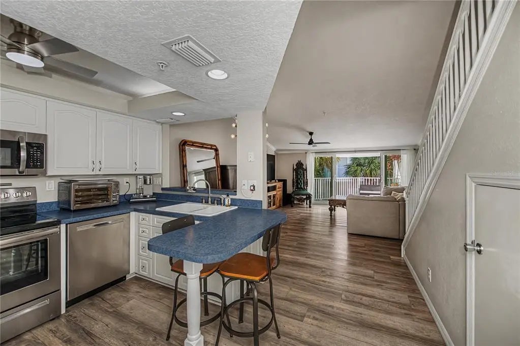 Welcome to ISLAND LIFE on Manasota Key! NEVER WORRY ABOUT BEACH PARKING or parking anywhere on Beach Rd for that matter EVER AGAIN! RARE 1347 sq ft 2 bedroom 2 bath Townhome on "The Island". 90 second walk to Englewood Beach and minutes to all the Beach Rd. restaurants and shops. This 2000 built elevated fortress in paradise is located in the highly sought after community of Live Oak Landings. The location truly doesn’t get better than this. The ground level offers an EXTRA DEEP 30x17 ONE CAR GARAGE PLUS a 27x17 CARPORT, while the elevated living space provides added peace of mind. There’s even accessible space to install an elevator if desired. Proudly Veteran (U.S. Marines) owned and meticulously maintained, this townhome delivers the Florida lifestyle most people only dream about. Dock your boat in the community slips on Lemon Bay, cool off in the heated pool, or simply stroll across the street to sink your toes in the sand. Beach days aren’t a vacation here—they’re your routine. Inside, you’ll find brand-new luxury vinyl plank flooring throughout and new impact sliding glass doors on the main level to the rear balcony, blending style with peace of mind. Vaulted ceilings elevate the dining and living spaces, filling the home with light and airy coastal charm. Imagine a 90-second stroll across the street to Englewood Beach on Manasota Key, spontaneous sunset walks whenever you please, and effortless evenings with seven nearby restaurants just a short walk away — or hop on a complimentary ride with Stumpy’s Free Ride for a fun coastal cruise. Perfectly positioned on Manasota Key, this rarely available townhome delivers unmatched convenience paired with smart, elevated design. Just 30 seconds from your door, the heated/cooled community pool feels like your own private retreat. Inside, nearly 1,400 square feet of thoughtfully designed living space includes a split-bedroom layout, with a spacious top-floor primary suite featuring a bonus office nook and glimpses of Lemon Bay for breathtaking sunrise views. Both bedrooms enjoy private balconies with sliding doors that invite in the abundant Gulf breezes. A new impact-rated sliding door opens from the living room to the rear balcony — the perfect perch for morning coffee or evening cocktails. With a NEW ROOF (2023), NEW AC (2020), luxury coastal vinyl flooring throughout (including the stairs), city water and sewer, heated/cooled pool access, guest docks (being replaced), insurance coverage through the HOA (contents excluded), and 30-day minimum rentals permitted — this property blends lifestyle and investment potential seamlessly. NO CDD FEES!! Walk to the beach. Walk to dinner. Watch the sunset whenever you want. This isn’t just a townhome — it’s your front-row seat to paradise. Opportunities like this on Manasota Key are rare… claim your slice of paradise before someone else does.