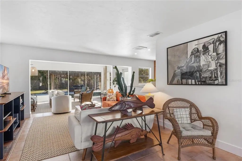 Discover 320 Gasparilla Street located just south of the village in Golden Beach. This 3-bedroom, 2-bathroom pool home offers comfortable living with a desirable one-level layout, situated on a large, south facing lot. The main living areas feature a living and dining room combination, complemented by a glassed-in Florida room that fills the home with natural light. The kitchen is clean and functional, and the bedrooms are generously sized. The fully fenced backyard includes a freshwater pool and a tiki-style bungalow, creating a private outdoor haven. Conveniently located near a beach access, the property offers the laid-back coastal lifestyle Boca Grande is known for. Whether as a primary residence, seasonal getaway, or investment property, this presents a wonderful opportunity to own on Gasparilla Island.