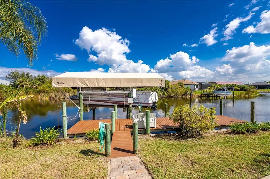 ** This one CHECKS ALL the BOXES ** ADJACENT LOT AVAILABLE | 4 Bedrooms | 3 Baths | 3 Car Garage | POOL | DOCK / LIFT | GULF ACCESS ~ Wake up to the sunrise and long, TRANQUIL CANAL VIEWS and the sound of seabirds greeting the morning. This beautifully designed waterfront home invites you to live the Florida boating lifestyle at its best — where every day feels like vacation... Step inside to an OPEN, AIRY floor plan with VAULTED ceilings that immediately draws your eye to the WATER ~ EXPANSIVE SLIDING GLASS DOORS and LARGE WINDOWS fill the home with natural light while capturing the stunning sights of the canal. ** The chef friendly kitchen features a BREAKFAST BAR, TWO PANTRIES and a GAS STOVE ** An open living area makes entertaining effortless, whether you’re hosting friends by the pool or enjoying dinners with family ~ Outside, relax or play in your POOL and SPACIOUS LANAI — the perfect setting for year round gatherings. For the boating enthusiast, this property offers DIRECT ACCESS to CHARLOTTE HARBOR and the GULF OF MEXICO. Launch right from your own 38’ COMPOSITE DOCK equipped with water, electric, and a COVERED BOAT LIFT — truly a boater’s paradise. ~ After a day on the water, retreat to the primary suite, featuring a canal view, DUAL WALK-IN CLOSETS and a spa inspired ensuite bath with a garden tub, walk-in shower, and double sinks. ** NEW ROOF in 2023 ** - every window and door is IMPACT RATED or HURRICANE PROTECTED, giving you peace of mind in all seasons** Located in the highly desirable South Gulf Cove community, you’ll be close to world class fishing, miles of pristine beaches, golf courses, waterfront dining, boutique shopping, and fun island hopping — everything that makes Southwest Florida one of the most sought after destinations in the U.S. The ADJACENT LOT is AVAILABLE for purchase under separate agreement, offering the option to expand your estate or build for family and friends nearby. This home is priced to sell — and ready for you to start living the lifestyle others only dream about!!