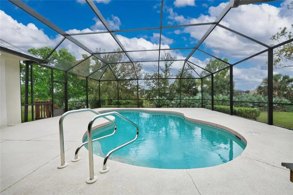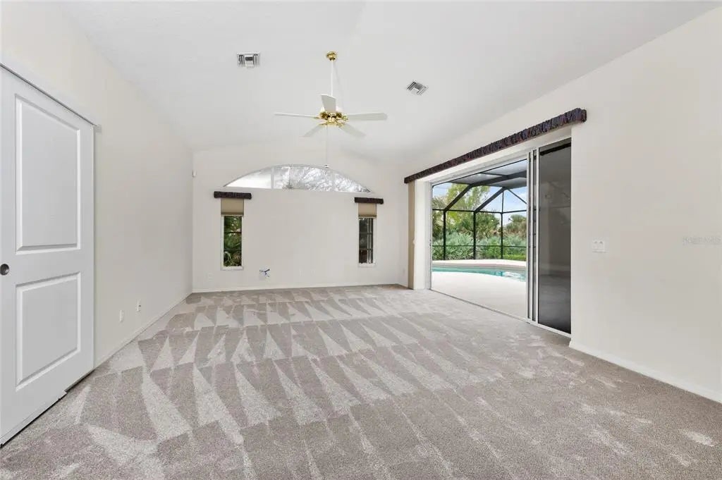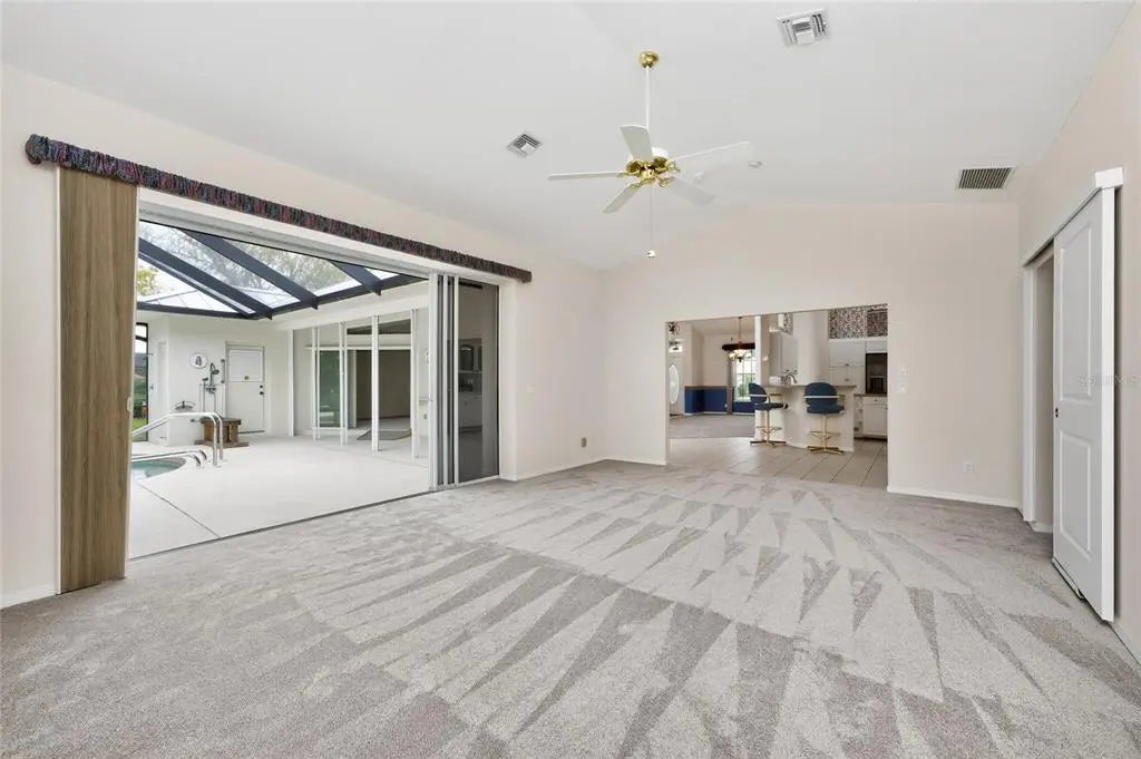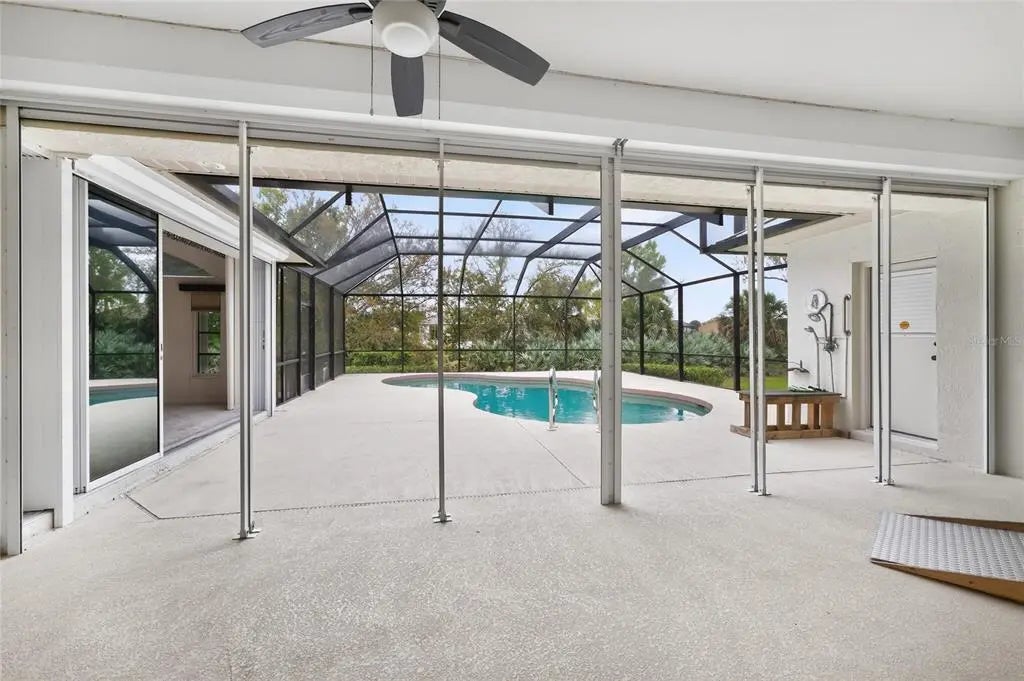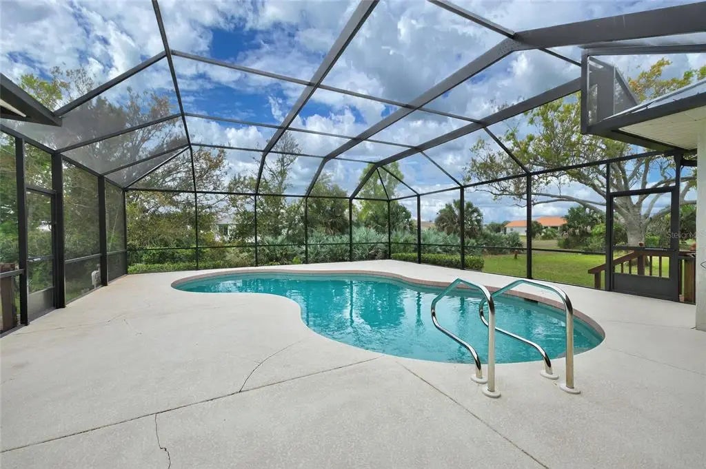 One or more photo(s) has been virtually staged. Offered for the first time ever! This beautifully maintained home sits on over half an acre on a rare double greenbelt lot in a desirable deed-restricted golf course community with low annual fees. Built by one of the area’s premier builders, Newport Homes, the residence offers nearly 2,500 square feet of comfortable living space with a thoughtful layout and numerous updates. Inside, the home features 3 bedrooms, 2½ bathrooms, and a popular split floor plan designed for both privacy and functionality. The living and dining area showcases a soaring cathedral ceiling and sliding glass doors that open to the lanai, creating a bright and airy atmosphere and seamless indoor-outdoor living. There are lighted hutches/display cabinets in the dining area and kitchen to show off your pretty dinnerware and stemware,and provide extra storage! New carpeting has been recently installed in the living room, dining room, and primary bedroom. The central vac system makes for easy cleaning! The spacious primary suite offers a relaxing retreat with tray ceiling detail, two walk-in closets (one with an in-floor safe) plus an additional wall closet, and sliding glass doors leading to the lanai. The primary bath features a long vanity with cultured marble countertop and a walk-in shower with safety bars already in place. Two comfortable guest bedrooms, each with ceiling fans and wall closets, share a conveniently located guest bath with a tub/shower combination and cultured marble vanity. The kitchen comes fully equipped with a complete appliance package, including a built-in microwave (2023), stove, French door refrigerator (2024), dishwasher (2025), plus an additional refrigerator and freezer in the garage. A movable island provides flexible workspace, and the home also includes a large laundry room for added convenience. Washer and Dryer are also included. Outdoor living is just as impressive. Enjoy the self-cleaning pool within the new pool cage installed in 2023, along with an outdoor shower and direct access to the half bath from the lanai, perfect for poolside entertaining. Car enthusiasts, hobbyists, or remote workers will appreciate the oversized 3-car garage, with the third bay currently configured as an air-conditioned workshop—ideal for woodworking, crafts, or even a private office. The garage also features durable epoxy floor coating and a utility sink for easy cleanup. Major updates provide peace of mind, including a metal roof (2023), electric hurricane shutters installed in 2024 and 2025, whole-house generator, water heater (2021), and AC system replaced in 2015. Set on an expansive lot with added privacy from the surrounding greenbelt, this first-time-to-market home offers space, comfort, and thoughtful upgrades in a highly desirable golf course community. Proximity to Boca Grande, several area beaches, quaint shops, Famous Thursday Farmer's Market, and individually owned restaurants are an added bonus!