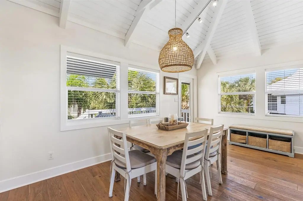 This renovated Village home is well positioned, offering a sense of openness that is uncommon in this setting, with Gulf views from each level that quietly anchor it to its surroundings. The enclosed entry corner extends the living space in a way that feels integrated rather than additive, adding meaningful interior square footage and enhancing the home’s overall livability. A second enclosed corner off the guest bedroom provides additional interior space, offering flexibility for guests or quiet separation when needed. An outdoor patio provides further usable space and a natural extension of the main living areas. The interior renovation is clean and current, with a layout that feels intuitive and easy to live in. Plantation shutters throughout add both architectural detail and light control, complementing a décor that is coastal and considered, with a beach-inspired palette that reads as both relaxed and refined. The exterior has been carefully maintained, with a 2022 standing seam metal roof, Trex stairs and decking, and predominantly impact-rated glass and sliders, offering durability well suited to the coastal environment. A dedicated golf cart entrance adds a practical layer to daily life, allowing for easy movement to and from the garage and throughout the community. Mature landscaping frames the property, lending a sense of privacy and permanence. Furnishings are available, offering a seamless transition for those seeking a more immediate move-in. Ownership within the Boca Grande Club includes access to one of the island’s most expansive private beaches, multiple pools, eight Har-Tru tennis courts, a well-regarded tennis program, a fitness center, and waterfront dining, all within a gated, professionally managed community designed for a relaxed coastal lifestyle.