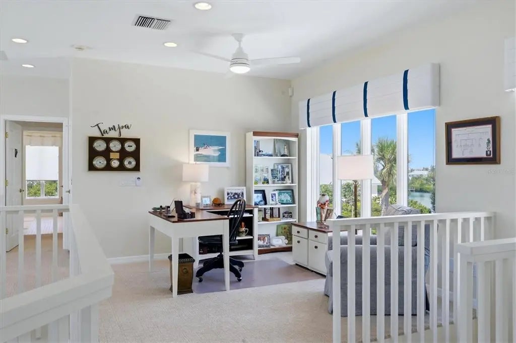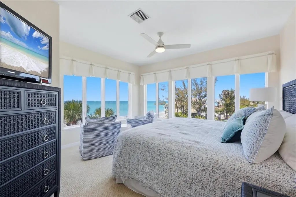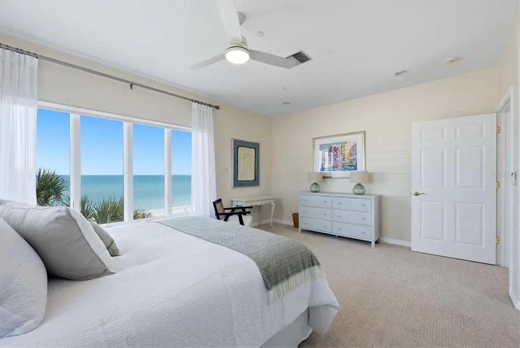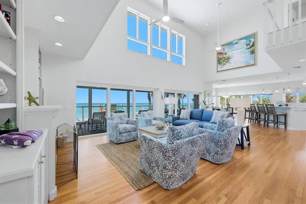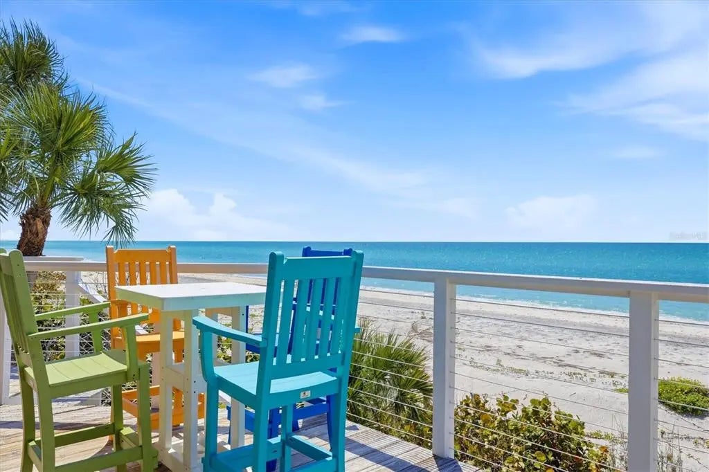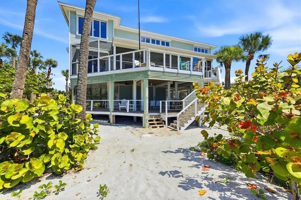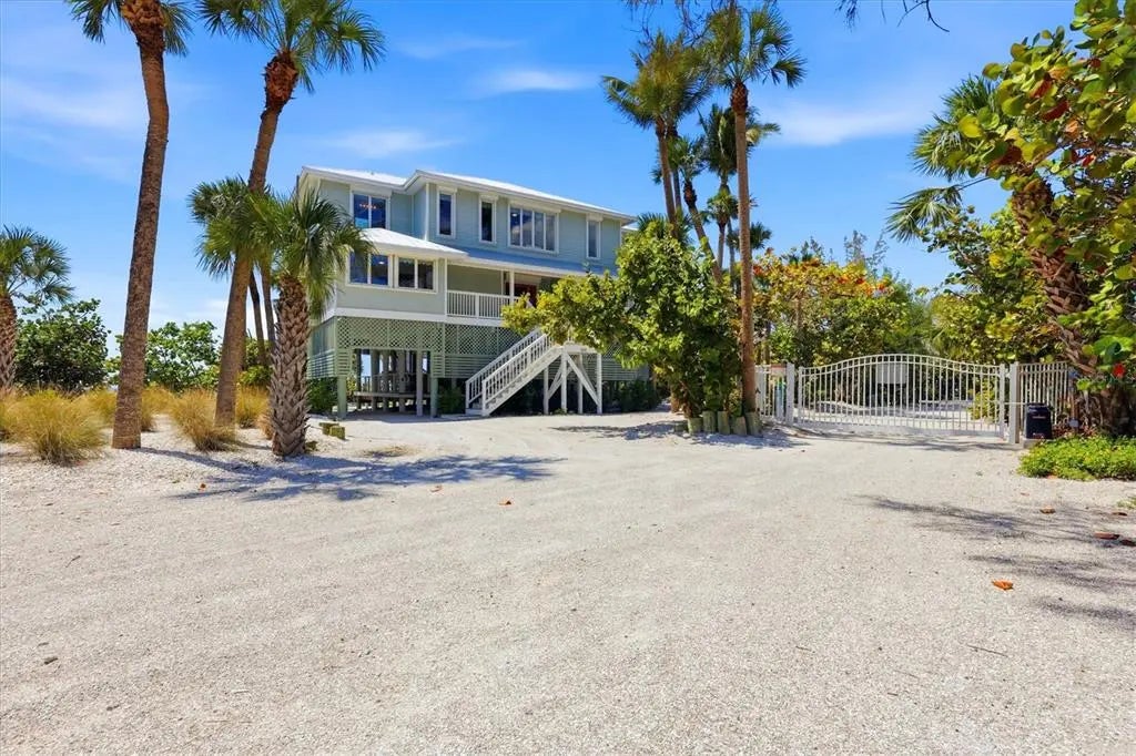STUNNING GULF-TO-BAY ISLAND ESTATE in the exclusive, gated community of Bocilla Beach to Bay on Don Pedro Island. Situated on ¾ of an acre with over 130 feet of direct beachfront, this rare property offers unmatched privacy, framed by lush tropical landscaping and the serene beauty of the Gulf. Designed for the ultimate coastal lifestyle, the property includes a private deeded dock with a 10,000 lb covered boat lift and even comes complete with a 24' Boston Whaler Dauntless—ready for days on the water. Offered turnkey furnished, this home also includes a new golf cart, making island living effortless from the moment you arrive. The residence features 4 bedrooms, 3.5 baths, plus an upstairs office showcasing a wall of windows with sweeping views of the turquoise Gulf waters. A 3-stop elevator services all levels, leading to an upper floor where the primary suite—and a potential second primary—overlook the quiet, pristine beach. The main living area is bright and inviting, with new hurricane-rated sliding glass doors opening to a spacious screened lanai, allowing coastal breezes to flow throughout. Downstairs, a massive shaded deck creates the perfect space for year-round outdoor living and entertaining. Additional highlights include a newer metal roof, new A/C system, hurricane shutters, golf cart garage, and abundant storage. Bocilla Beach to Bay offers an ultra-private island lifestyle with amenities including a community pool, tennis courts, and a golf cart bridge. This is a rare opportunity to own a true Gulf-to-Bay estate where boating, beachcombing, and breathtaking sunsets are part of everyday life.