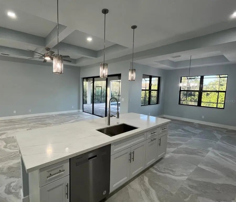 Tha Cayo Sol a waterfront pool home with access to the beautiful gulf waters. It offers 2,112 sq. ft of liv-ing area, composed of 3 bedrooms, a den, a large master bath, a cabana bath and 3 car garage. The ceilings are 9’-4’’ high throughout the home and 10’-4’’ high in the living, kitchen, and den. Tray ceilings and decorative beams accentuate the master bedroom, dining room and the living room. Impact windows and glass doors, concrete paver drive-way, and calacatta porcelain tile floors throughout the entire home. Solid wood 42-inch-high cabinets with soft closing doors and drawers, quartz countertops, stainless-steel appliance package in the kitchen. Lush landscape with irrigation system. Two large guest bedrooms, a master suite with 2 large walk-in closets (his & hers) and a sliding glass door which leads di-rectly to the screened in pool area. Master bath with double sinks, private water closet and an oversized shower. It is in the prestigious waterfront community of South Gulf Cove, close to Boca Grande's and Gasparilla Island’s white sandy beaches, sandbars, marinas, fishing, golf courses, restaurants, and shopping. Drawing of the dock to be built for additional for $24,900