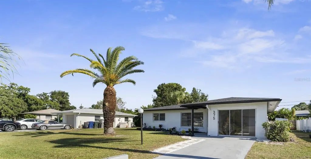 This charming single-family home located at 375 Burke Rd in a wonderful neighborhood close to intercoastal offers a cozy and inviting atmosphere for its residents. Not in a flood zone. The residence features a total finished area of 1,520 square feet, providing ample space for comfortable living. Nicely updated Thru-Out and features a Brand New roof, New Flooring and Quartz Kitchen. The home is Situated on a spacious lot size of 8,000 square feet, there is plenty of outdoor space for relaxation and entertaining.The exterior of the home boasts a classic design with a well-maintained lawn and landscaping, creating great curb appeal. The interior features a functional layout with a combined living and dining area, perfect for everyday living and hosting guests. The kitchen is equipped with stainless steel appliances and ample cabinet storage, making meal preparation a breeze.The bedrooms are spacious and offers a comfortable retreat for rest and relaxation. The bathroom is well-appointed with modern fixtures and a shower/tub combo. Throughout the home, large windows allow for natural light to flood the space, creating a warm and inviting ambiance.The backyard offers a private oasis with plenty of room for outdoor activities and gatherings. Whether you enjoy gardening, barbecuing, or simply relaxing in the sun, this backyard provides endless possibilities for enjoyment. The property also features a driveway for parking convenience.Located in the desirable city of Venice, FL, this home is conveniently situated near shopping, dining, entertainment, and beautiful beaches. With easy access to major highways, residents can enjoy quick commutes to surrounding areas and attractions.Overall, 375 Burke Rd in Venice, FL is a wonderful opportunity for those seeking a cozy and well-maintained single-family home with ample indoor and outdoor living space. Don't miss out on the chance to make this property your own and start creating lasting memories in this inviting residence.