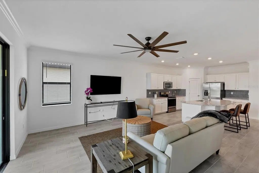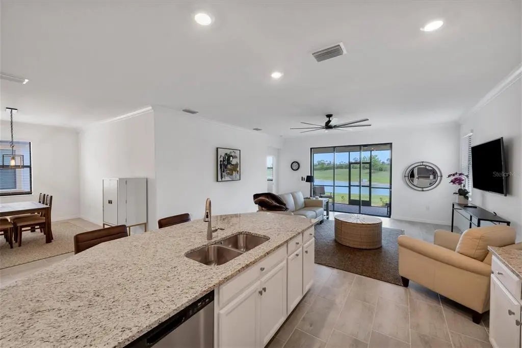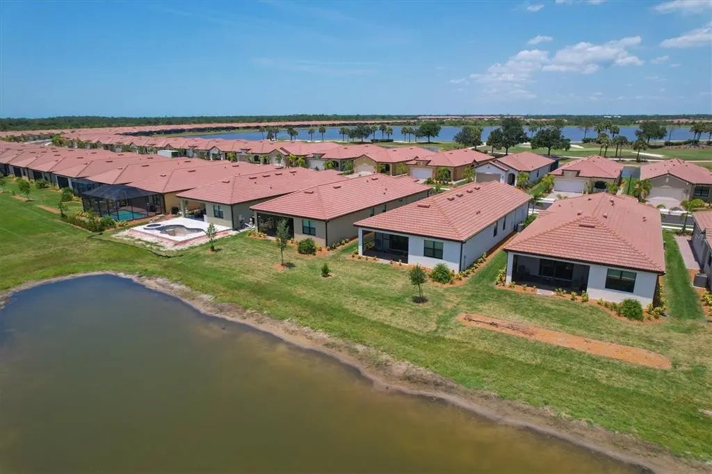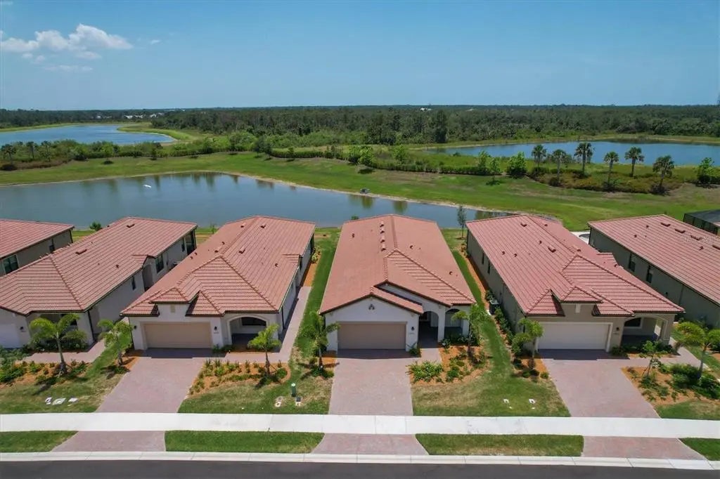 This home just built in 2022 and now available for quick move in. The popular MILAN floor plan 2BD/2BA/DEN/2CG with LAKE AND GREENSCAPE VIEWS, NO HOUSES BEHIND YOU!!! PLENTY OF ROOM TO ADD YOUR OWN PRIVATE POOL!! Open floor plan with tons of windows and light- bright and sunny with SOUTHWEST exposure. That means spectacular SUNSET VIEWS! Covered lanai to sit and watch the Florida wildlife. Plenty of room to add a pool. Property is being offered TURNKEY! TWO FULL GOLF MEMBERSHIPS COME WITH THIS HOME!! Open floor plan with rectangular tile flooring throughout main areas and carpet in the bedrooms. Crown molding in main areas. Spectacular kitchen with granite counters, stainless steel appliances, back splash, upgraded raised panel cabinets, Island with counter height seating. Separate Den area, formal living room space, or whatever your needs might be. Separate dining area for more formal gatherings, family gatherings, or game night. Master bedroom with en suite bath overlooks spectacular view. Master bath offers dual sinks and large walk in shower, walk in closet. Guest bedroom and bath at other end of home for privacy Sarasota National is a marvelous community with over 1300 acres designated for preservation, conservation, lakes, and open space with amazing views, Proclaimed as an Audubon International Certified Sanctuary, making it the most gorgeous and enjoyable golf course to play at in the area. Offering resort style amenities with huge resort style pool and spa,Tiki Bar to serve refreshing drinks and a bite of lunch, tennis courts, pickle ball, Bocce courts, coffee lounge/library/card room/meeting place, 7000 sq ft fitness facilities offering classes and day spa, and a 30,000 sq ft Clubhouse with dining and spectacular views. 18 Hole championship golf course surrounded by native wetlands and preserves provides an exhilarating and dramatic back drop for your golfing adventure. Minutes away from the new Wellen Park shopping area and Atlanta Braves stadium. Venice Beach and Venice Downtown are just a short drive. Your choice of restaurants and outdoor activities await. Come find YOUR Florida lifestyle TODAY and Live everyday like your on vacation! 3D WALK THROUGH AT : https://my.matterport.com/show/?m=GGFBdSjqed9