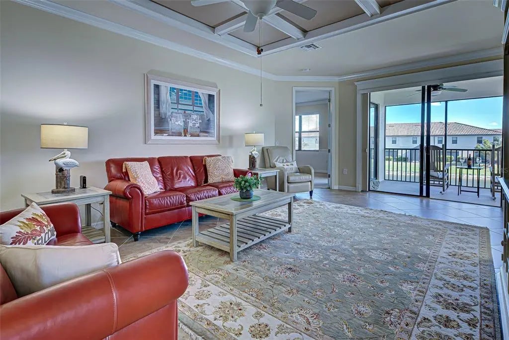 MOTIVATED SELLER / FULLY FURNISHED / FOURTH QUARTER HOA DUES PAID BY SELLER - Luxury condominium with water view located in the gated, amenity-rich community of GRAN PARADISO less than one mile from DOWNTOWN WELLEN PARK. OPEN FLOOR PLAN consists of a large living and dining area open to the kitchen, and expansive lanai with a water view. The spacious primary suite features double, oversized WALK-IN CLOSETS, ensuite with dual sinks, walk in shower, garden style soaking tub and water closet. The SPLIT FLOOR PLAN separates the 2nd and 3rd bedrooms, bath, and laundry. The kitchen is well equipped and boasts of stainless-steel appliances, stainless steel sink, solid wood 42” upper cabinets, brushed nickel hardware, breakfast bar and breakfast nook. Coffered ceiling, decorative molding, tile floors set on the diagonal, separate laundry room, IMPACT RATED WINDOWS throughout (no need for shutters!) and IMPACT RATED GARAGE DOOR are just some of the many upgrades that add ambiance and function to the home. The THREE-CAR TANDEM GARAGE also has ample space for golf cart, workshop or hobby area! ADDITIONAL STORAGE located under stairway as well as attic. RECENT UPDATES and maintenance include - Roof Inspection with added insulation (2023), Roof Cleaned (2023), New Landscaping (2024), Lanai Painted (Jan 2024). Gran Paradiso offers a resort pool with zero entry, fitness center, walking trails, billiard / poker game room, library, grand Tuscan inspired clubhouse with spa, sauna, steam room, tennis courts, pickleball, playground and function rooms. Clubs and organizations abound and can be accessed through the full-time activities’ director. The quarterly dues include cable and internet, landscaping maintenance, irrigation and landscape pest control, and exterior building maintenance. Annual CDD is included in taxes. Gran Paradiso is located in the West Villages District of Wellen Park and is less than a short one-mile walk, bike ride or golf cart ride to the new Downtown Wellen Park with unique shops, fine restaurants, Sunday Farmer’s Market, Friday night live entertainment on the green and more! To be sold FULLY FURNISHED / TURNKEY