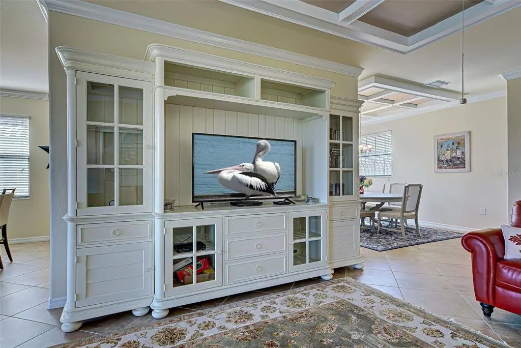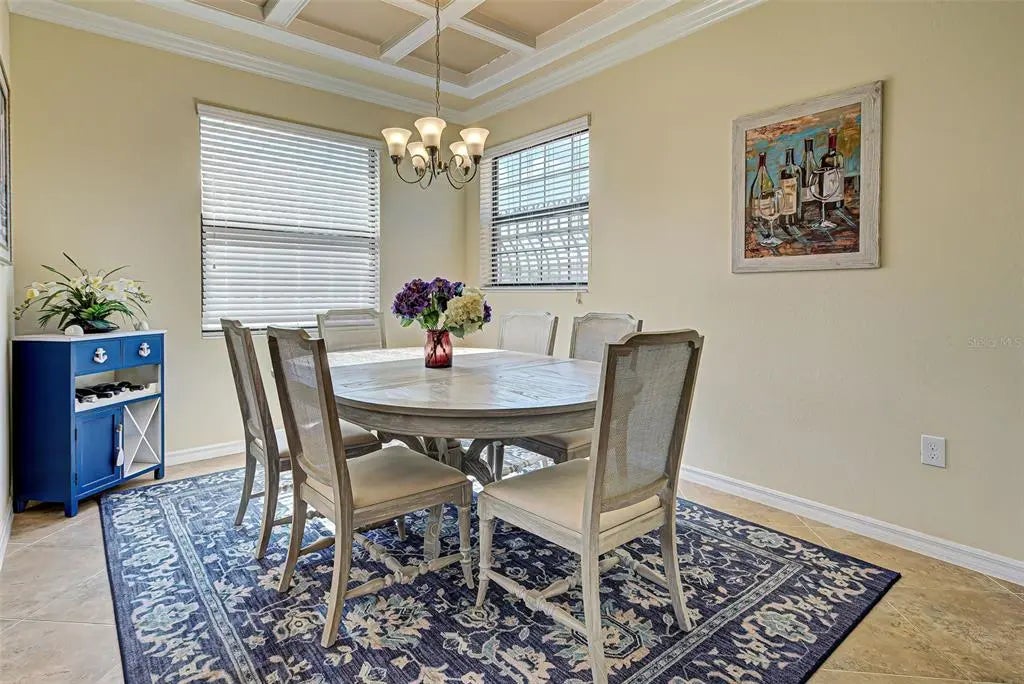 - Interior FeaturesCeiling Fan(s), Coffered Ceiling(s), Crown Molding, Eating Space In Kitchen, High Ceilings, In Wall Pest System, Open Floorplan, Pest Guard System, Solid Surface Counters, Split Bedroom, Walk-In Closet(s), Window Treatments