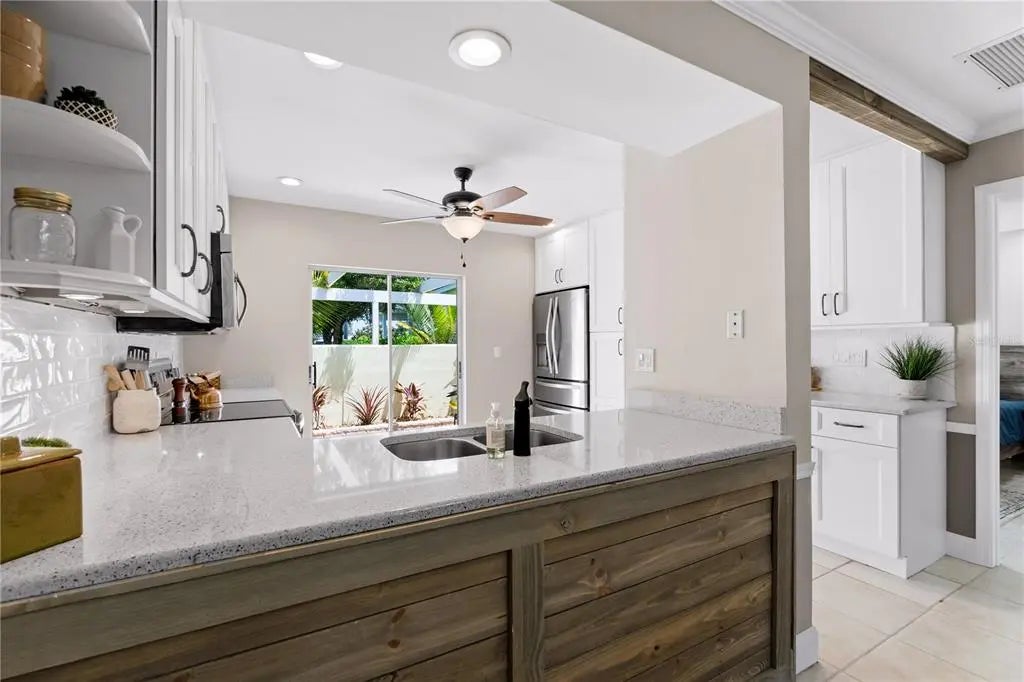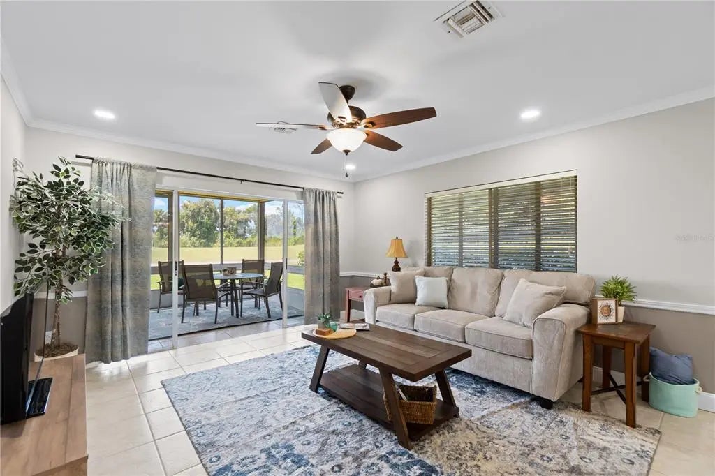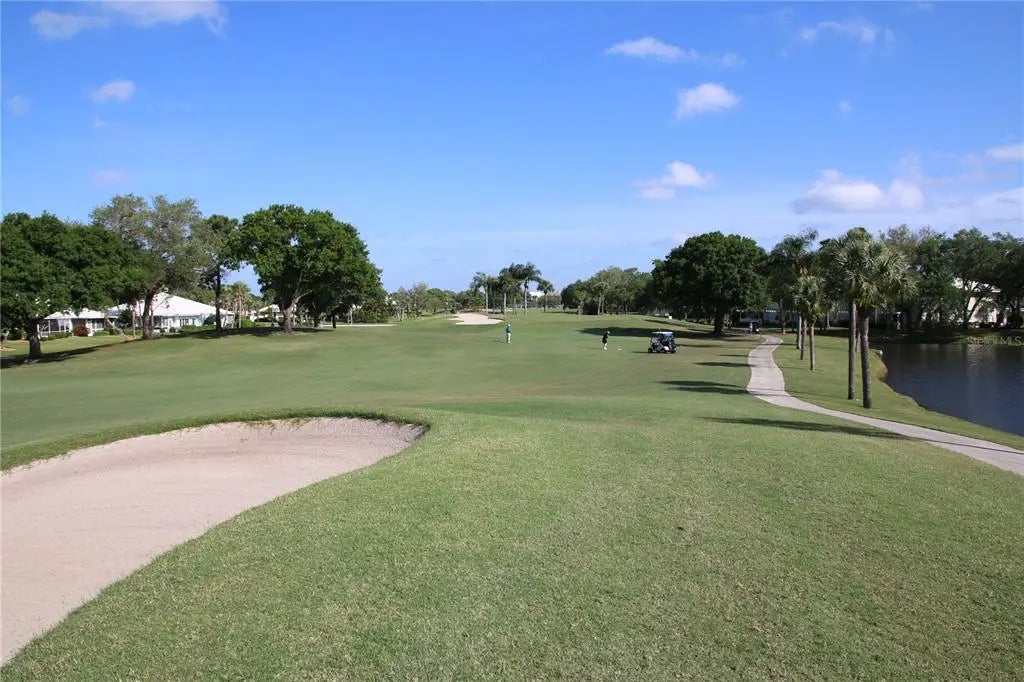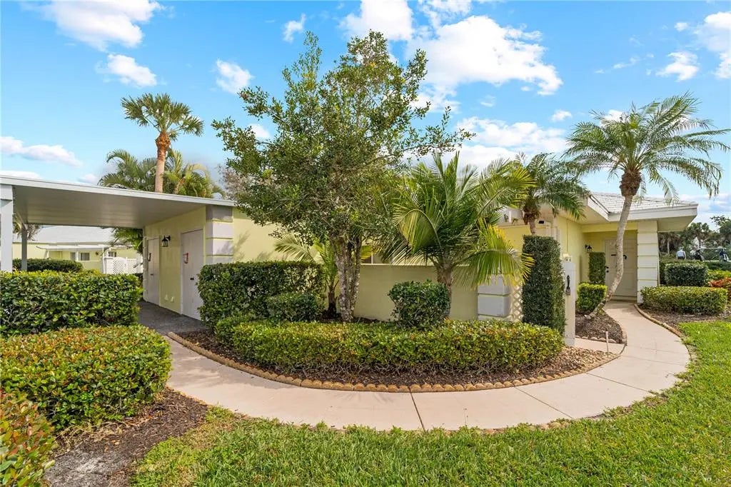 Great price on this Renovated Augusta Villa! Perfectly located just 5 minutes from Wellan Park at the end of the cul-de-sac over looking the golf course. Lots of new, new roof and carport, newer kitchen with all Whirlpool Stainless Steel appliances, cabinets including a pantry cabinet with pull out shelves. Quartz counters and new tile backsplash. The kitchen and master bedroom have sliders that open to a wonderful courtyard perfect for morning coffee, grilling in the evenings or just hanging out with friends. All new plumbing features and water heater. New master shower, new vanity's in both bathrooms, and new light fixtures. Master bathroom has new stylish barn door. New recessed lighting in the living and bedrooms. Crown molding, chair rail and new paint throughout. Florida room with wood ceiling and new fans throughout. Easy to show and move right in as the partial furnishings are included.
