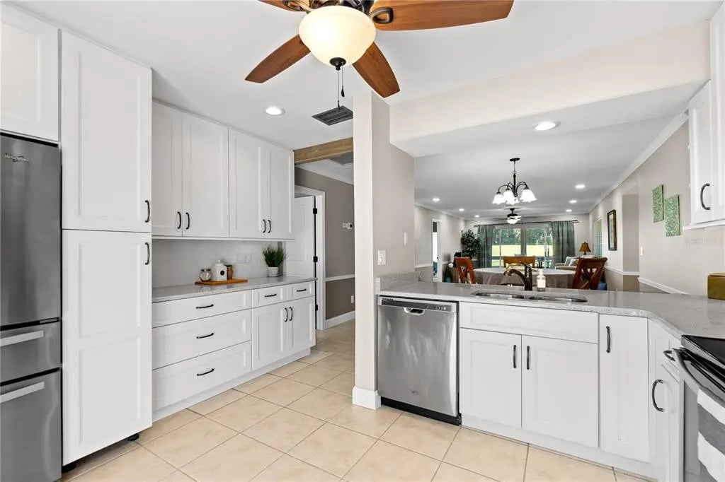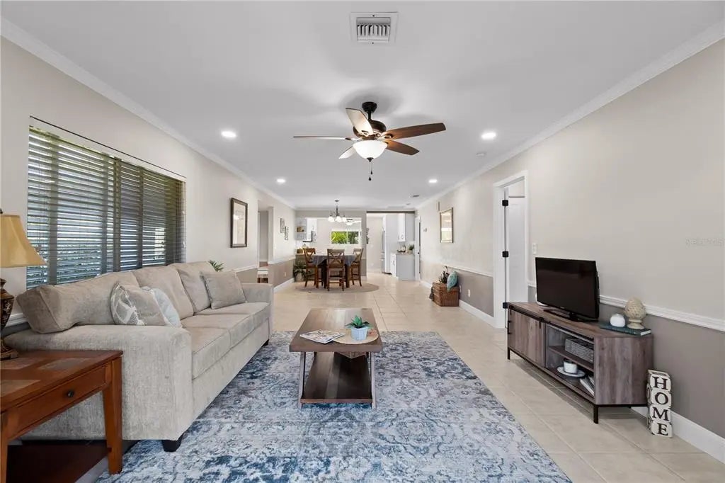 - Interior FeaturesCeiling Fan(s), Crown Molding, Living Room/Dining Room Combo, Open Floorplan, Solid Surface Counters, Walk-In Closet(s)