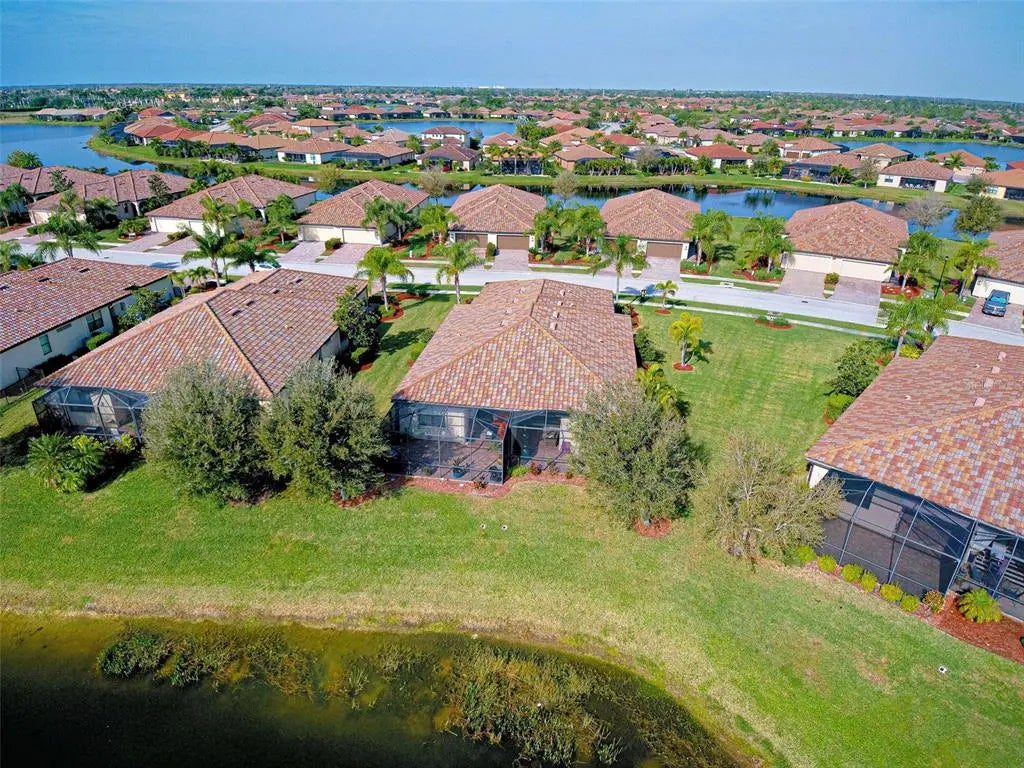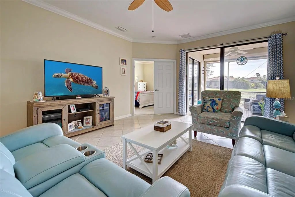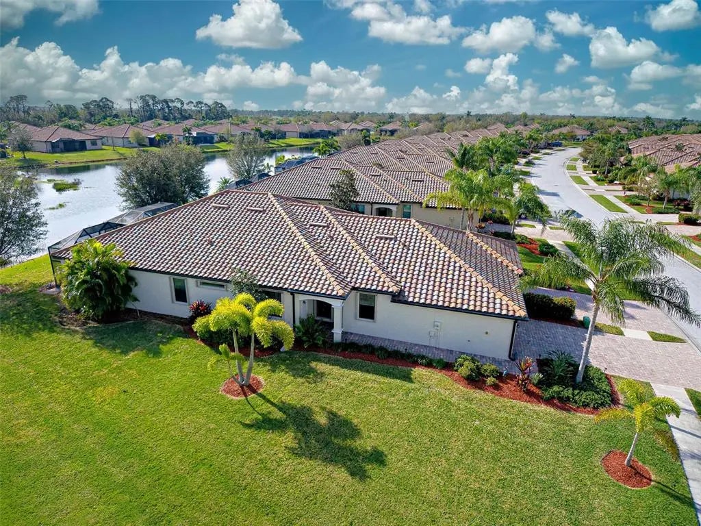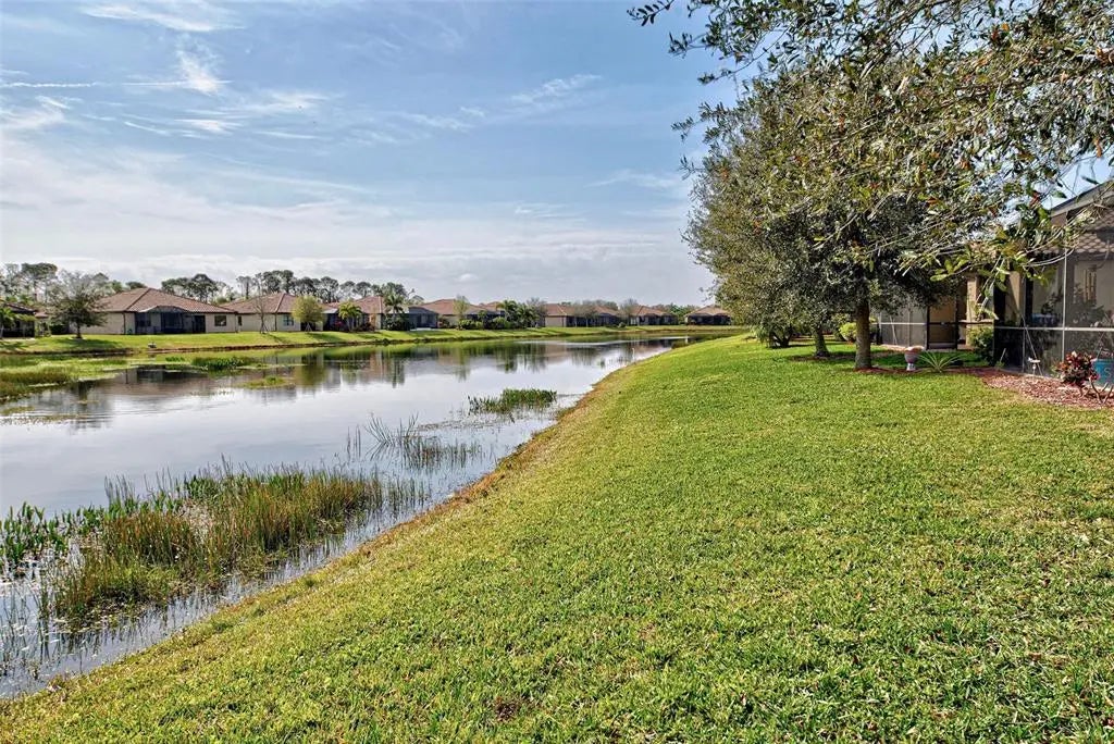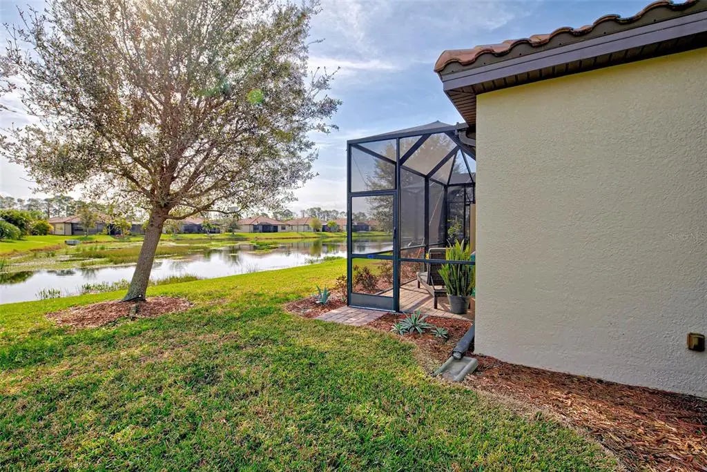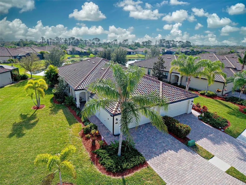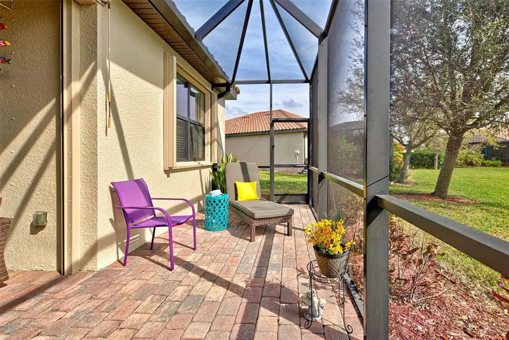 Check out the beautiful pond view and experience the ultimate in Florida living from the comfort of this exquisite villa within the maintenance-free resort community of Gran Paradiso. Embrace the Orchid model's thoughtful SPLIT FLOOR PLAN design, TWO BEDROOMS AND A DEN with French doors, two baths and 2 CAR GARAGE. Check out the Updated two-car garage that has a StorPro OVERHEAD STORAGE SHELF and a NewAge GARAGE STORAGE CABINET/WORK BENCH with TWO ROLLOUT TOOL BOXES. This home has beautiful finishes such as crown moldings, granite countertops, and diagonally tiled floors, complemented by stainless steel appliances in the kitchen. A new water heater was installed in 2023. NO WORRIES putting up HURRICANE SHUTTERS this villa is equipped with a ROLL DOWN SHUTTER ON the LANAI and ACCORDIAN SHUTTERS ON EACH WINDOW. Situated on one of the FEW OVERSIZED LOTS in Gran Paradiso, this villa offers ample green space and extra space between the villas. Indulge in the resort-like array of amenities, including community activities, a rejuvenating pool, saunas, steam rooms, gym and workout facilities, PICKLE BALL and tennis courts to name a few. Or simply unwind while admiring the pond and the beautiful array of birds from your lanai. Located close to Beaches, shopping, the Braves Winter Training facility and lots of great dining Choices! Call today for your private showing and elevate your living experience in Gran Paradiso's premier community.