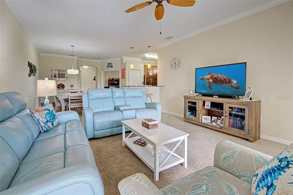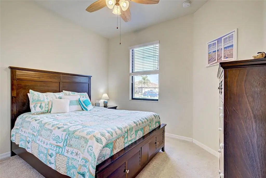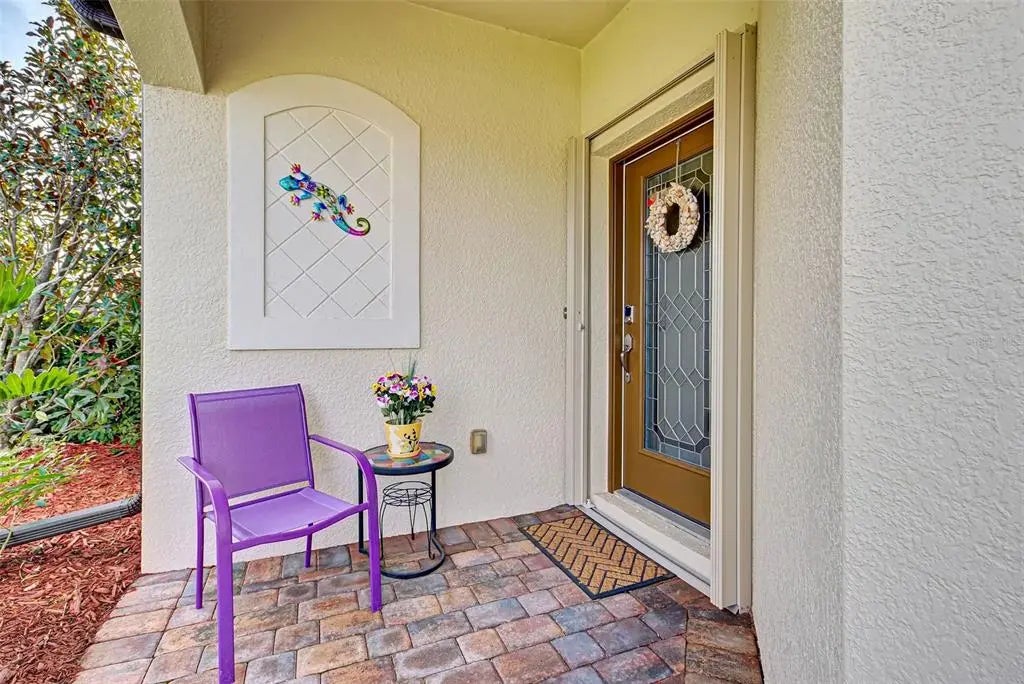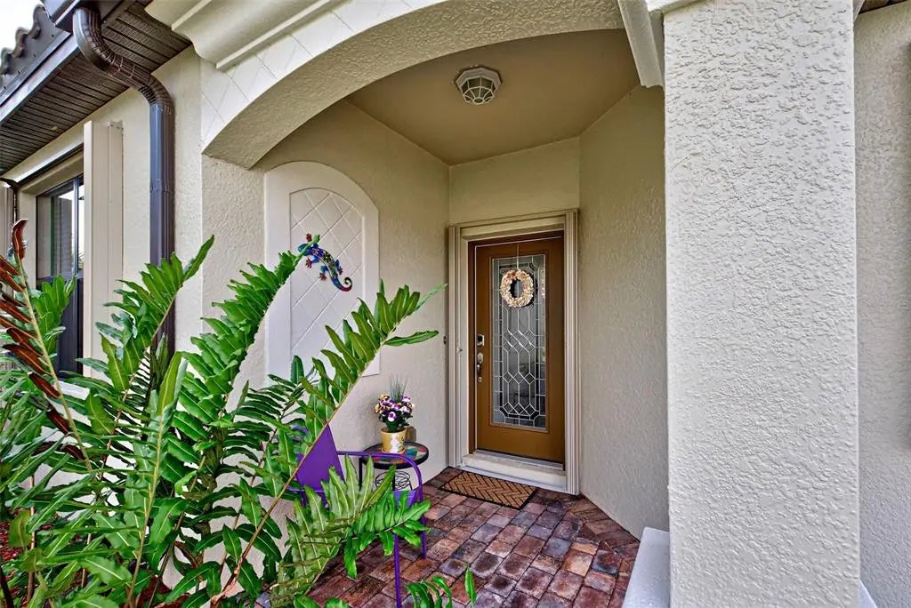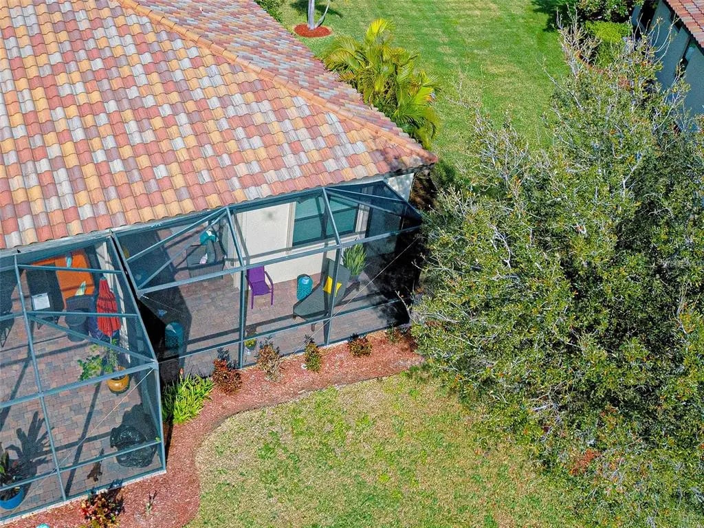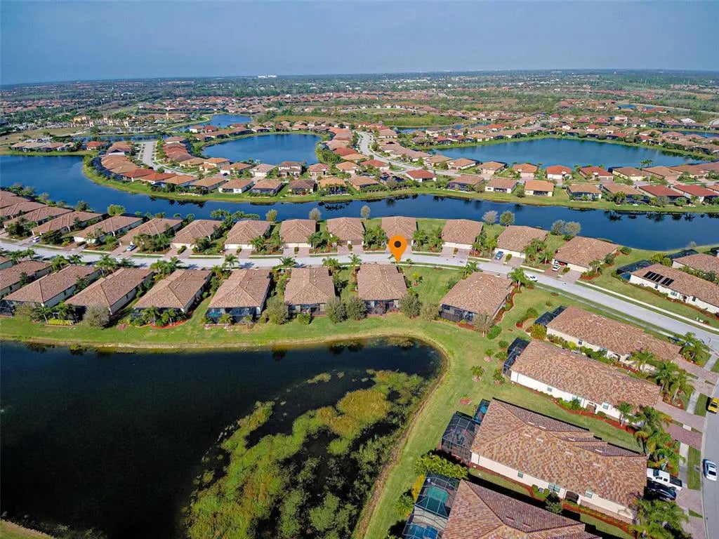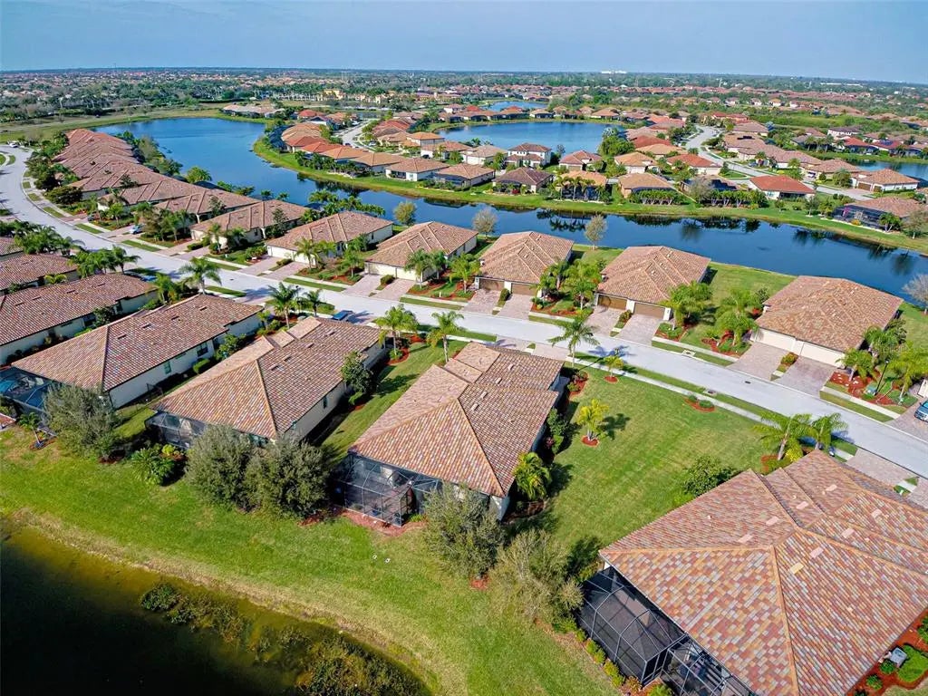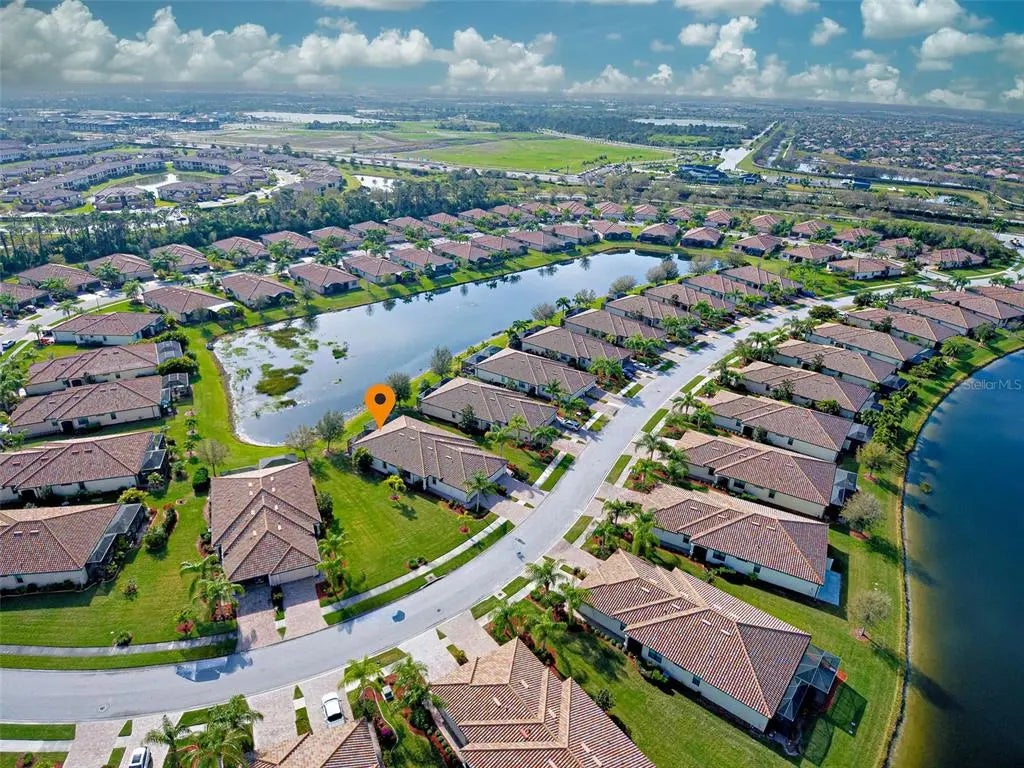 Check out the beautiful pond view and experience the ultimate in Florida living from the comfort of this exquisite villa within the maintenance-free resort community of Gran Paradiso. Embrace the Orchid model's thoughtful SPLIT FLOOR PLAN design, TWO BEDROOMS AND A DEN with French doors, two baths and 2 CAR GARAGE. Check out the Updated two-car garage that has a StorPro OVERHEAD STORAGE SHELF and a NewAge GARAGE STORAGE CABINET/WORK BENCH with TWO ROLLOUT TOOL BOXES. This home has beautiful finishes such as crown moldings, granite countertops, and diagonally tiled floors, complemented by stainless steel appliances in the kitchen. A new water heater was installed in 2023. NO WORRIES putting up HURRICANE SHUTTERS this villa is equipped with a ROLL DOWN SHUTTER ON the LANAI and ACCORDIAN SHUTTERS ON EACH WINDOW. Situated on one of the FEW OVERSIZED LOTS in Gran Paradiso, this villa offers ample green space and extra space between the villas. Indulge in the resort-like array of amenities, including community activities, a rejuvenating pool, saunas, steam rooms, gym and workout facilities, PICKLE BALL and tennis courts to name a few. Or simply unwind while admiring the pond and the beautiful array of birds from your lanai. Located close to Beaches, shopping, the Braves Winter Training facility and lots of great dining Choices! Call today for your private showing and elevate your living experience in Gran Paradiso's premier community.