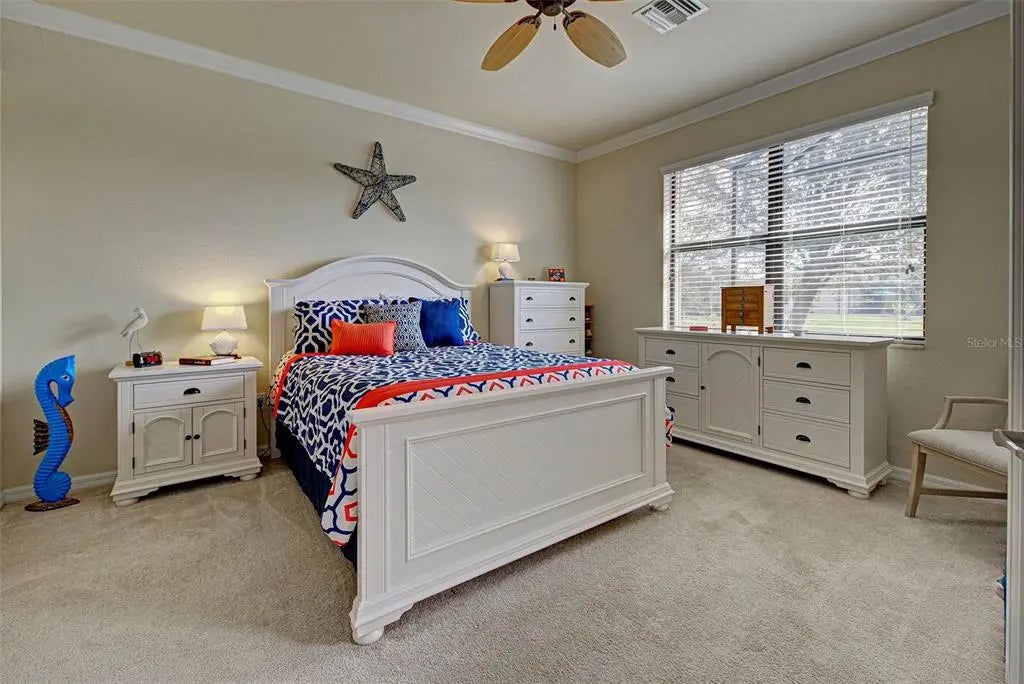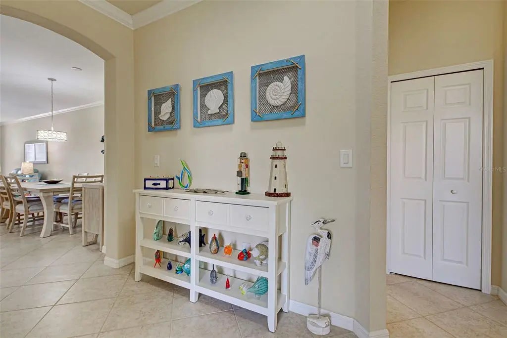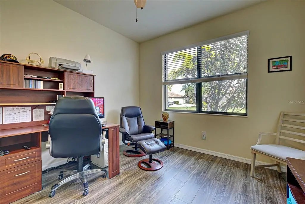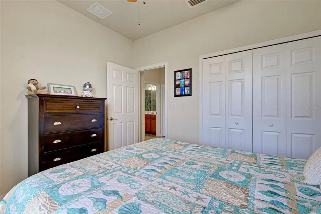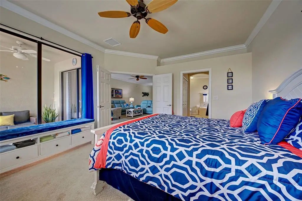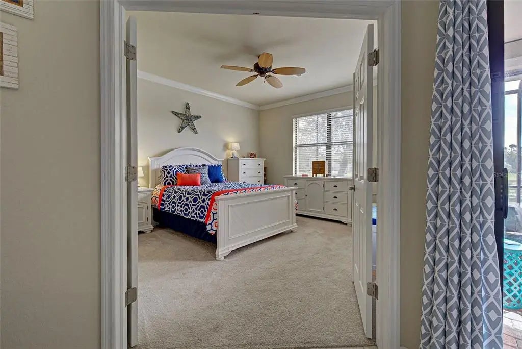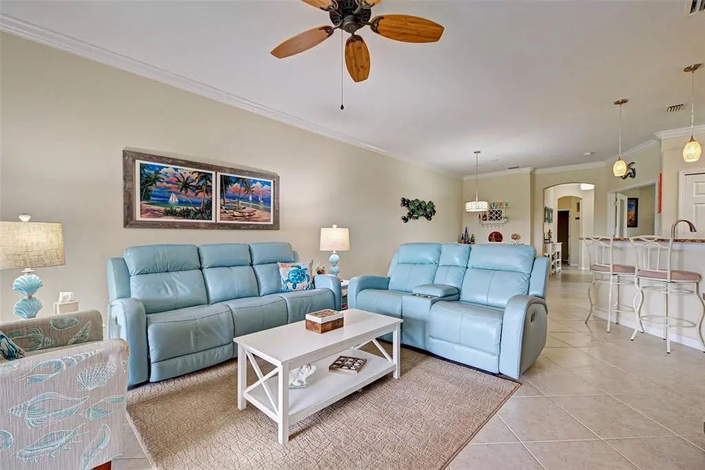 Check out the beautiful pond view and experience the ultimate in Florida living from the comfort of this exquisite villa within the maintenance-free resort community of Gran Paradiso. Embrace the Orchid model's thoughtful SPLIT FLOOR PLAN design, TWO BEDROOMS AND A DEN with French doors, two baths and 2 CAR GARAGE. Check out the Updated two-car garage that has a StorPro OVERHEAD STORAGE SHELF and a NewAge GARAGE STORAGE CABINET/WORK BENCH with TWO ROLLOUT TOOL BOXES. This home has beautiful finishes such as crown moldings, granite countertops, and diagonally tiled floors, complemented by stainless steel appliances in the kitchen. A new water heater was installed in 2023. NO WORRIES putting up HURRICANE SHUTTERS this villa is equipped with a ROLL DOWN SHUTTER ON the LANAI and ACCORDIAN SHUTTERS ON EACH WINDOW. Situated on one of the FEW OVERSIZED LOTS in Gran Paradiso, this villa offers ample green space and extra space between the villas. Indulge in the resort-like array of amenities, including community activities, a rejuvenating pool, saunas, steam rooms, gym and workout facilities, PICKLE BALL and tennis courts to name a few. Or simply unwind while admiring the pond and the beautiful array of birds from your lanai. Located close to Beaches, shopping, the Braves Winter Training facility and lots of great dining Choices! Call today for your private showing and elevate your living experience in Gran Paradiso's premier community.