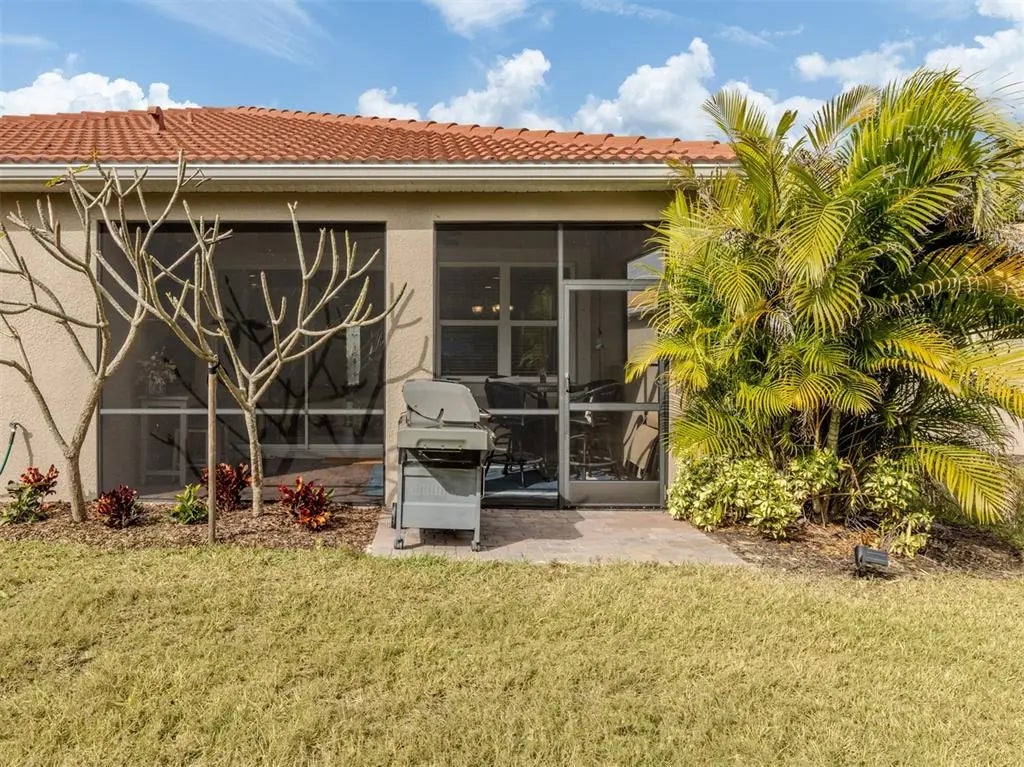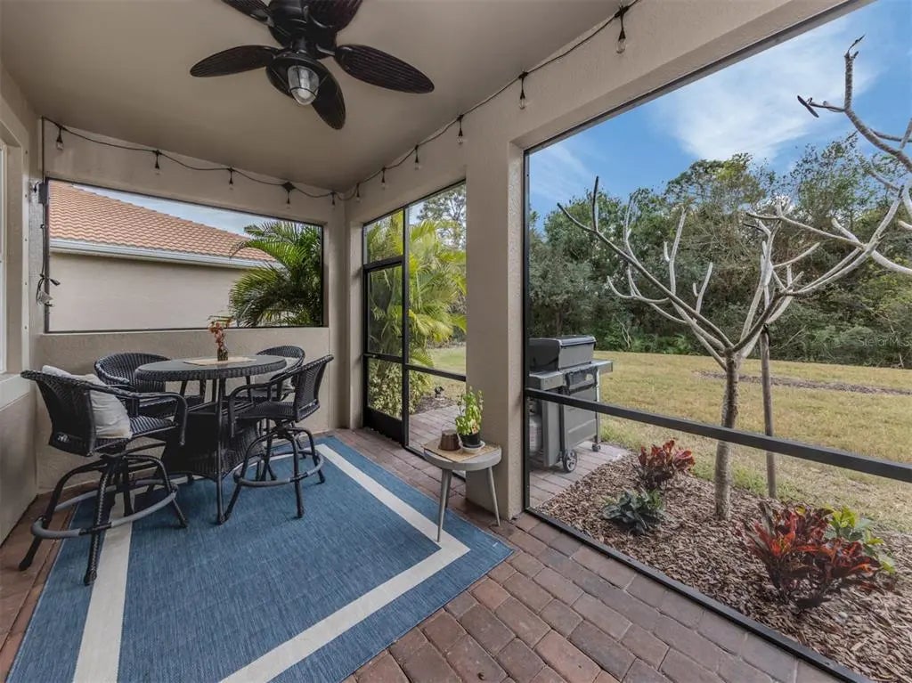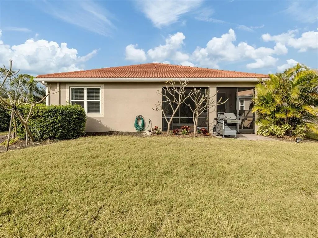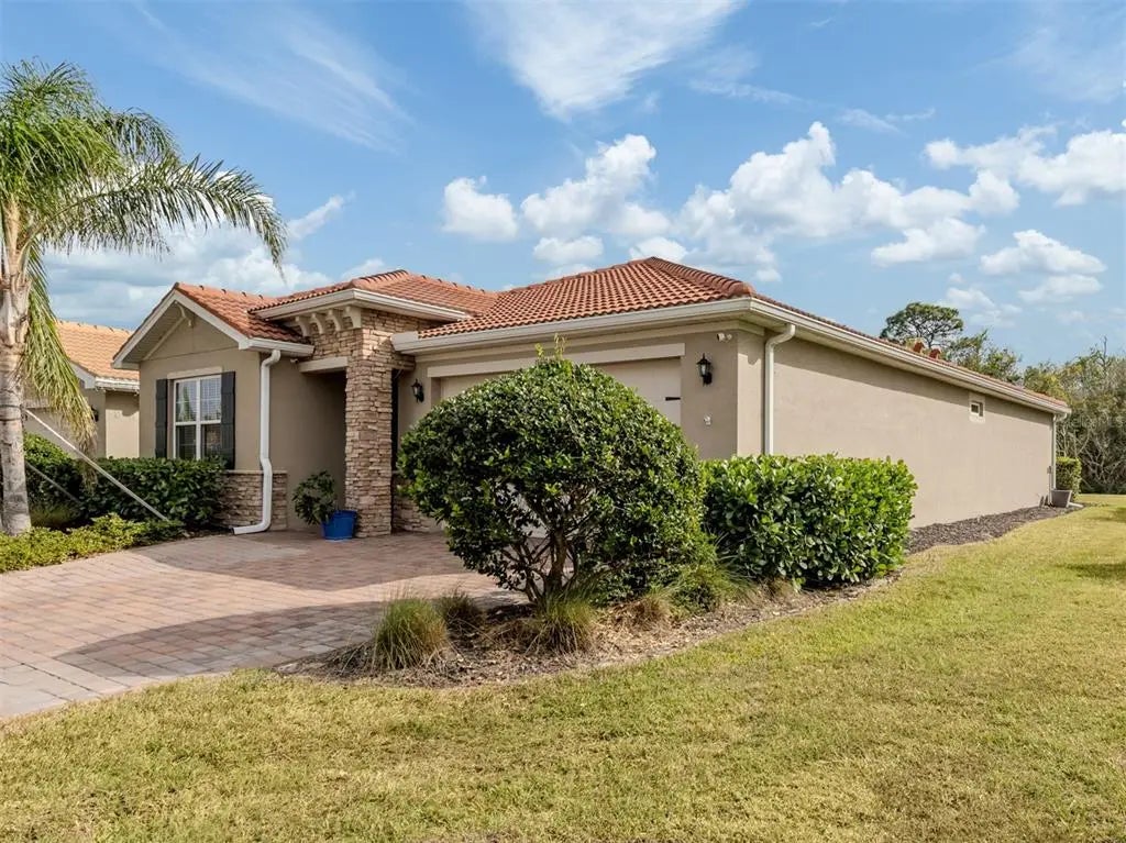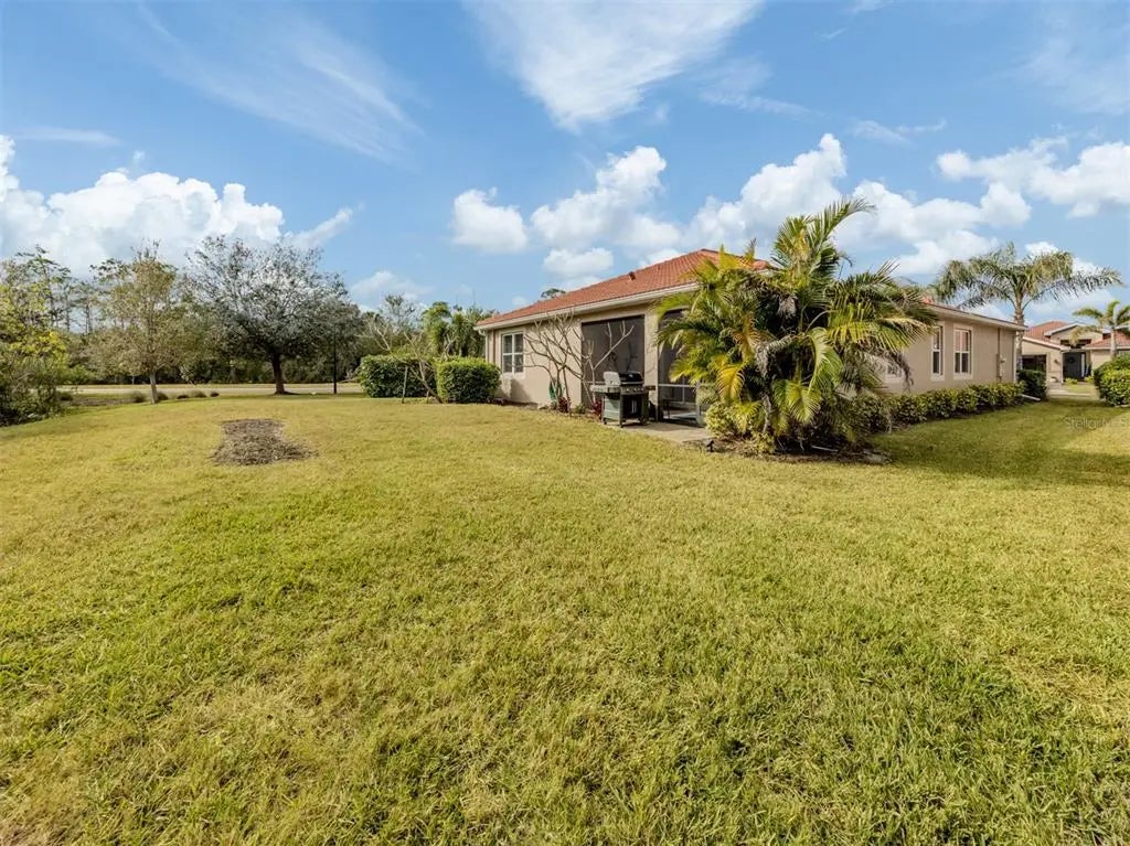 This meticulously cared-for 2 bedroom (with potential 3rd bedroom/den option) D.R. Horton home is an exceptional blend of modern luxury and thoughtful functionality. Built in 2018, this Clifton model sits on a corner lot behind the gates of quiet Caribbean Village. Natural light pours into the entire residence through both the glass front door and glass sliders with southwestern exposure that adorn the back. Ceramic tile flooring is present throughout, including all bedrooms. The split-bedroom layout is ideal for utmost privacy, everyday living and grand entertaining, with an open flow between the great room and chef-inspired kitchen. The kitchen features granite countertops, an expansive kitchen island, under-cabinet lighting, custom backsplash and a walk-in pantry with custom built-in shelves. In addition, the owner has installed custom shelves in every closet throughout the home, including both primary bedroom walk-in closets, second bedroom closet and hallway linen closet. The bonus room offers an added level of versatility, equipped with French doors and enough space to convert into an office, third bedroom, or "man/she" cave. The screened-in lanai exhibits an outdoor sanctuary, with views of the lush Florida landscape, unobstructed by other homes in the community. The new owner of this home will enjoy a large two-car garage with refrigerator, and an extended brick driveway. Caribbean Village is a maintenance-free and gated community with no CDD fee and located in an X Flood zone. Enjoy the community's beautiful heated pool, fitness center, bocce ball courts, and miles of walking trails that border gorgeous lakes. Located just off River Road and Venice Avenue, Caribbean Village offers proximity to both downtown Venice and beaches, as well as I-75. Don't wait for the market to "change", be the change, make an offer today!