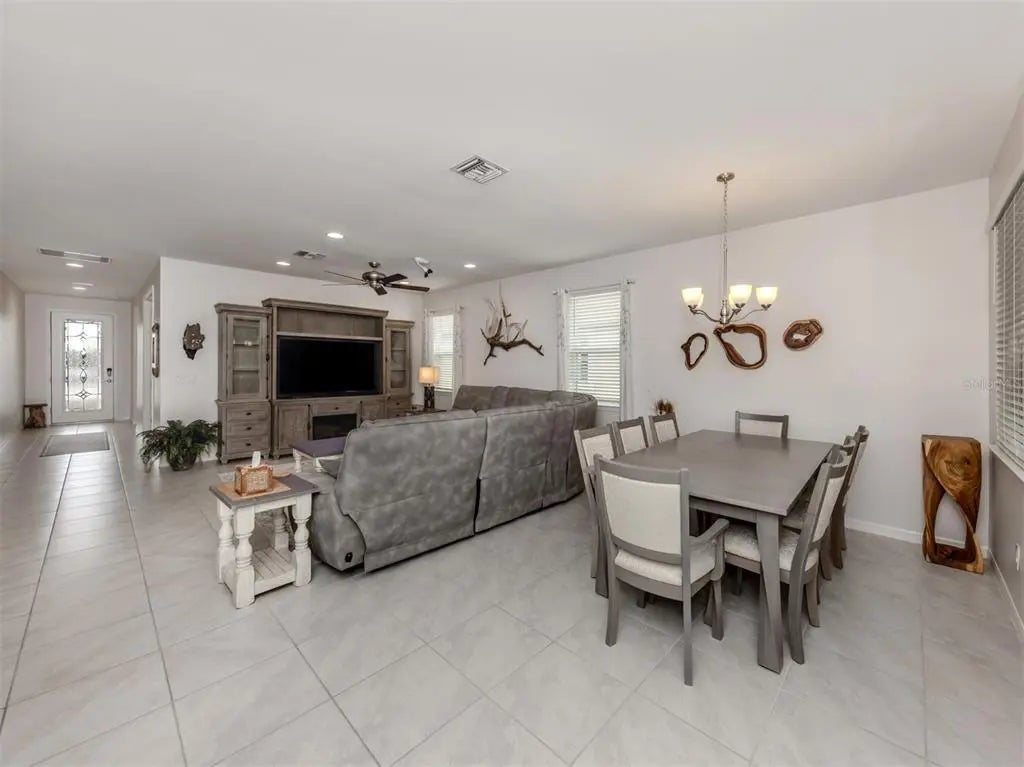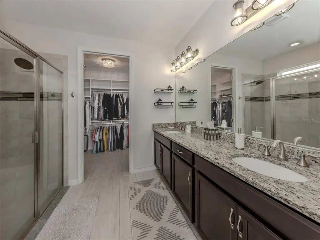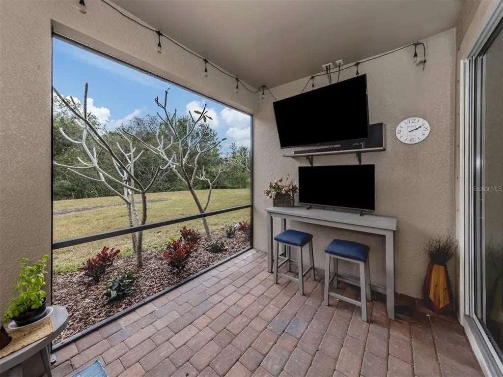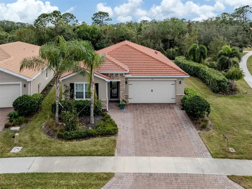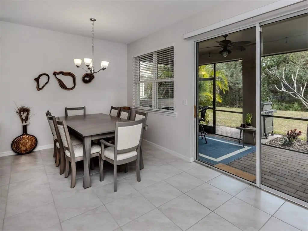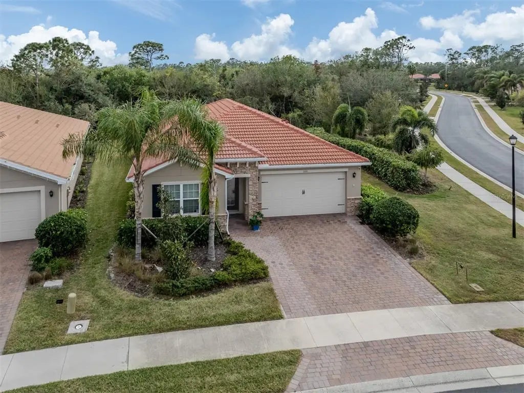 This meticulously cared-for 2 bedroom (with potential 3rd bedroom/den option) D.R. Horton home is an exceptional blend of modern luxury and thoughtful functionality. Built in 2018, this Clifton model sits on a corner lot behind the gates of quiet Caribbean Village. Natural light pours into the entire residence through both the glass front door and glass sliders with southwestern exposure that adorn the back. Ceramic tile flooring is present throughout, including all bedrooms. The split-bedroom layout is ideal for utmost privacy, everyday living and grand entertaining, with an open flow between the great room and chef-inspired kitchen. The kitchen features granite countertops, an expansive kitchen island, under-cabinet lighting, custom backsplash and a walk-in pantry with custom built-in shelves. In addition, the owner has installed custom shelves in every closet throughout the home, including both primary bedroom walk-in closets, second bedroom closet and hallway linen closet. The bonus room offers an added level of versatility, equipped with French doors and enough space to convert into an office, third bedroom, or "man/she" cave. The screened-in lanai exhibits an outdoor sanctuary, with views of the lush Florida landscape, unobstructed by other homes in the community. The new owner of this home will enjoy a large two-car garage with refrigerator, and an extended brick driveway. Caribbean Village is a maintenance-free and gated community with no CDD fee and located in an X Flood zone. Enjoy the community's beautiful heated pool, fitness center, bocce ball courts, and miles of walking trails that border gorgeous lakes. Located just off River Road and Venice Avenue, Caribbean Village offers proximity to both downtown Venice and beaches, as well as I-75. Don't wait for the market to "change", be the change, make an offer today!