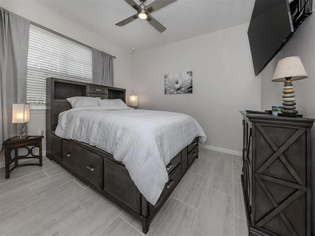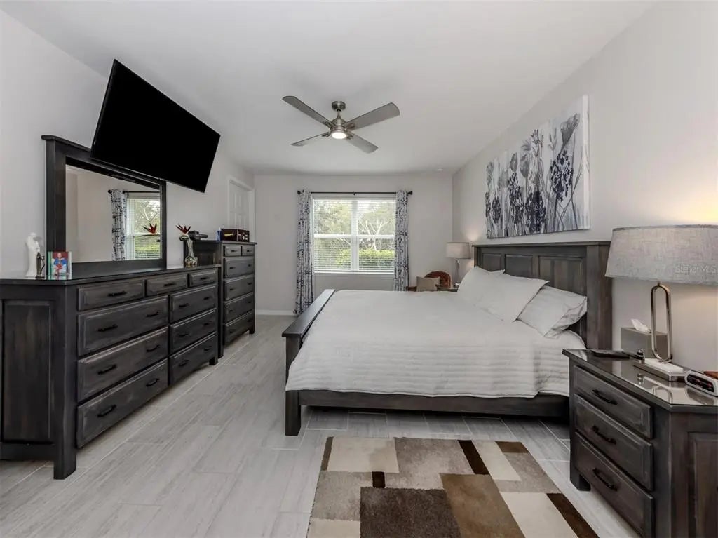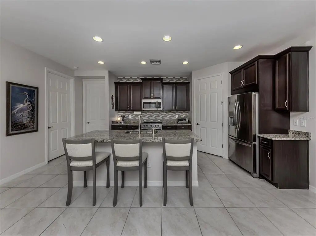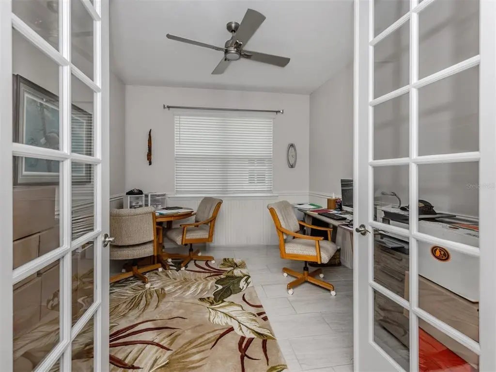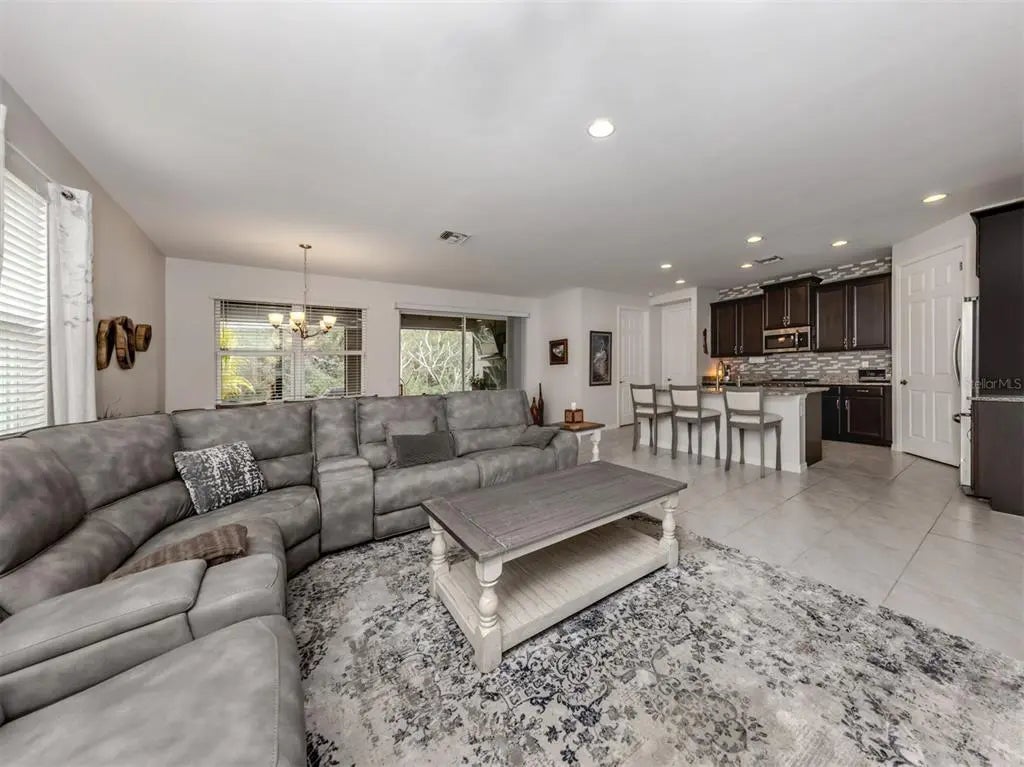 This meticulously cared-for 2 bedroom (with potential 3rd bedroom/den option) D.R. Horton home is an exceptional blend of modern luxury and thoughtful functionality. Built in 2018, this Clifton model sits on a corner lot behind the gates of quiet Caribbean Village. Natural light pours into the entire residence through both the glass front door and glass sliders with southwestern exposure that adorn the back. Ceramic tile flooring is present throughout, including all bedrooms. The split-bedroom layout is ideal for utmost privacy, everyday living and grand entertaining, with an open flow between the great room and chef-inspired kitchen. The kitchen features granite countertops, an expansive kitchen island, under-cabinet lighting, custom backsplash and a walk-in pantry with custom built-in shelves. In addition, the owner has installed custom shelves in every closet throughout the home, including both primary bedroom walk-in closets, second bedroom closet and hallway linen closet. The bonus room offers an added level of versatility, equipped with French doors and enough space to convert into an office, third bedroom, or "man/she" cave. The screened-in lanai exhibits an outdoor sanctuary, with views of the lush Florida landscape, unobstructed by other homes in the community. The new owner of this home will enjoy a large two-car garage with refrigerator, and an extended brick driveway. Caribbean Village is a maintenance-free and gated community with no CDD fee and located in an X Flood zone. Enjoy the community's beautiful heated pool, fitness center, bocce ball courts, and miles of walking trails that border gorgeous lakes. Located just off River Road and Venice Avenue, Caribbean Village offers proximity to both downtown Venice and beaches, as well as I-75. Don't wait for the market to "change", be the change, make an offer today!