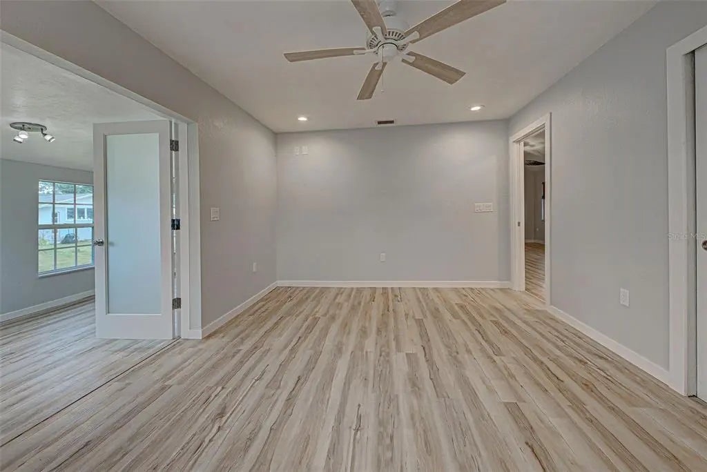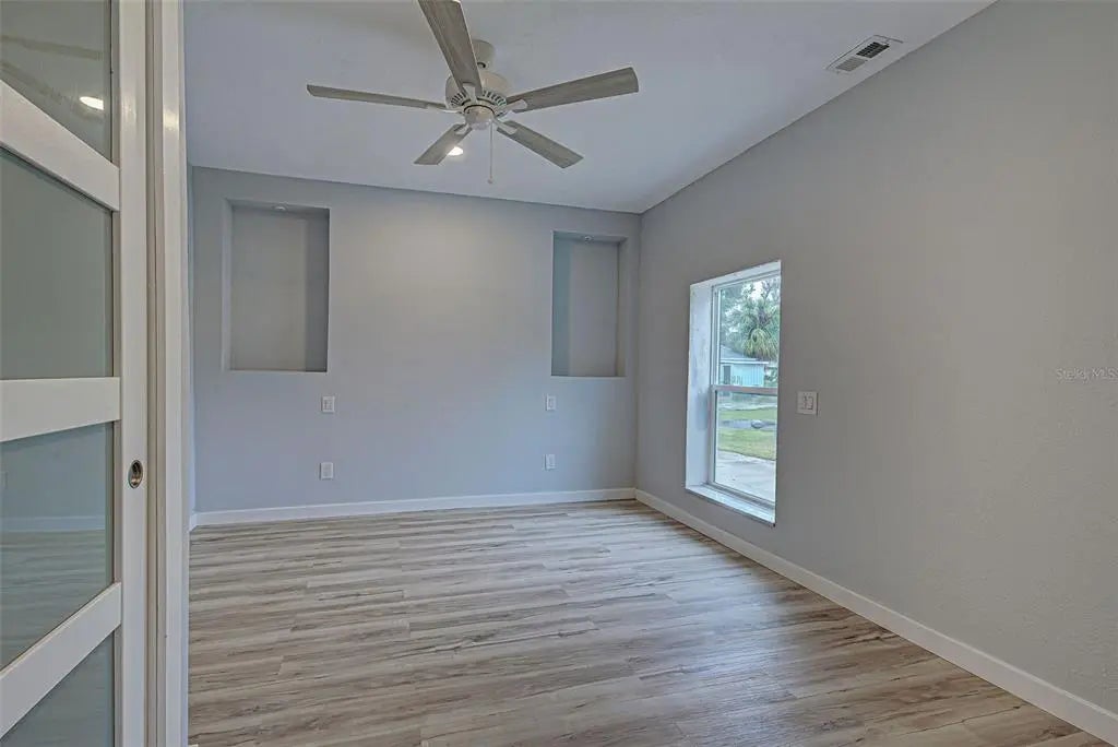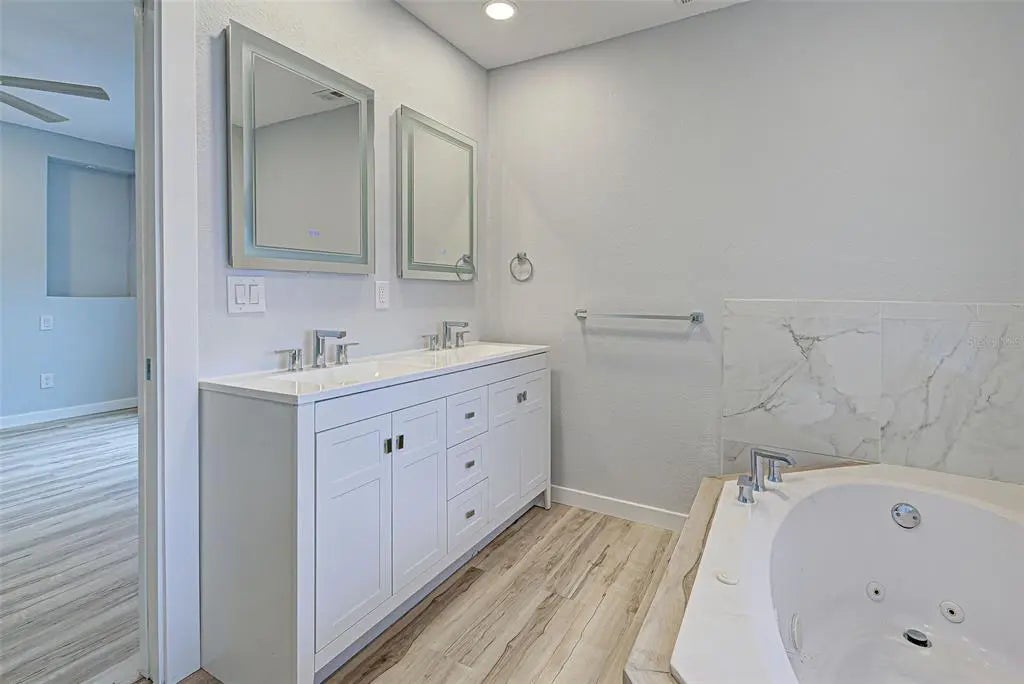 Welcome to this beautifully updated home featuring 3 bedrooms and 2 full baths. Step inside and admire the bright layout with vaulted ceilings and luxury vinyl plank flooring throughout, offering both style and durability. The split floor plan ensures privacy, with the luxurious primary suite offering French doors that lead to a serene retreat. The master bath is a spa-like oasis, complete with a jacuzzi tub, touch-activated fog-free mirrors, dual vanities, and plenty of space to unwind. The guest bathroom also has a Jacuzzi tub and a spacious layout. For peace of mind the big items have been taken care of and include an updated kitchen, the Roof was installed in 2021, Water Heater and AC installed in 2022 and an Impact-resistant front window for added safety during storms. Enjoy the Extra-large parking pad ideal for your RV or boat, with an outlet for RV hook-up. Enjoy the Florida room filled with natural light and extra space to relax. The backyard has a shed for storage and there is space to add a pool, making it ideal for creating your outdoor oasis. Don’t miss this opportunity to own a beautifully updated home in a fantastic location just 5 miles to Venice Beach and close to shopping, golf and many restaurants. Schedule your showing today and make 3187 Galiot Rd your own!