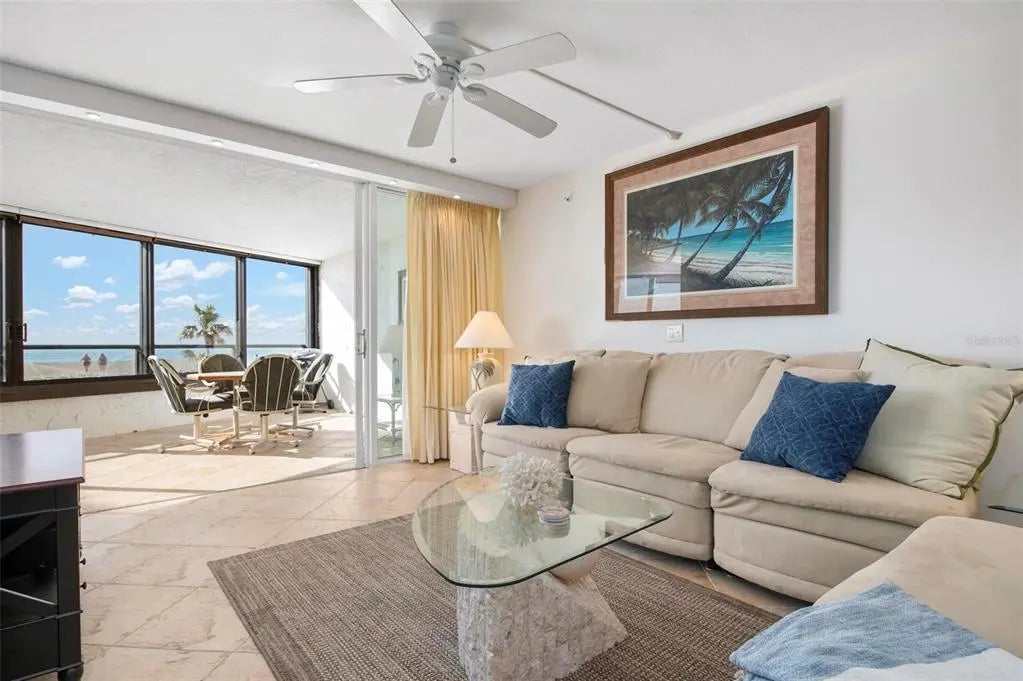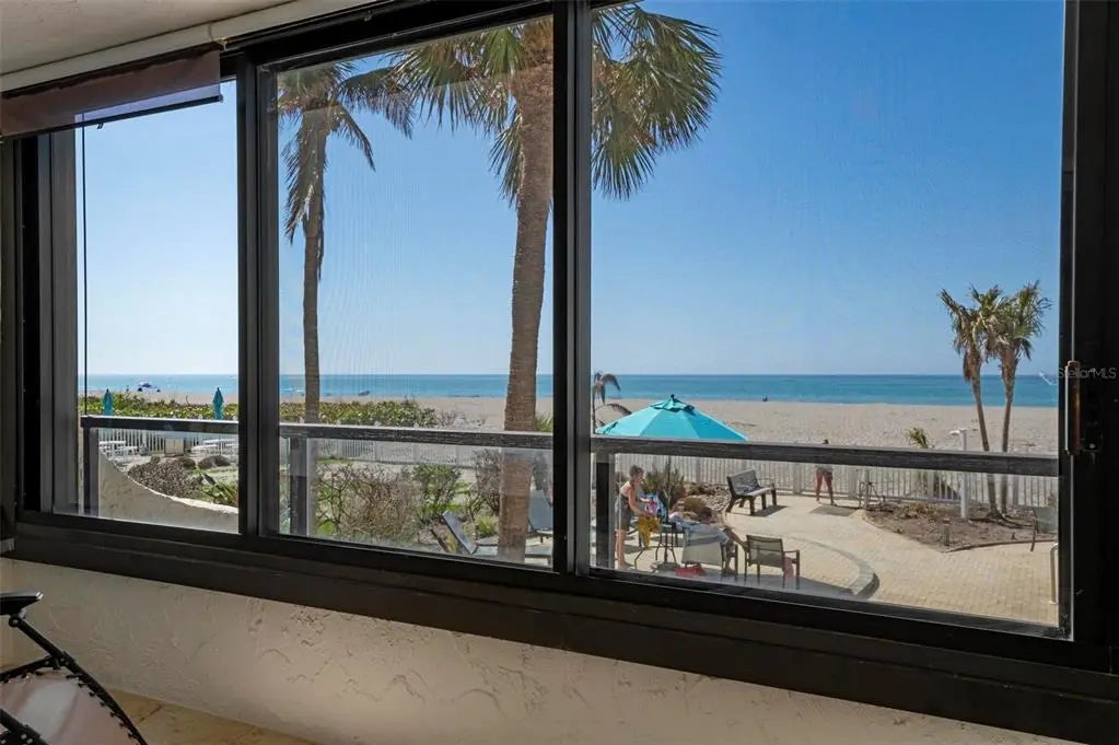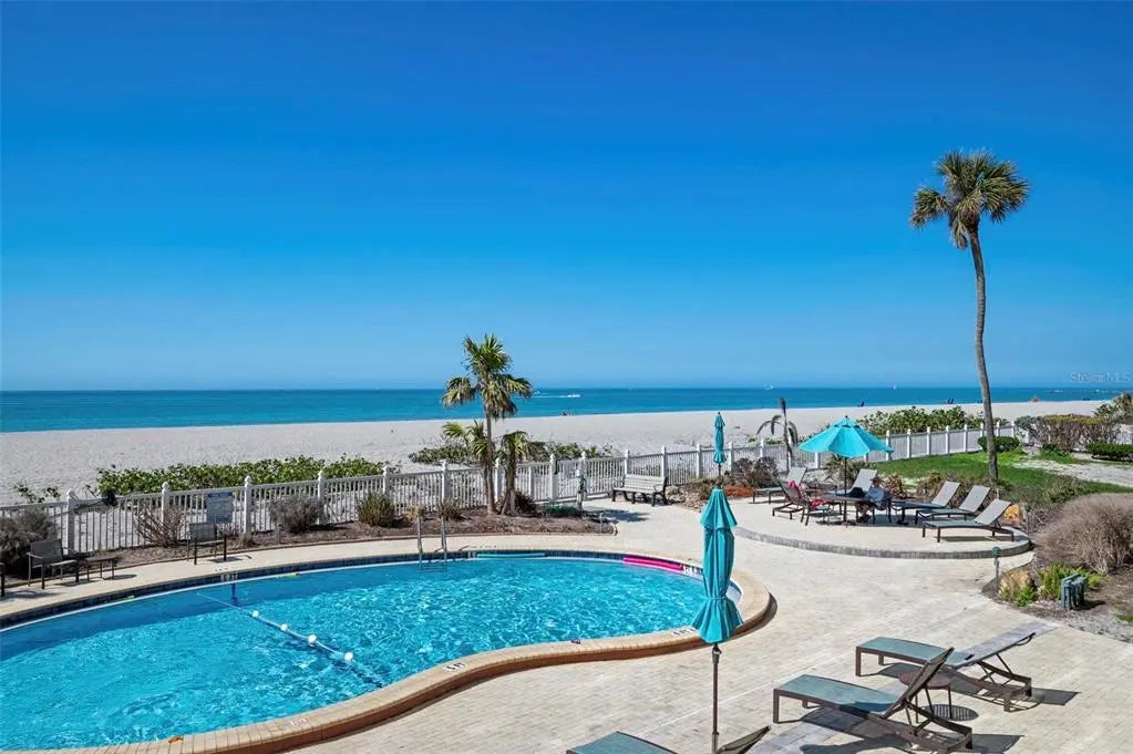 Embrace the ultimate beachside lifestyle in this fully furnished, turnkey 2-bedroom, 2-bathroom condo, offering unparalleled views of Venice Beach. Recently updated, this beautiful condo features a stately modern kitchen with Corian countertops, solid hardwood cabinets, a dry bar, desk area, sleek newer appliances and a dark stainless-steel refrigerator. Both bathrooms are beautifully appointed with the same high-end finishes, including granite counters and solid hardwood cabinetry. The entire condo is adorned with elegant travertine tile throughout—no carpet to worry about! The Sansovino has the best location on the beach, with Gulf and Intercoastal views, making it an incredibly rare find. Enjoy the open floor plan that fills with natural light and relax on your private balcony while taking in the spectacular beach views and breathtaking sunsets. With large walk-in closets, ample storage, and everything you need for a move-in ready experience, this condo offers the ultimate in convenience and luxury. The open floor plan and full lanai windows (complete with both glass and screens) and sliding glass doors allow you to enjoy the fresh ocean air, making it easy to take in the stunning ocean views from nearly every room. Whether you’re relaxing on your private balcony, enjoying the spacious living area, or taking in the sights and sounds of the beach, this home truly offers the ultimate in coastal living. You’re just minutes from historic downtown Venice with its vibrant shops and restaurants, and close to downtown Wellen Park and the new Atlanta Braves stadium. Community amenities include a private beach, heated pool, a grilling area, and a newly updated clubhouse. Don’t wait—schedule your showing today!" Live the beachside dream in this beautifully updated condo. Welcome Home!