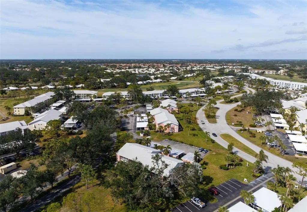 Seller wants to make a deal! Brand new Air Conditioner with transferable warranties installation is scheduled for March 20, 2025. The hot water heater was installed approximately two years ago, new metal roofs were completed in 2024. Move into this pleasant condo with southern tropical views of Farmington Vistas through the picturesque palm trees and make it your home in paradise. If sandy beaches, biking, boating, fishing, golf, tennis/pickleball, professional sports, cultural venues, concerts under the stars and socializing with friends, suits your lifestyle then you will be delighted with this sun-kissed 2 bedroom, 2 bath condo offered TURN-KEY FURNISHED. This maintenance-free condo enjoys vaulted ceilings in the main living area with rays of sunlight throughout courtesy of the southern exposure. Guests will love the privacy of the 2nd bedroom with their own private screened balcony looking out over tropical landscape. The new wind resistant metal roofs are now complete throughout the complex providing peace of mind to you and your neighbors. At days end prepare dinner at the barbeque station conveniently placed outside your building and serve dinner on the screened lanai basking in the beautiful hues of the setting sun, warm Gulf breezes and the evening serenade of Floridian wildlife while making plans for the next day. Just steps away, is the Jr Olympic sized heated pool, community clubhouse for a refreshing dip or engaging with your neighbors at your leisure. Membership at the Country Club is optional but offers 2 golf courses, tennis, pickleball, fitness, bocce ball, a monthly calendar filled with social events and delectable dining. The well established, amenity rich Plantation development is conveniently located just minutes to 3 public beaches, Downtown Venice, biking trails, Cool Today Park (home of the Braves spring training) and numberous shopping and dining locales. All you need is your clothes, toothbrush and a few groceries to start enjoying paradise.