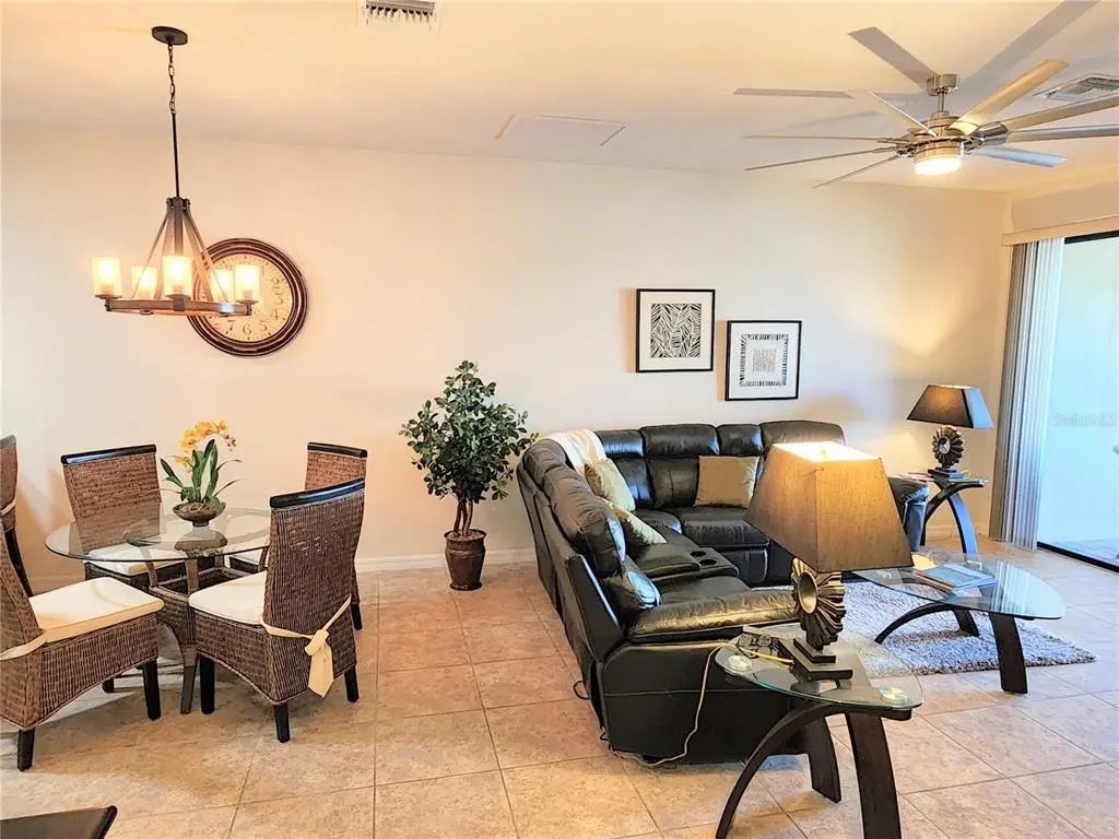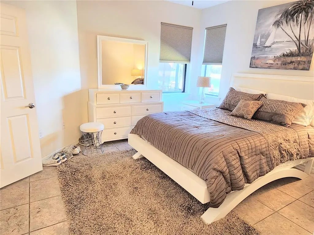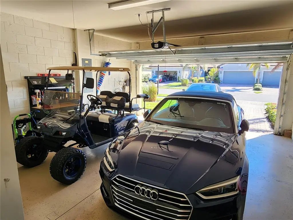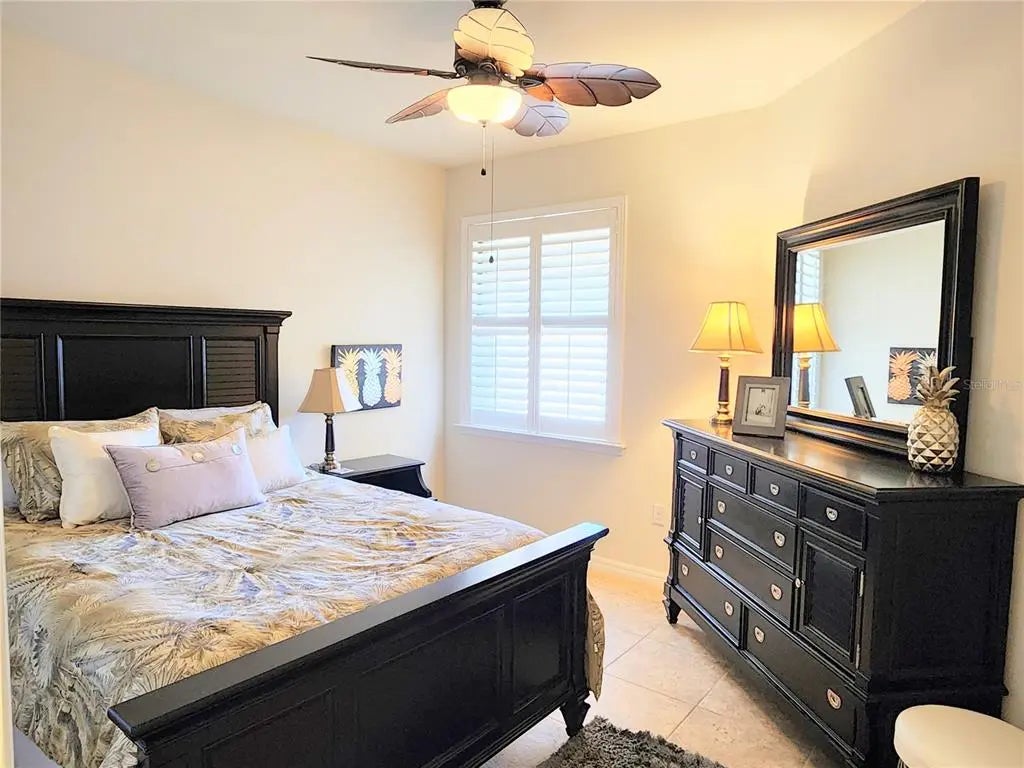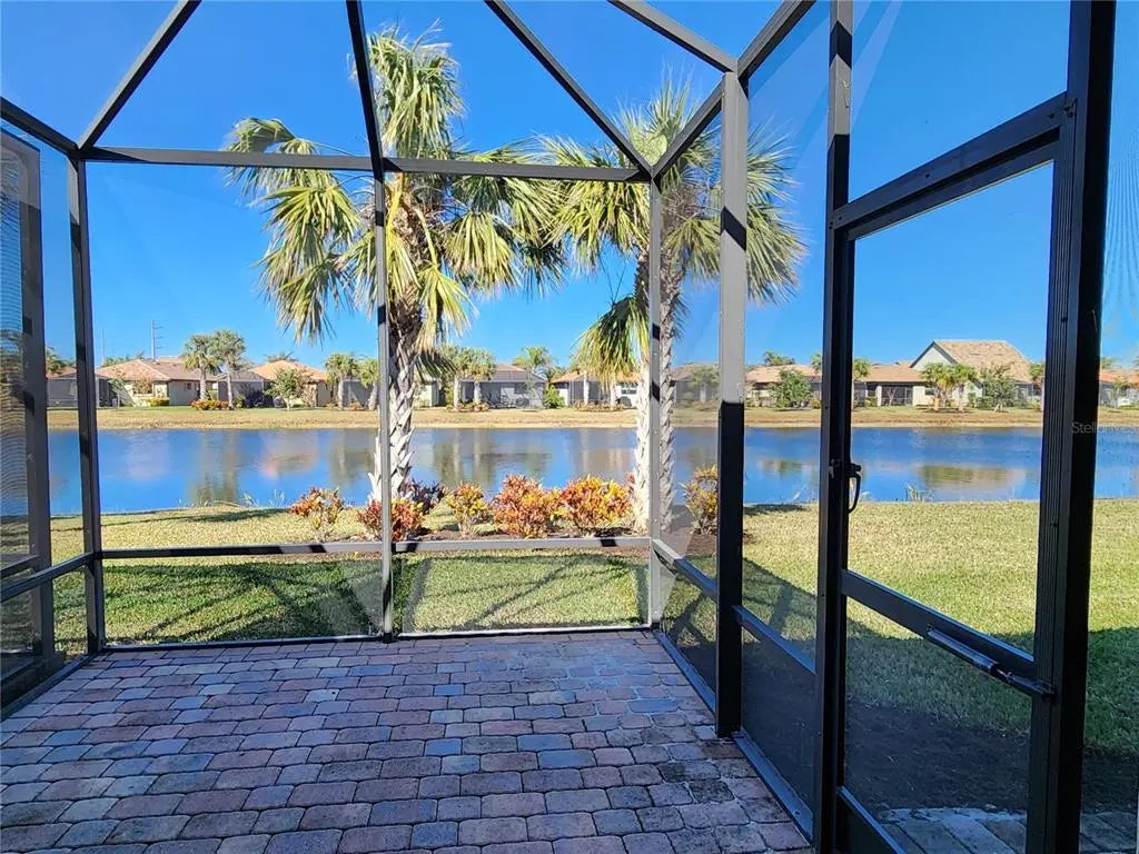 Experience a vacation lifestyle in the vibrant resort-style community of Islandwalk, packed with every amenity you could ever wish for. This stunning 2016 waterfront villa with new hot water heater and is being sold fully furnished, including wall art, a golf cart, and outdoor furnishings. The sectional sofa boasts three recliners, two of which are electric. The car is available separately. You'll appreciate several extras, such as the extended lanai overlooking the lake, a murphy bed in the flex room so you have a 3rd bedroom for guests, six-panel doors, chic ceiling fans, a laundry closet, hurricane and plantation shutters, a built-in desk in the kitchen, 42" cabinets with crown molding, a solar tube for added light, tile flooring throughout, a vanity space in the master bath, stainless steel appliances, an open floor plan, granite countertops, an epoxy-coated garage floor, pull-down attic stairs with decking for storage, a new quiet belt-driven garage door opener, a 200 amp electrical panel, and a reverse osmosis system in the kitchen for the sink and ice. Location-wise, this area of the community is conveniently close to the main gate and the clubhouse. Be sure to explore the fantastic amenities during your visit! Enjoy a lap pool along with two resort-style pools, a remarkable fitness center, twelve Pickleball courts, eight Har-Tru tennis courts, ping pong and pool tables, a library, playground, dog park, outdoor grilling area, basketball, and much more. The main gate provides access to Route 41, while the side gate leads directly into Wellen Park, where shopping, dining, and entertainment await at Tomahawk Tiki and the Atlanta Braves Stadium in Cool Today Park.