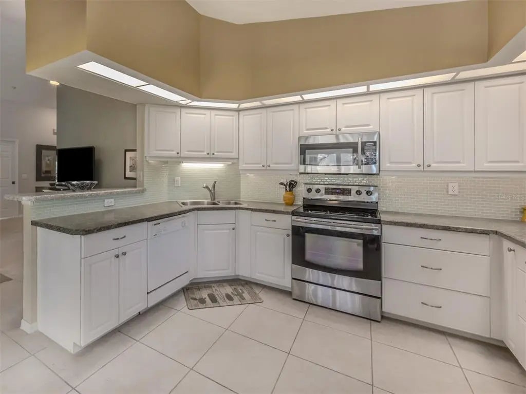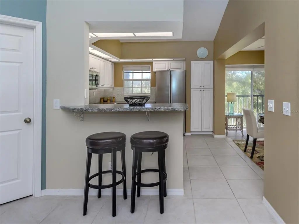This beautiful furnished 2nd floor condo is ideally located in Venice, Florida near the Gulf Coast, fifteen minutes from several Gulf Coast beaches, and historic downtown Venice. Well maintained, maintenance free home in St Andrews Park at the Plantation offers split bedrooms for maximum privacy for owners and guests, and 2 bathrooms. A gracious entry invites you into the welcoming great room. With sweeping views through the trees of the 15th hole of the Bobcat Golf Course at Plantation Golf & Country Club, it feels like your own tree house. Perfect for entertaining or just gathering with family and friends. Open updated kitchen with light cabinetry, breakfast bar, closet pantry and tile backsplash, connects with the dining area and its corner wall of windows overlooking the golf course view. Ceramic flooring throughout. Vaulted ceilings. Spacious primary suite is complete with walk-in closet, double vanities, walk-in shower, and peaceful golf course views. The accommodating guest bedroom has an adjacent bathroom with a tub/shower. Large laundry room with side by side washer and dryer, cabinetry, and a window. The unit includes a one- car carport with storage room for bikes and beach chairs. One of the 3 community pools is conveniently located across the street and the Clubhouse is nearby. Building roofs were replaced in 2019, the HVAC system in 2020, and the water heater in 2025. If you choose to join Plantation Golf and Country Club, a variety of memberships are available. You can pick from a wide selection of events and activities, including golf, pickleball, tennis, bocce,24 hour fitness center, junior Olympic pool, and a full social calendar with options for everyone. Location is perfect with Florida Gulf beaches, downtown Venice, downtown Wellen Park, and an endless array of restaurants, shopping, services, events, and recreation nearby. Here is your opportunity to experience Florida living to the fullest!