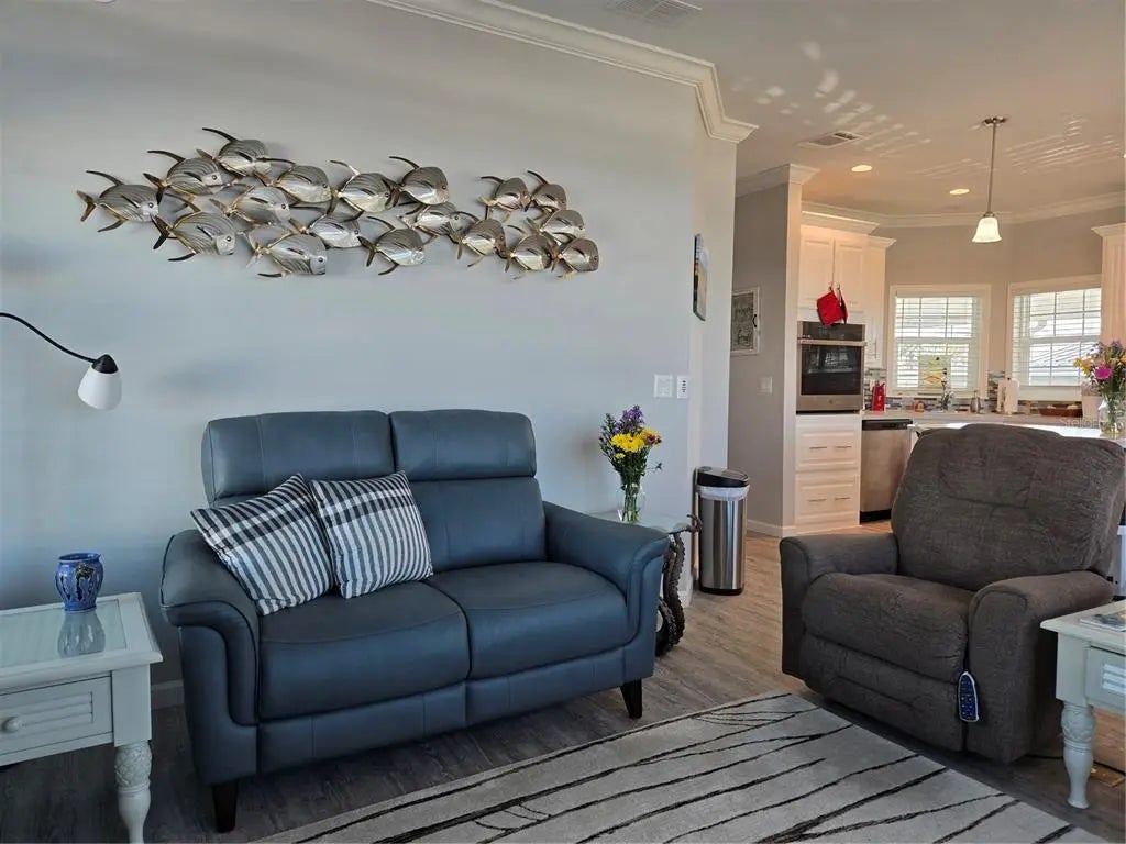 Welcome to this beautiful 2021 Jacobsen built, 2 bedroom PLUS DEN/OFFICE....manufactured home, located in the highly sought-after maintenance-free...PET FRIENDLY... community. This home combines modern design with luxurious finishes, offering both comfort and style. As you step inside, you’ll immediately notice the high-end features, including luxury vinyl flooring throughout, crown molding that adds an elegant touch, and neutral color tones that create a warm and inviting atmosphere. The home is bathed in natural light, thanks to plenty of windows that brighten up every room. The spacious kitchen is a dream, complete with upgraded cabinets, a built-in oven, stainless steel appliances, and a cooktop stove with a large island perfect for meal prep or entertaining. A beautiful wine bar adds a touch of sophistication, ideal for wine lovers or as a cozy spot for enjoying your favorite drinks. The primary suite is a true retreat with an ensuite bath featuring dual sinks and a luxurious glass shower—the perfect place to unwind after a long day. Additional highlights of this home include a den, perfect for a home office or reading nook, and a laundry room with a sink and extra cabinets for storage. The large back porch offers a relaxing outdoor space to enjoy your surroundings, while the carport ensures your vehicle is protected from the elements. For all your storage needs, you’ll love the large shed with overhead storage and the storage under the steps, providing ample space to keep your belongings organized. This home truly has it all: modern features, ample storage, and a convenient location in a maintenance-free community. Sandalwood Park…..located in the heart of Venice…..is a very active 55+ neighborhood with tons of social gatherings, a pool, shuffleboard, putting green, bocce courts, horseshoes, library and onsite office. Enjoy all Venice has to offer…..beautiful sandy beaches, golf courses, historic downtown, the legacy trail, parks, wonderful restaurants and shopping. Don’t miss out on the chance to make this exceptional property your new home! For more details or to schedule a viewing, contact us today!