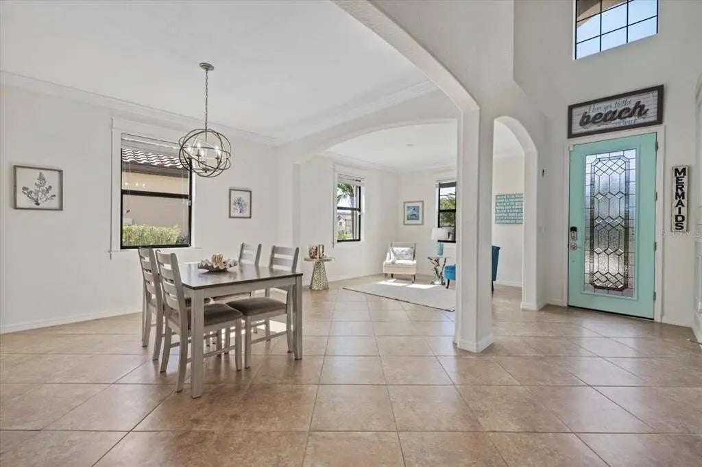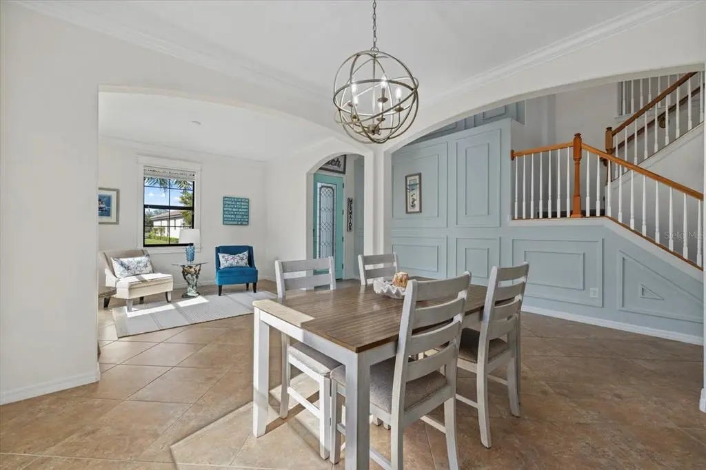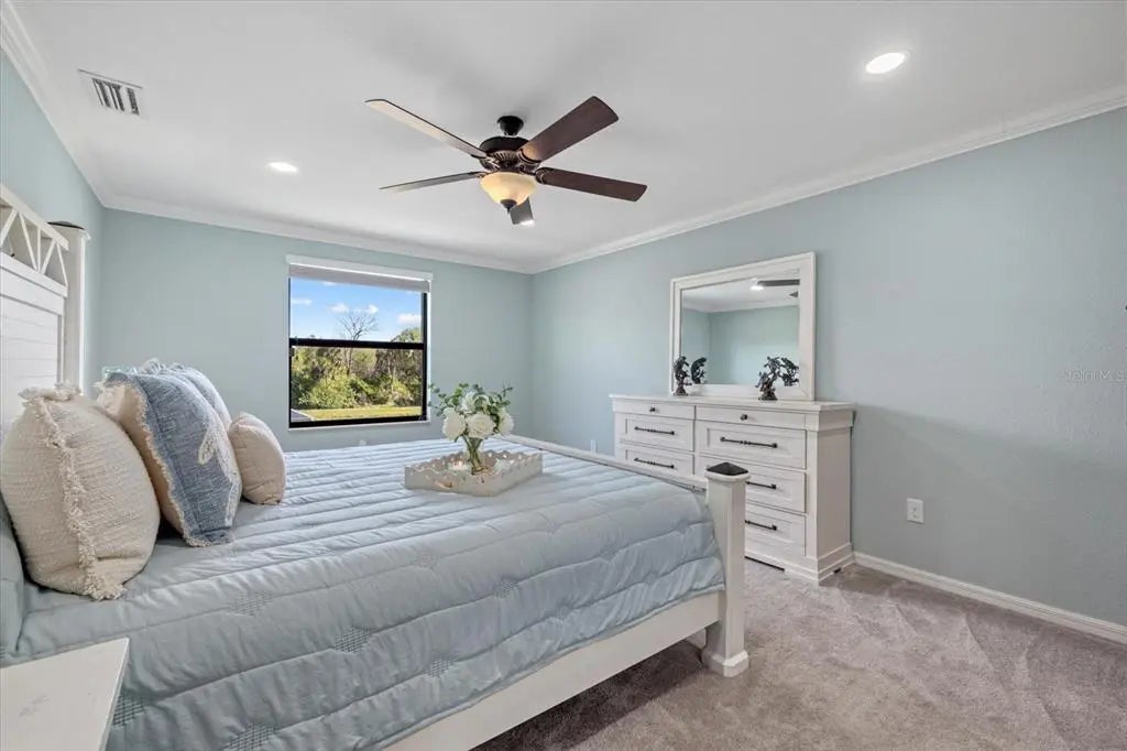 - Interior FeaturesCeiling Fan(s), Crown Molding, Eating Space In Kitchen, High Ceilings, Kitchen/Family Room Combo, Living Room/Dining Room Combo, Open Floorplan, PrimaryBedroom Upstairs, Split Bedroom, Stone Counters, Tray Ceiling(s), Walk-In Closet(s), Window Treatments