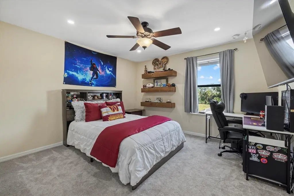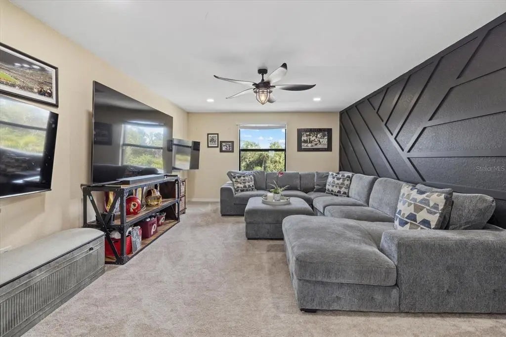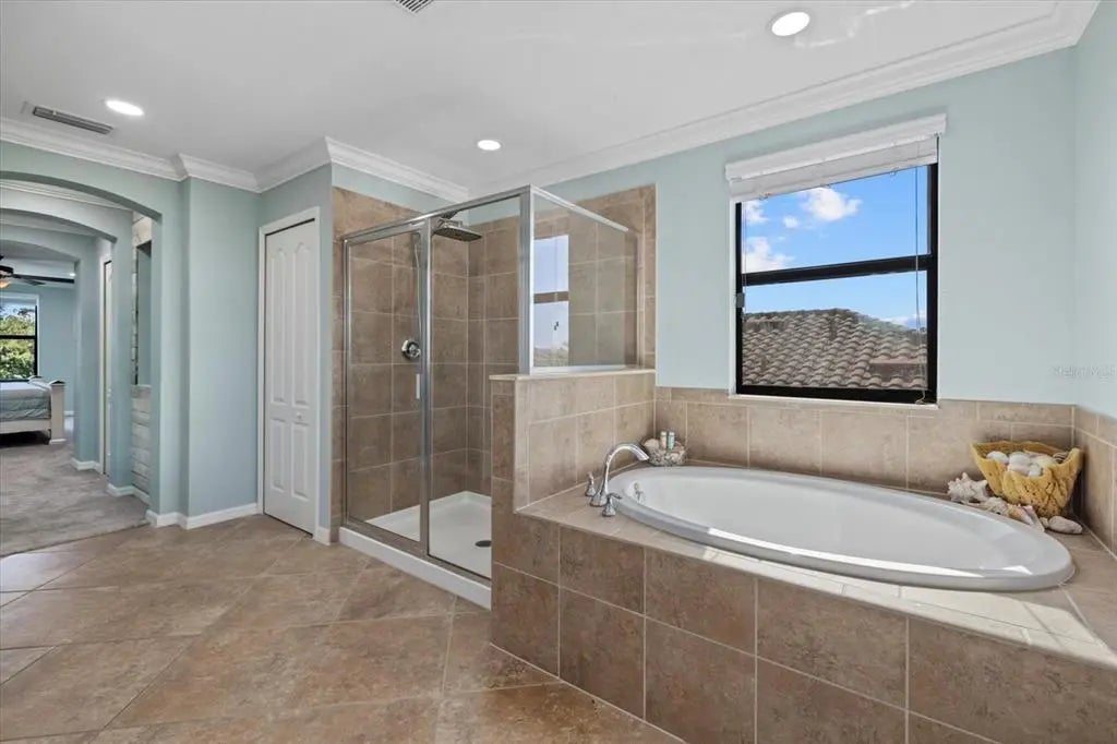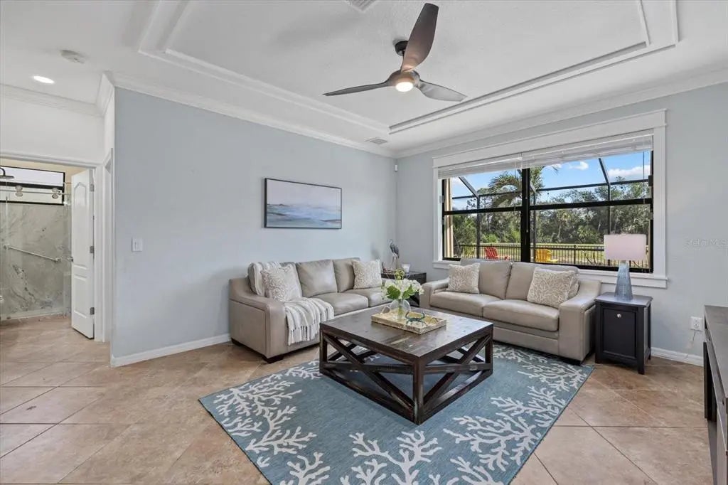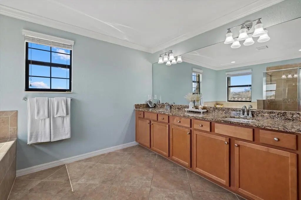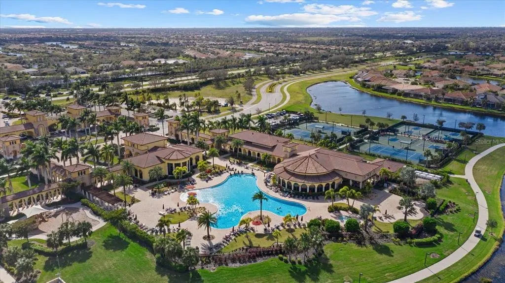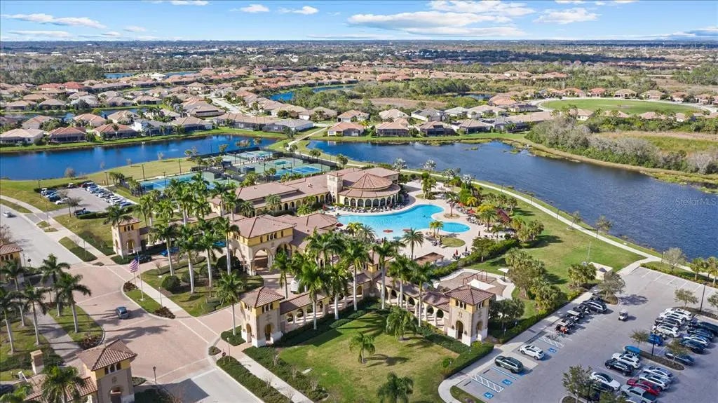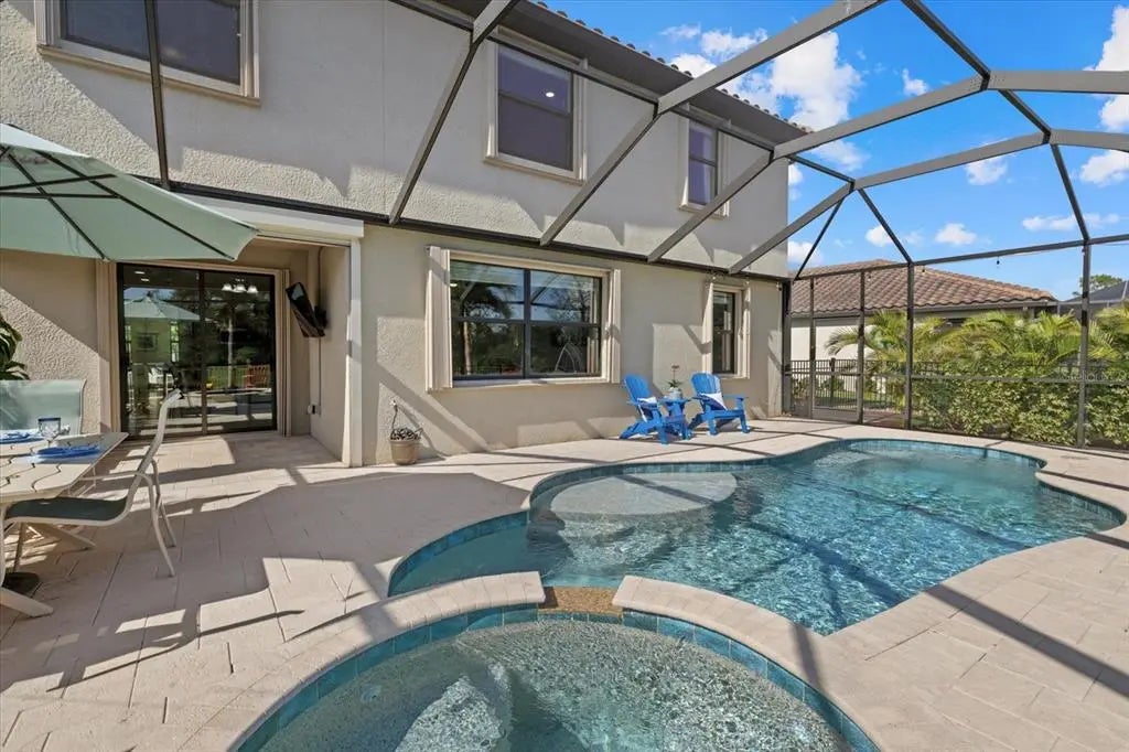 Under contract-accepting backup offers. Under contract-Accepting backup offers. Welcome to this exquisite designer home that seamlessly blends custom craftsmanship with personal style. This stunning residence features a bright and inviting kitchen, highlighted by a magnificent 84” x 80” Quartzite island that comfortably seats eight. The layout includes two spacious living rooms, as well as separate dining and living areas, making it perfect for both entertaining and everyday living. With five well-appointed bedrooms and three full bathrooms, this home offers ample space for relaxation and privacy. The main level boasts a luxurious custom shower that complements the downstairs bedroom. Step outside to your custom travertine patio, where you can unwind by the designer heated saltwater pool, complete with a serene waterfall, a heated spa, and a generous tanning ledge. Additional features include a tandem three-car garage with an expanded paver driveway, leading to a private paver sidewalk that enhances access to the backyard. The home is equipped with accordion hurricane shutters on all windows and doors for added security, as well as a power/electric remote control rolling lanai hurricane enclosure on the back lanai for convenience. Newly installed recessed lighting throughout the second level adds a modern touch. Nestled in a picturesque setting within Gran Paradiso, this immaculately maintained home offers breathtaking lake views and a serene non-buildable preserve. It is truly move-in ready. Gran Paradiso fosters a vibrant, family-friendly atmosphere, complete with a full-time Activities Director who curates a diverse array of events. From luaus and corn hole tournaments to holiday celebrations and themed parties, there’s something for everyone to enjoy. Residents can take advantage of a resort-style pool, fitness center, basketball courts, playground, walking trails, billiard/poker game room, library, and clubhouse featuring a spa, sauna, steam room, tennis courts, and pickleball. Conveniently located in the Wellen Park area, this community is close to beautiful beaches, restaurants, shopping, and the Atlanta Braves Cool Today Stadium. Gran Paradiso offers a unique blend of natural beauty and active-living amenities that cater to all lifestyles. Come and experience the exceptional lifestyle this remarkable home and community have to offer!