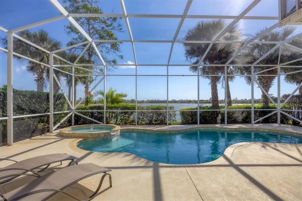 SPECTACULAR LAKE VIEW! Located on one of the largest lakes in Sarasota National. This is the view they used to sell this community!! SOUTHWEST Exposure for dramatic SUNSET VIEWS! What a great way to spend the end of the day! Cool of in your own PRIVATE POOL, SOAK IN THE HOT TUB, OR Happy Hour and Grill at your OUTDOOR KITCHEN to ENJOY THE SUNSET! This home is great for entertaining guests. Everything you need is on the first floor. Open living room with high ceilings, spacious kitchen and breakfast nook, separate den/office, master bedroom with en suite bath, formal dining ,laundry room, and garage entry, all on the FIRST FLOOR. Send your guests upstairs to the 2 very spacious guest rooms and guest bath. Extra bonus room upstairs could be used for multiple purposes- currently used as an office. Home was Custom Designed and TURNKEY FURNISHINGS ARE NEGOTIABLE. All you have to do is bring your personal items and move right in. SEE IT TODAY! CALL FOR YOUR PRIVATE APPOINTMENT. Not in Florida? Enjoy viewing the home through the 3D Walk through at: https://my.matterport.com/show/?m=7jpCwFHEB3A Sarasota National is a PREMIER community w/over 1300 acres designated for preservation, conservation, lakes, & open space w/ amazing views, Proclaimed as an Audubon International Certified Sanctuary, making it the most gorgeous & enjoyable golf course to play at in the area. Offering resort style amenities w/huge resort style pool & spa,Tiki Bar to serve refreshing drinks and a bite of lunch, tennis courts, pickle ball, Bocce courts, coffee lounge/library/card room/meeting place, 7000 sq ft fitness facilities offering classes & day spa, and a 30,000 sq ft Clubhouse w/dining and spectacular views. 18 Hole championship golf course surrounded by native wetlands and preserves provides an exhilarating & dramatic back drop for your golfing adventure. Minutes away from the new Wellen Park shopping area and Atlanta Braves stadium. Venice Beach & Venice Downtown are just a short drive. Your choice of restaurants & outdoor activities await. Come find YOUR Florida lifestyle TODAY and Live everyday like you are on vacation! MAKE YOUR APPOINTMENT TODAY!