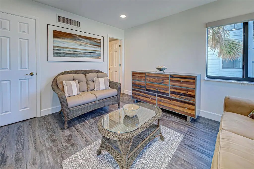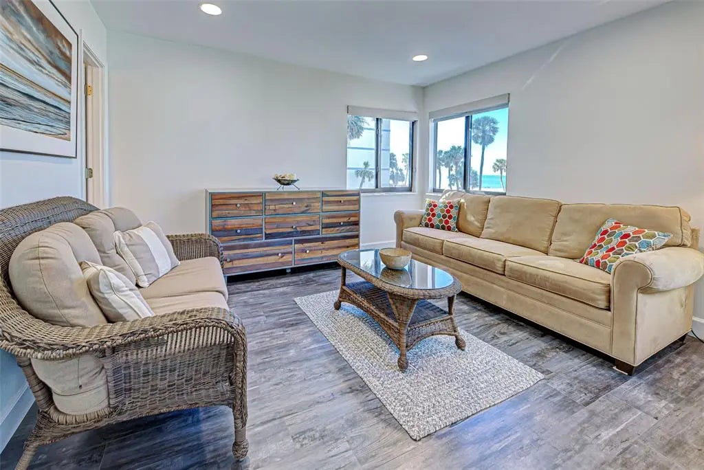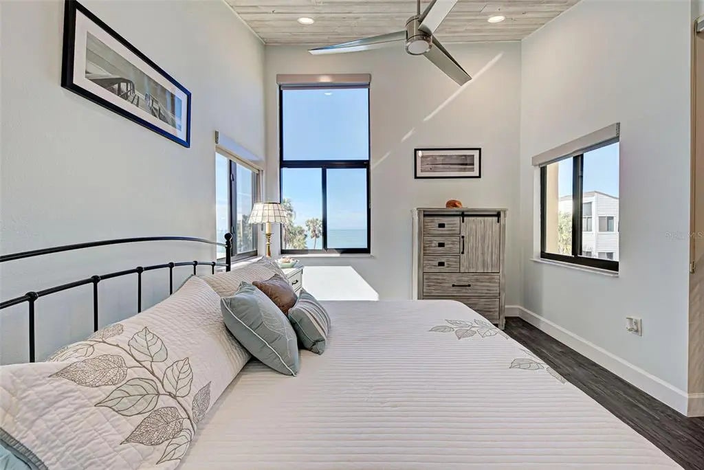 Under contract-accepting backup offers. BEAUTIFUL BEACHFRONT CONDO ON THE ISLAND OF VENICE. TURNKEY FURNISHED! The gated community of MacArthur Beach & Racquet Club is highly coveted for their private beach location and access, the recreational amenities and beautiful panoramic views of Venice Beach.The Allure of Coastal Living. Imagine waking up each morning to the gentle sound of waves lapping against the shore, the warm Florida sun pouring through Gulf side windows & sliders, and the salty breeze filling your lanai while enjoying your morning coffee. This stunning beachfront condo is not just a residence; it’s a lifestyle. Nestled along the pristine shores of Florida's coastline, this three-bedroom, two and a half-bathroom unit offers amazing exclusive beach access to the unparalleled views of the turquoise waters and soft, sandy beaches. The open concept living space seamlessly blends indoor and outdoor space, perfect for entertaining or simply enjoying a quiet evening watching the sunset from your private balcony. The total renovation in 2023 resulted in a beautiful modern coastal design that greets you when you walk in the front door. It included LVT flooring throughout, custom kitchen cabinets, all new kitchen appliances, bathroom renovations, custom shades throughout, unique ceilings and architectural stairway treatment. New A/C Condenser in 2024 w/ transferable warranty. New roof in 2023. Hot water tank 2021. Open dining and living room area with a high cathedral ceiling and a gorgeous open staircase to the second story. This condo’s primary bedroom is spacious and is on the first floor. Great storage of walk in and built in closets, has an en suite bathroom with a custom designed vanity, a lighted, heated mirror. The 2nd bedroom could easily make a home office or perfect for visiting guests. Large closet in this room has space for bicycle storage. Upstairs, a 3rd Bedroom has a bird’s eye view of the beach & it’s own bathroom. Additional walk-in storage off the second-floor bathroom. Washer & Dryer in the unit. New motorized lanai awning will be installed this Spring. Residents will enjoy exclusive use of outdoor amenities, elevated tennis courts, shuffleboard and a heated pool, and direct beach access, all while being just minutes away from vibrant local dining and shopping options. Venice Little Theater, a new Library, Venice Performing Arts await your enjoyment, not to mention just a few minutes' drive up north to the cultural Sarasota with Ringling Art Museum, Shelby Botanical Gardens and Mote Marine Aquarium. Outdoor sports, fishing, paddle boarding, kayaking, bike riding on the Legacy Trail, Atlanta Braves Spring Baseball Complex at Wellen Park. Great access to I-75 and three major airports. There is something for everyone. Whether you seek a permanent residence, a vacation getaway, or a lucrative investment opportunity, this condo embodies the essence of Florida living, promising a life filled with sun, sand, and serenity. Don’t miss your chance to own a piece of paradise!