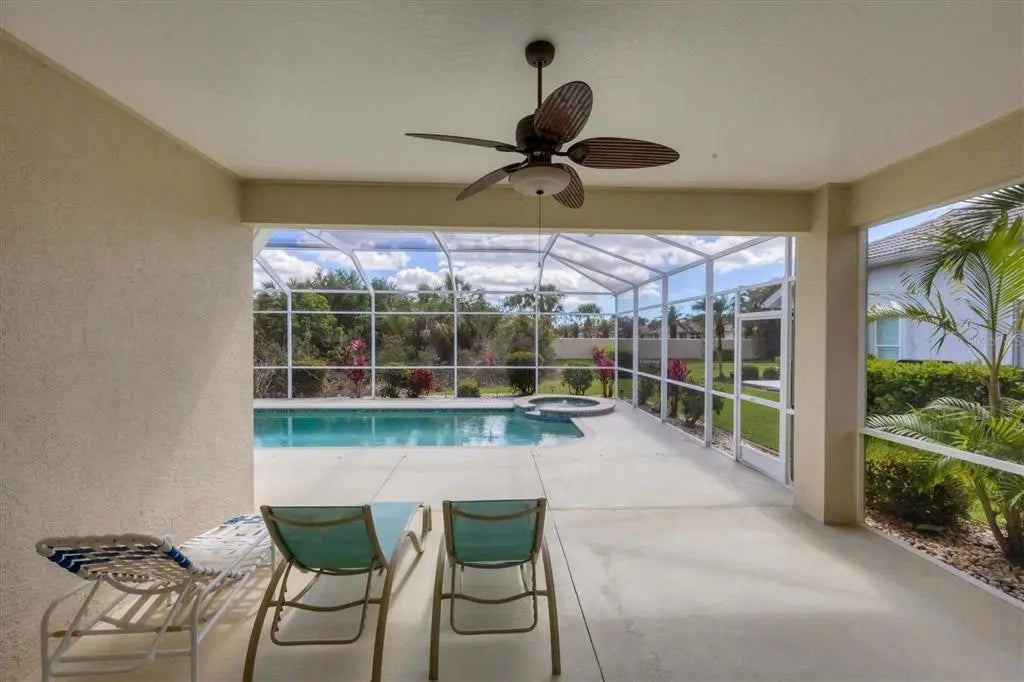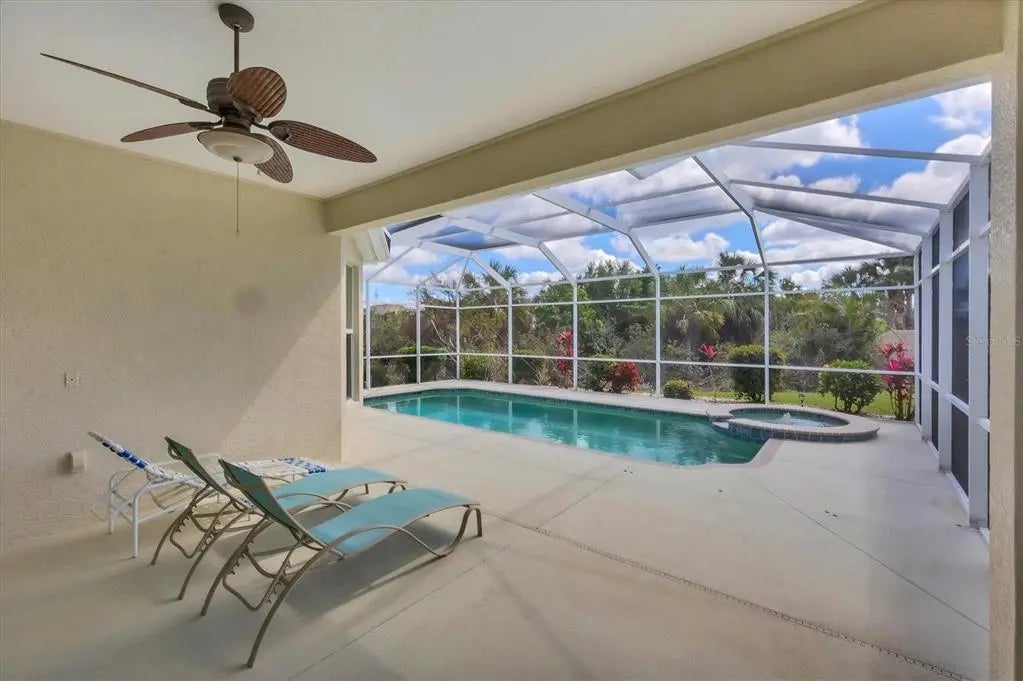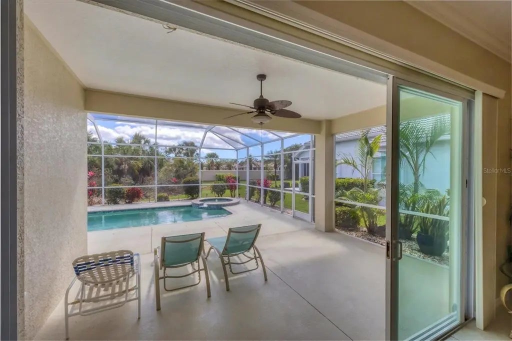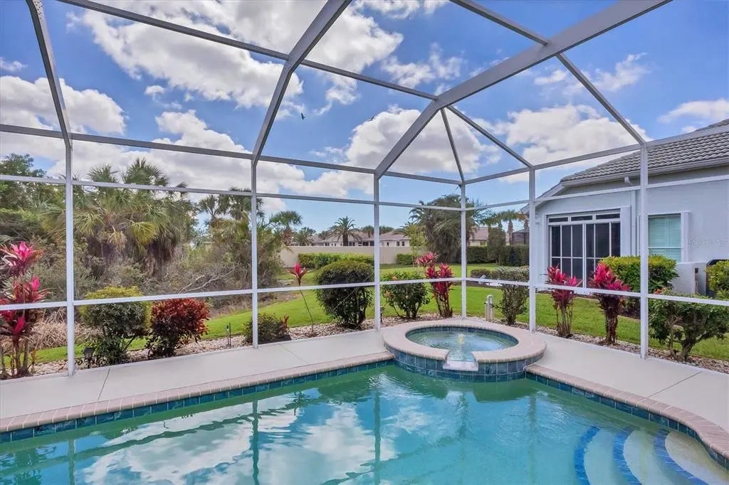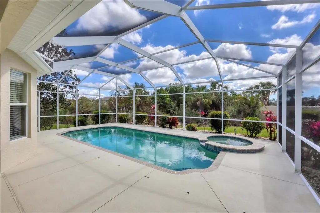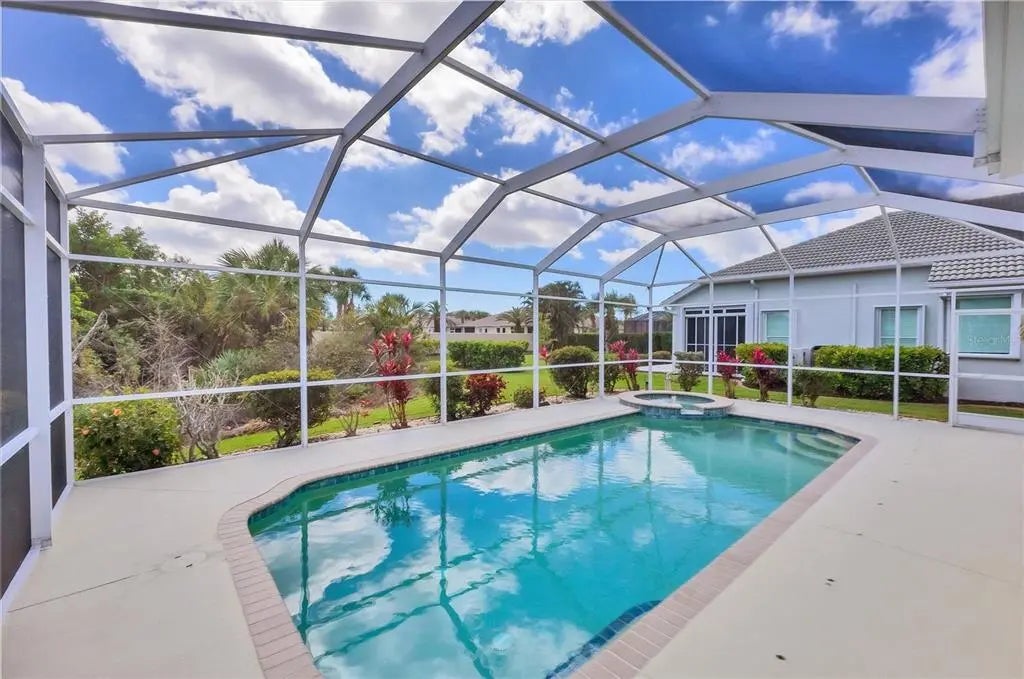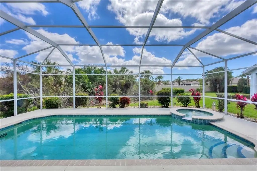 MOTIVATED SELLER! HUGE PRICE DROP! SEE IT NOW!! Popular Belize floor plan offering 3BD/2BA or 2BD/Den depending on your needs. This J&J home is filled with extra niches and tray ceilings in the already high ceilings. Crown molding accents through main areas. Leaded glass front door with transom window above also lets in lots of light. Bask in the sunshine from your own PRIVATE pool and a SOUTHERN EXPOSURE. Jump in the hot tub, relax, and watch the sunset. Lots of lanai space for entertaining, open the sliders and let the breezes flow through. Tile flooring throughout the home. Neutrally decorated for you to bring your own style. Kitchen lets in lots of light through aquarium window. New Stainless Steel refrigerator. Tile backsplash and Corian counters. Very spacious master bedroom with en suite bath offering dual sinks, walk in shower, garden tub, linen closet, and glass block window for tons of natural light. Large Walk in closet is en suite but separate from bathroom. Guest bedrooms at other end of house for privacy. Laundry has cabinets, wash sink, and newer washer/dryer. TURNKEY FURNISHINGS ARE NEGOTIABLE. Call for your appointment now. Not in Florida? Check out the 3D WALK THROUGH AT : https://my.matterport.com/show/?m=YEpEiGvC43t Sawgrass is a fabulous community located in the center of Venice. Minutes to the Beach and Downtown Venice, shops, restaurants, theatres, highways, and so much more. A great place to meet your new friends by getting involved in community activities or visiting the neighborhood amenities- Clubhouse with gathering/card room, fitness center, kitchenette for special occasions. resort style pool and lounging areas, tennis court. Surrounded by the Sawgrass portion of the Waterford Golf course. The benefits of living surrounded by golf course without the supportive fees. Memberships and playing time are available at Waterford Golf Club and its reciprocals.