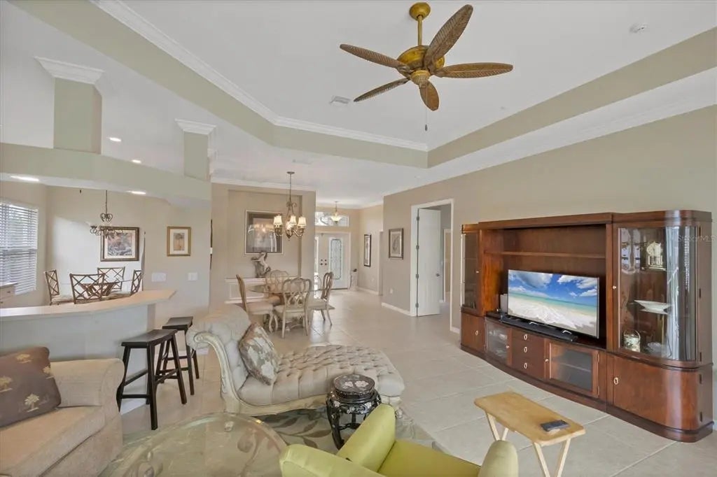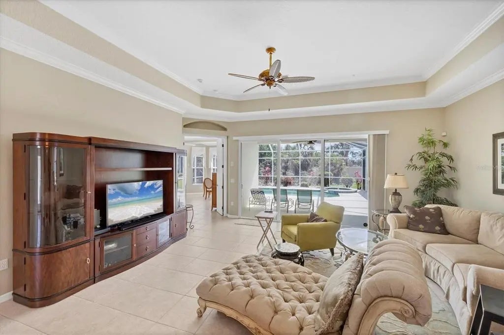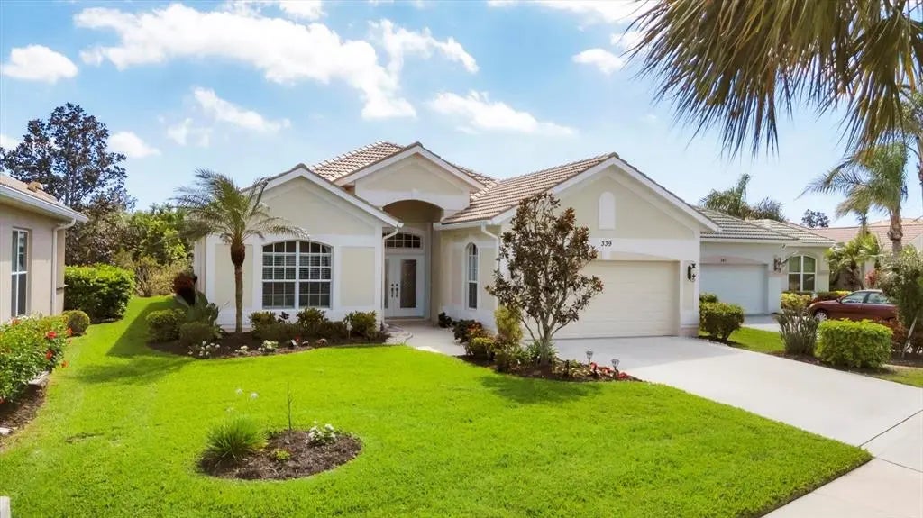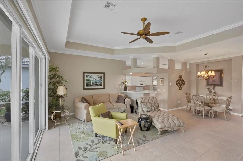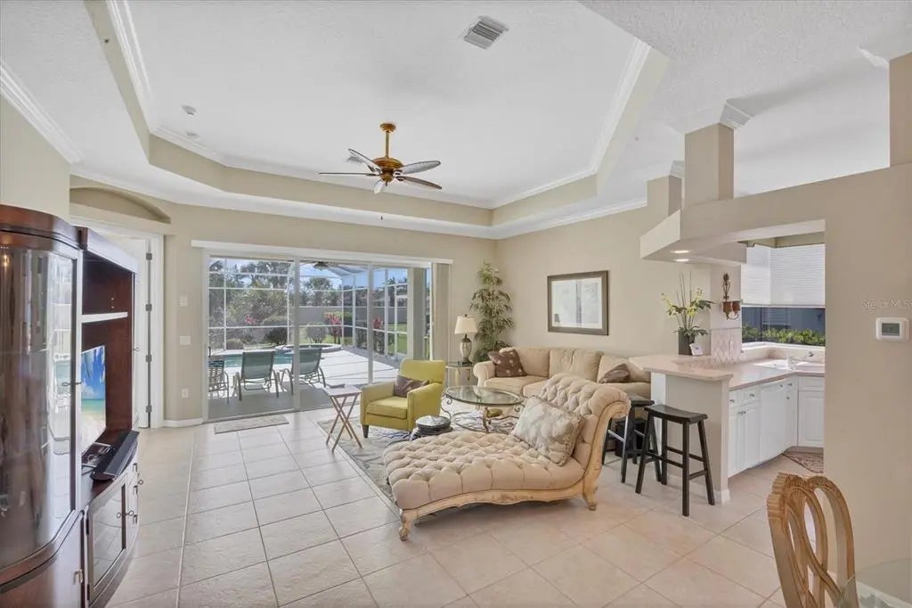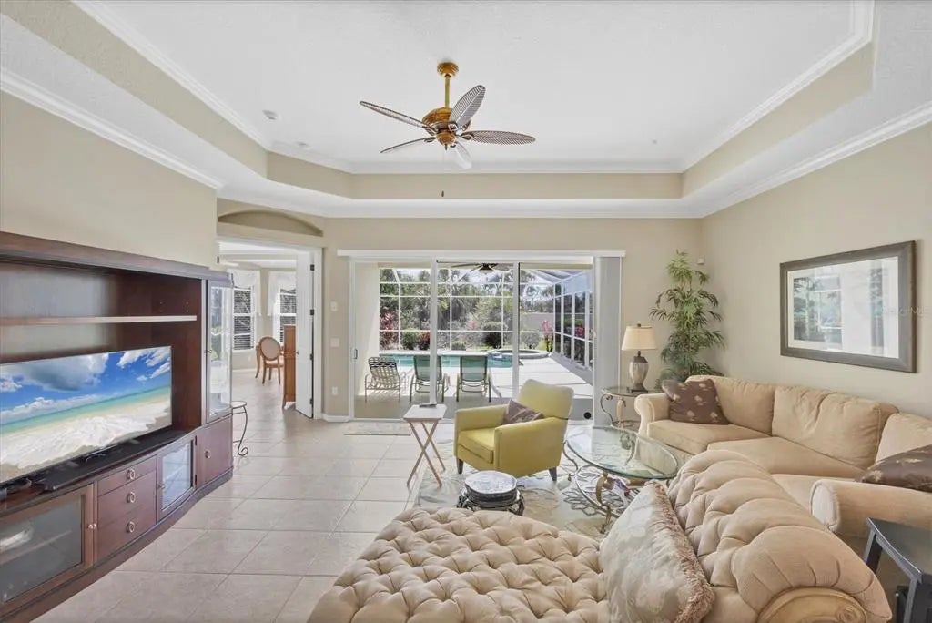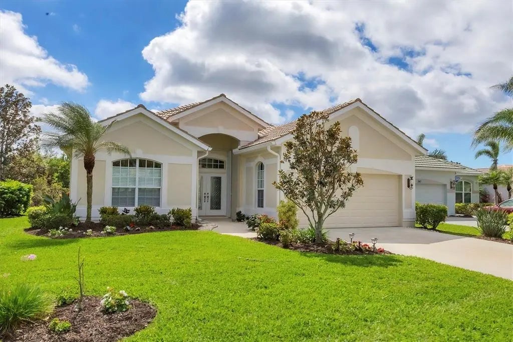 MOTIVATED SELLER! HUGE PRICE DROP! SEE IT NOW!! Popular Belize floor plan offering 3BD/2BA or 2BD/Den depending on your needs. This J&J home is filled with extra niches and tray ceilings in the already high ceilings. Crown molding accents through main areas. Leaded glass front door with transom window above also lets in lots of light. Bask in the sunshine from your own PRIVATE pool and a SOUTHERN EXPOSURE. Jump in the hot tub, relax, and watch the sunset. Lots of lanai space for entertaining, open the sliders and let the breezes flow through. Tile flooring throughout the home. Neutrally decorated for you to bring your own style. Kitchen lets in lots of light through aquarium window. New Stainless Steel refrigerator. Tile backsplash and Corian counters. Very spacious master bedroom with en suite bath offering dual sinks, walk in shower, garden tub, linen closet, and glass block window for tons of natural light. Large Walk in closet is en suite but separate from bathroom. Guest bedrooms at other end of house for privacy. Laundry has cabinets, wash sink, and newer washer/dryer. TURNKEY FURNISHINGS ARE NEGOTIABLE. Call for your appointment now. Not in Florida? Check out the 3D WALK THROUGH AT : https://my.matterport.com/show/?m=YEpEiGvC43t Sawgrass is a fabulous community located in the center of Venice. Minutes to the Beach and Downtown Venice, shops, restaurants, theatres, highways, and so much more. A great place to meet your new friends by getting involved in community activities or visiting the neighborhood amenities- Clubhouse with gathering/card room, fitness center, kitchenette for special occasions. resort style pool and lounging areas, tennis court. Surrounded by the Sawgrass portion of the Waterford Golf course. The benefits of living surrounded by golf course without the supportive fees. Memberships and playing time are available at Waterford Golf Club and its reciprocals.